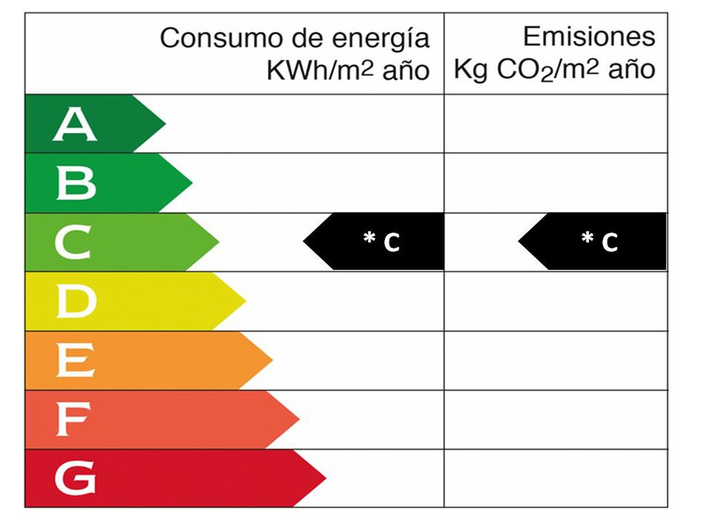 Any de construcció: 2018 • Escala de Emissions de CO2: C • Tipus de calefacció: Bomba de calor • Classe d'eficiència energètica: C