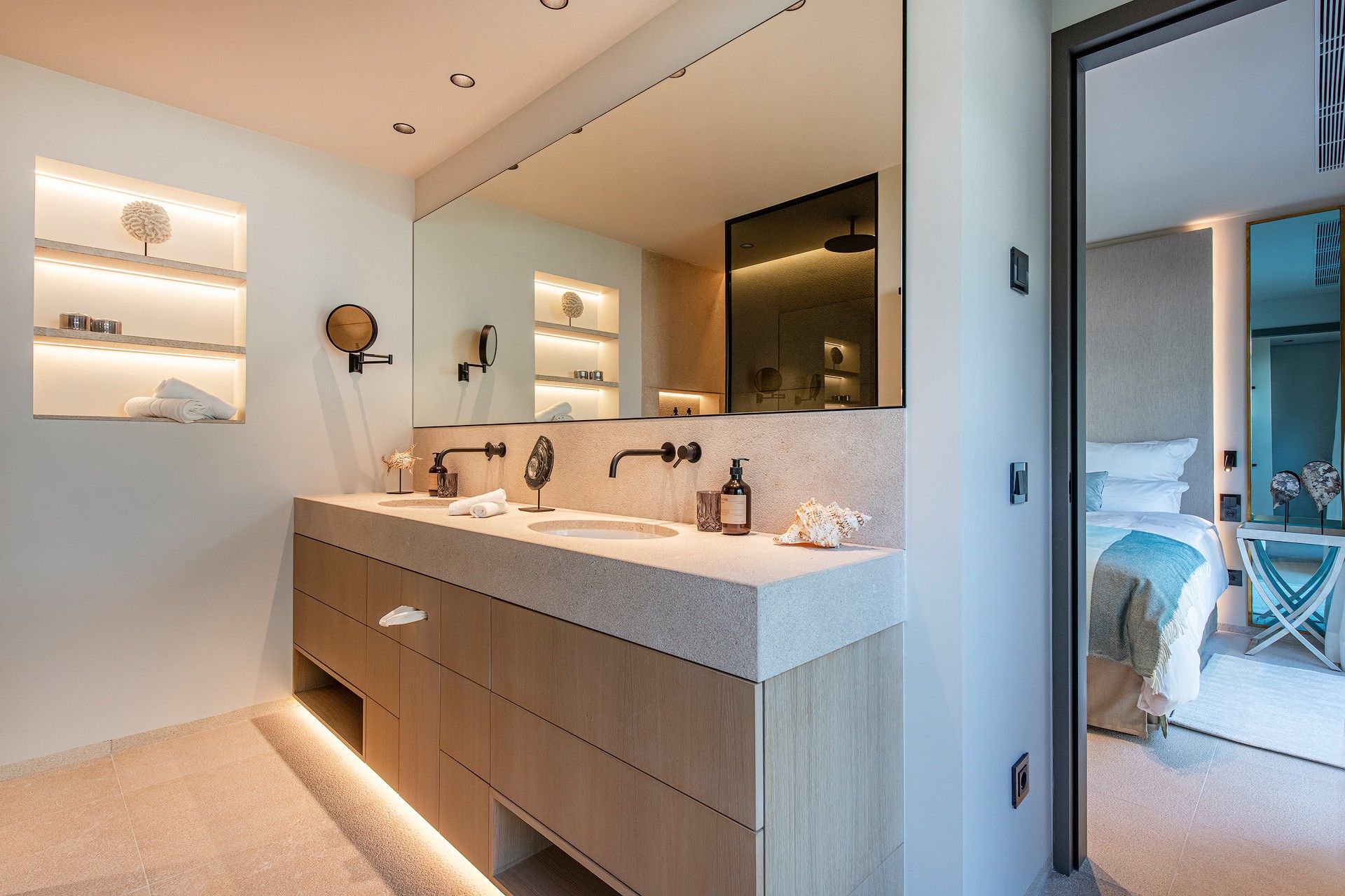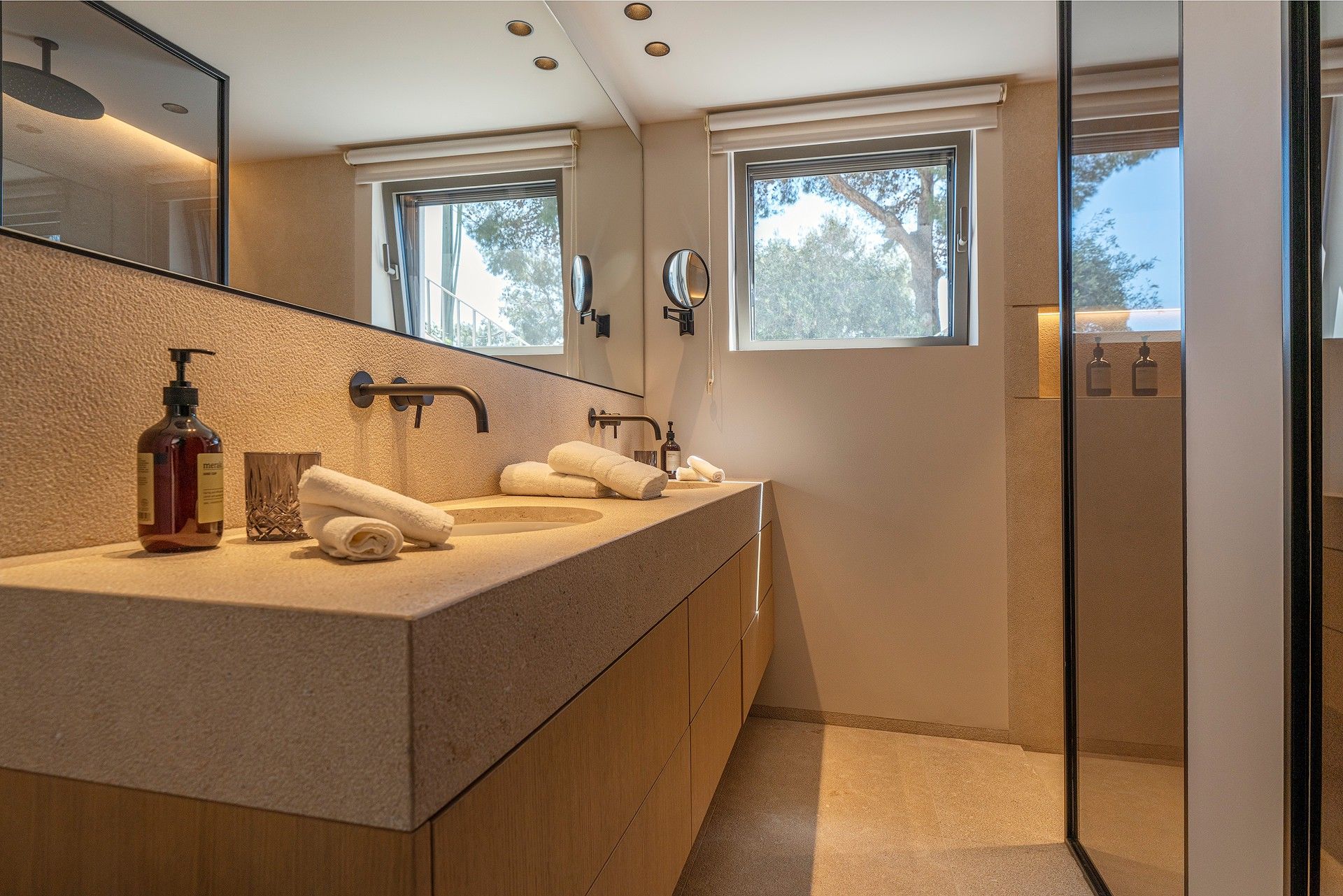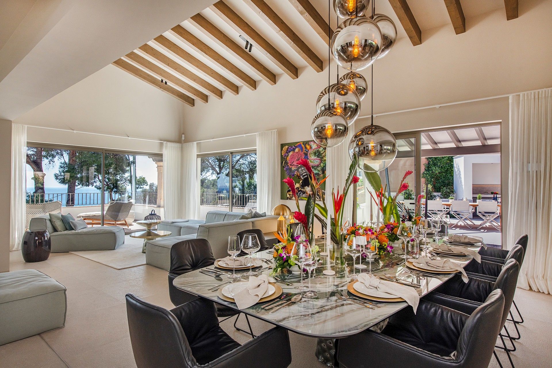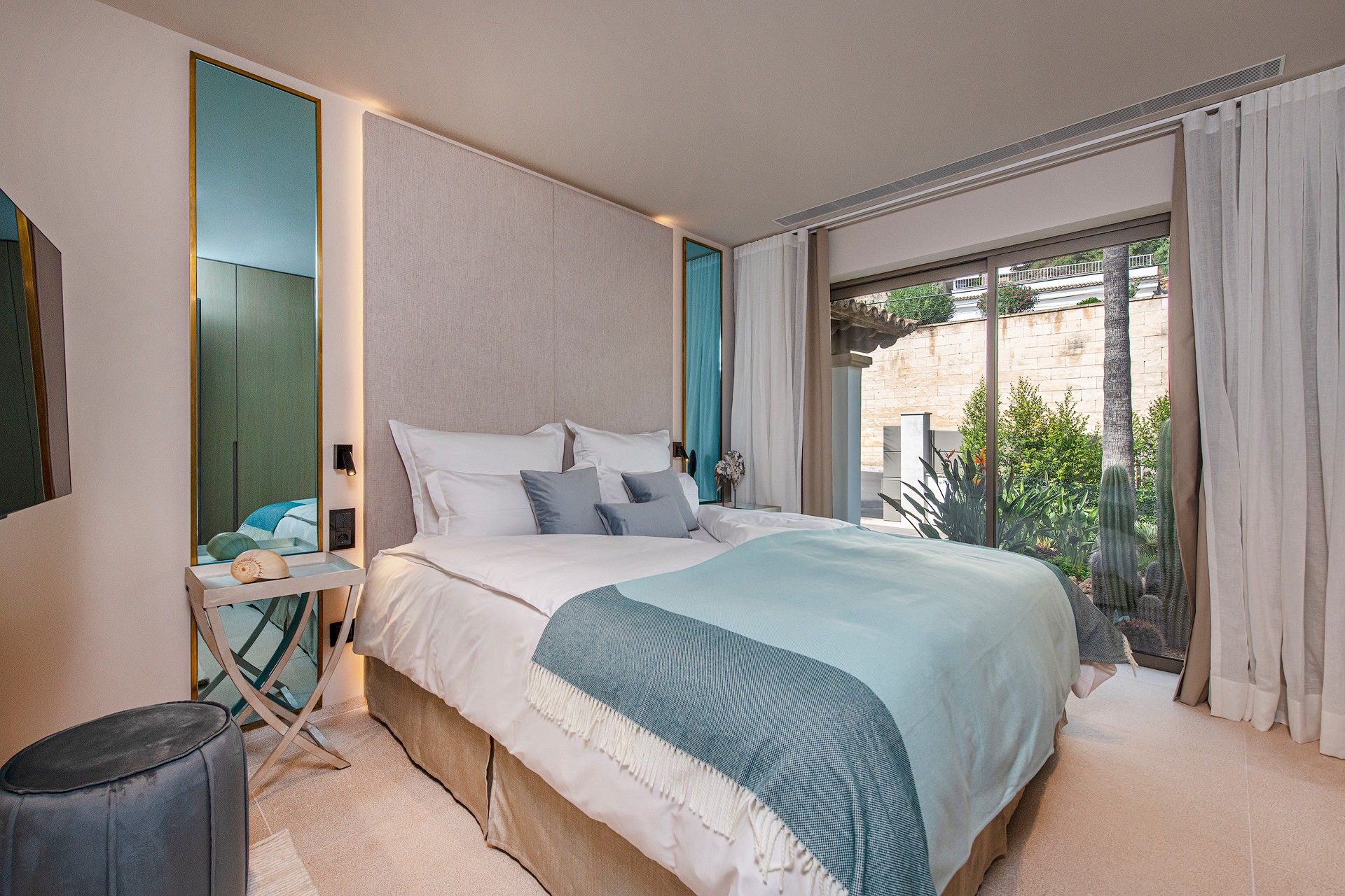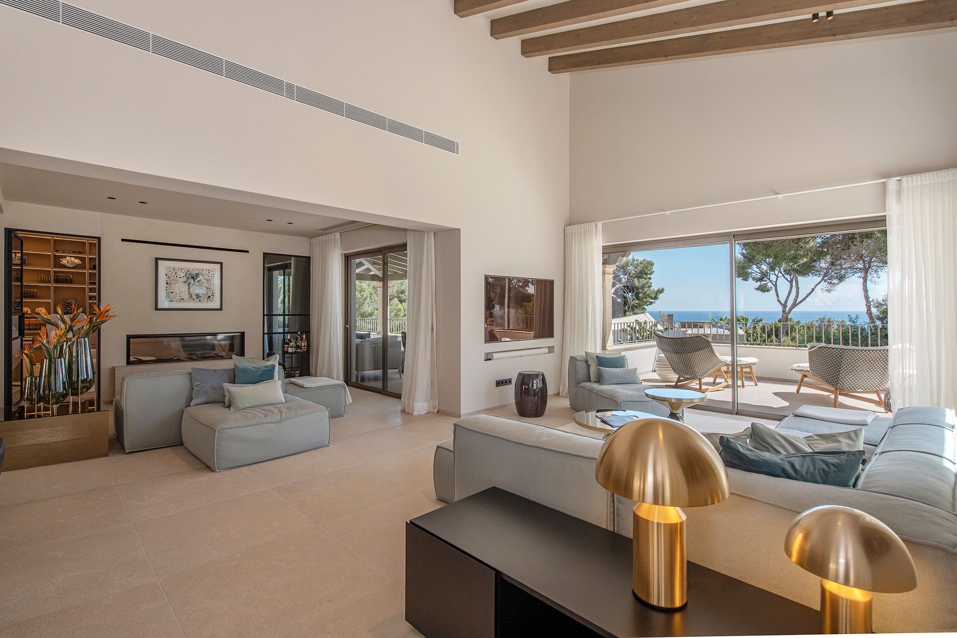 Gratis fra september 2025! Smuk villa i Costa d'en Blanes tilbyder en unik blanding af moderne luksus og middelhavscharme. Denne rummelige villa har en misundelsesværdig beliggenhed på Mallorcas sydvestkyst og er designet til at fordybe dig i øens naturlige skønhed, samtidig med at den giver alle bekvemmelighederne i et eksklusivt tilflugtssted. Med en fantastisk udsigt over havet, en stor opvarmet saltvandspool og en smukt anlagt have inviterer Villa Riviera dig til at slappe af og nyde det bedste ved at bo ved kysten. Villaen er på 280 m2 fordelt på to etager med 5 luksuriøse suiter og 4 badeværelser, som alle er fyldt med naturligt lys. Hver suite er en fredfyldt flugt, designet til ultimativ afslapning, komplet med 5-stjernede boxspring-senge, aircondition, gulvvarme og gratis Wi-Fi. Værelserne er omhyggeligt indrettet, så der er en betagende udsigt over Middelhavet, den frodige have eller den indbydende pool. Pool Suite 1 har især et fritstående badekar, så gæsterne kan nyde et roligt bad med udsigt over haven. Villaen er designet til både komfort og underholdning og har store terrasser, hvor man kan nyde solskinnet eller en kølig aftenbrise. De udendørs områder er ideelle til afslapning med en poolterrasse møbleret med liggestole og en øvre terrasse i fuld længde med loungemøbler. En udendørs sauna med udsigt over haven og poolen tilbyder et fredeligt fristed efter en lang dag i solen. Grillterrassen, der er udstyret med et stort bord og et udendørs køkken med en Napoleon-gasgrill, er perfekt til at spise i det fri og nyde Mallorcas smukke vejr. Bekvemmelighed og tilgængelighed er nøglen her. Villaen ligger kun 5 minutter fra strandene og marinaen, og du kan nemt udforske området ved hjælp af den medfølgende elektriske golfvogn, der er designet til komfort og effektivitet. For dem, der nyder at være aktive, tilbyder villaen gratis adgang til private tennisbaner og det eksklusive fitnesscenter "Singular" i Puerto Portals. Med sin perfekte kombination af luksuriøse opholdsrum, fredfyldte udendørsarealer og enestående beliggenhed tilbyder Villa Riviera en mindeværdig flugt, hvor den afslappede middelhavsstil møder moderne elegance. ETV 16047