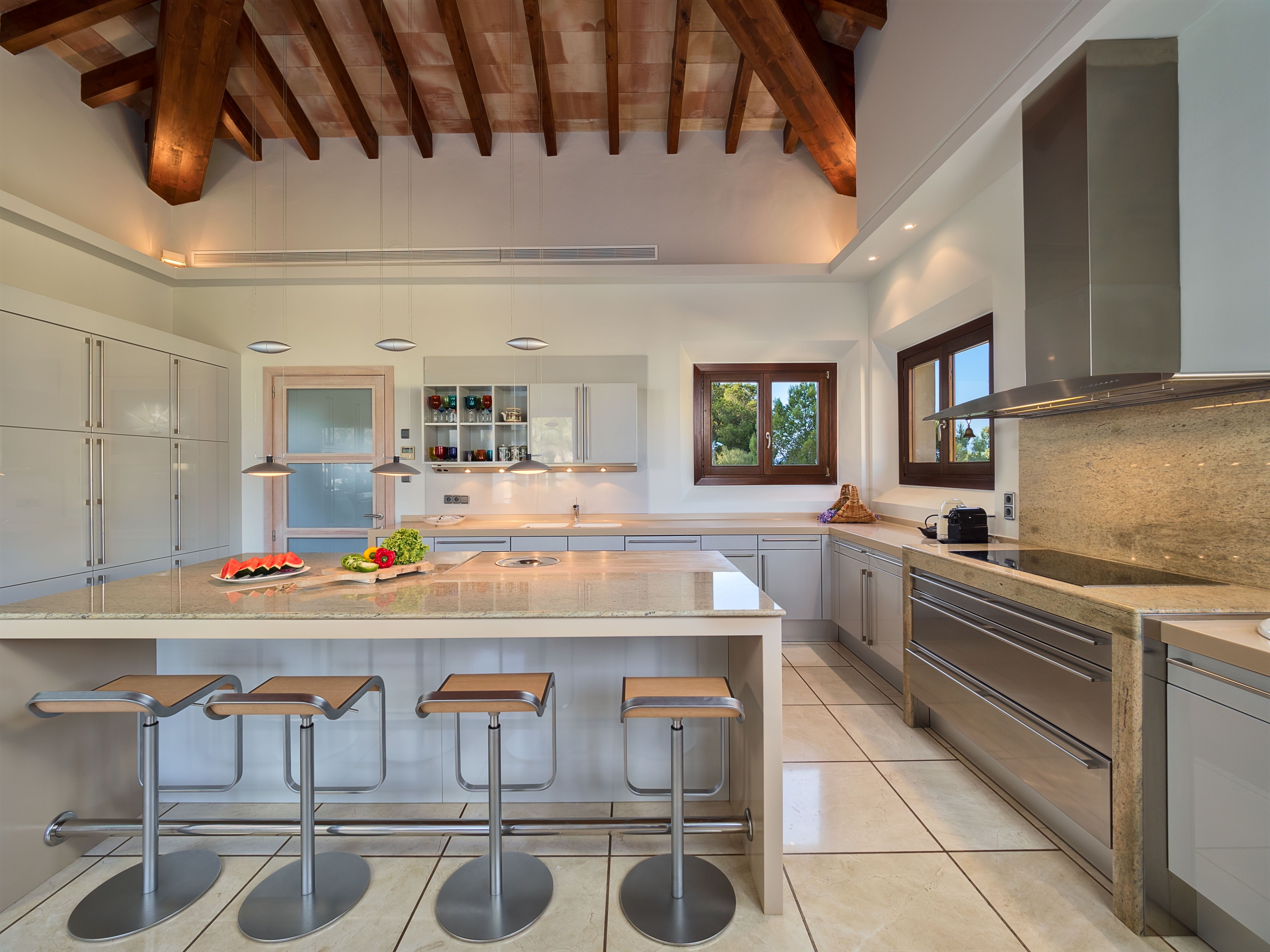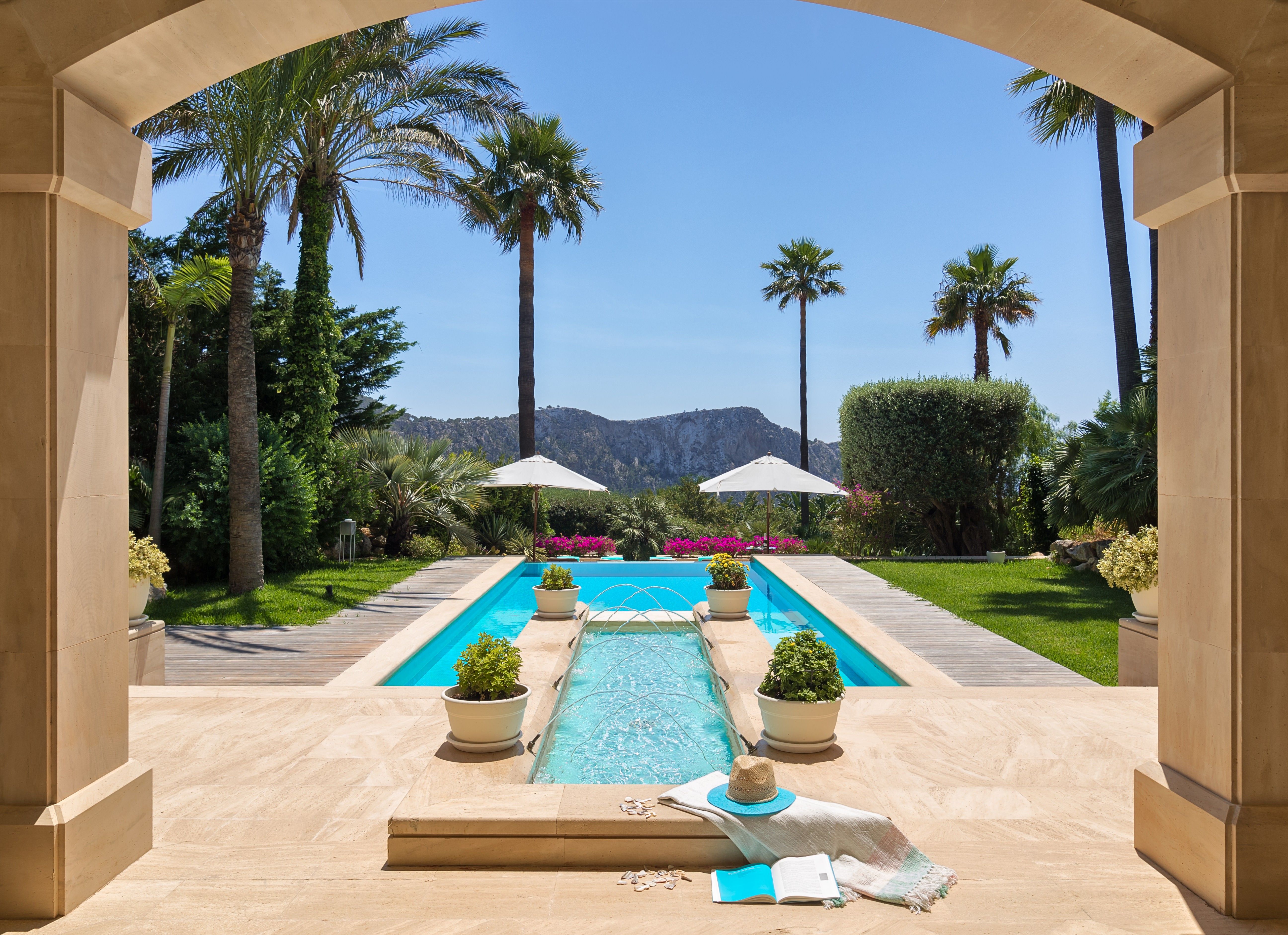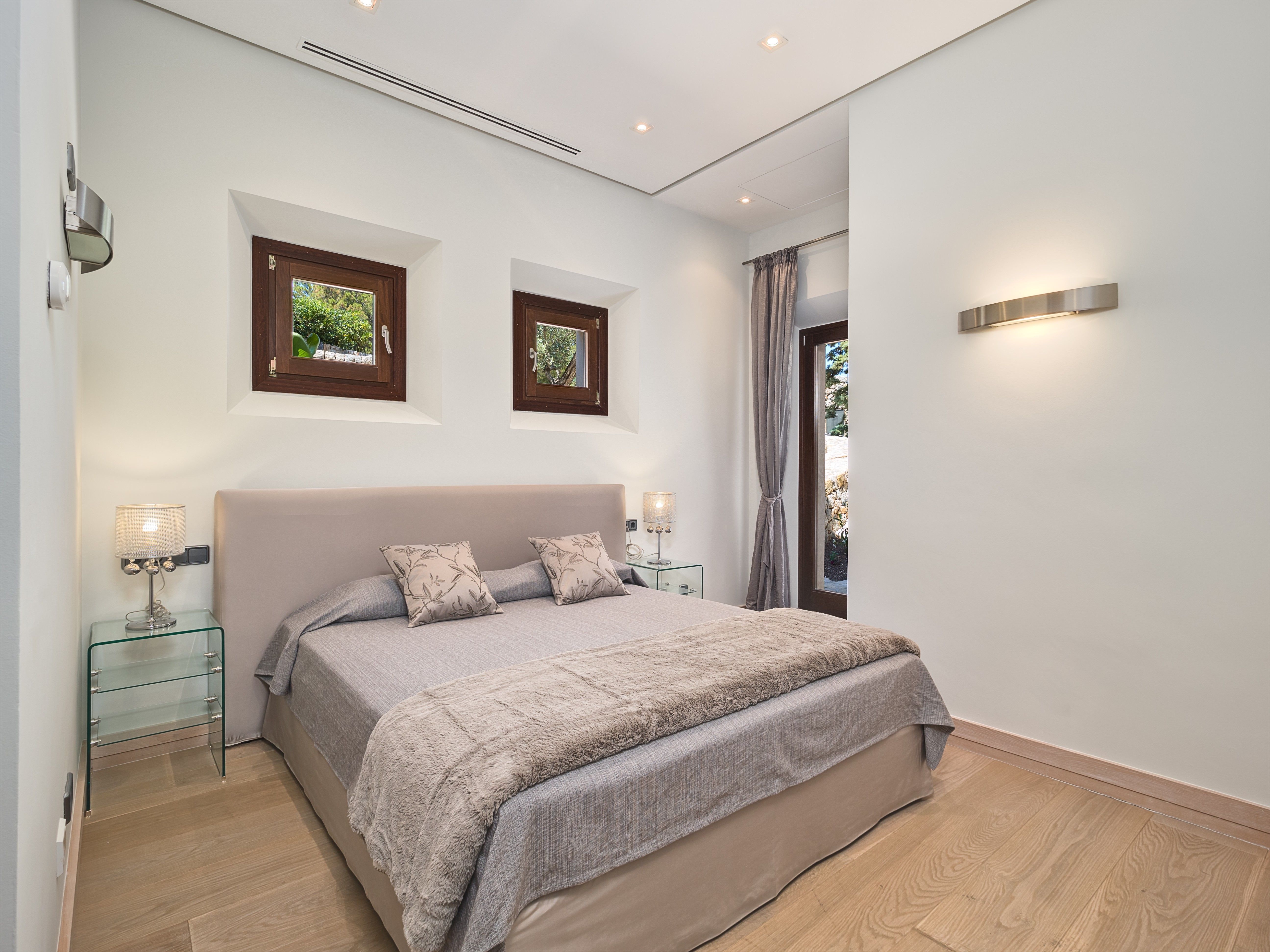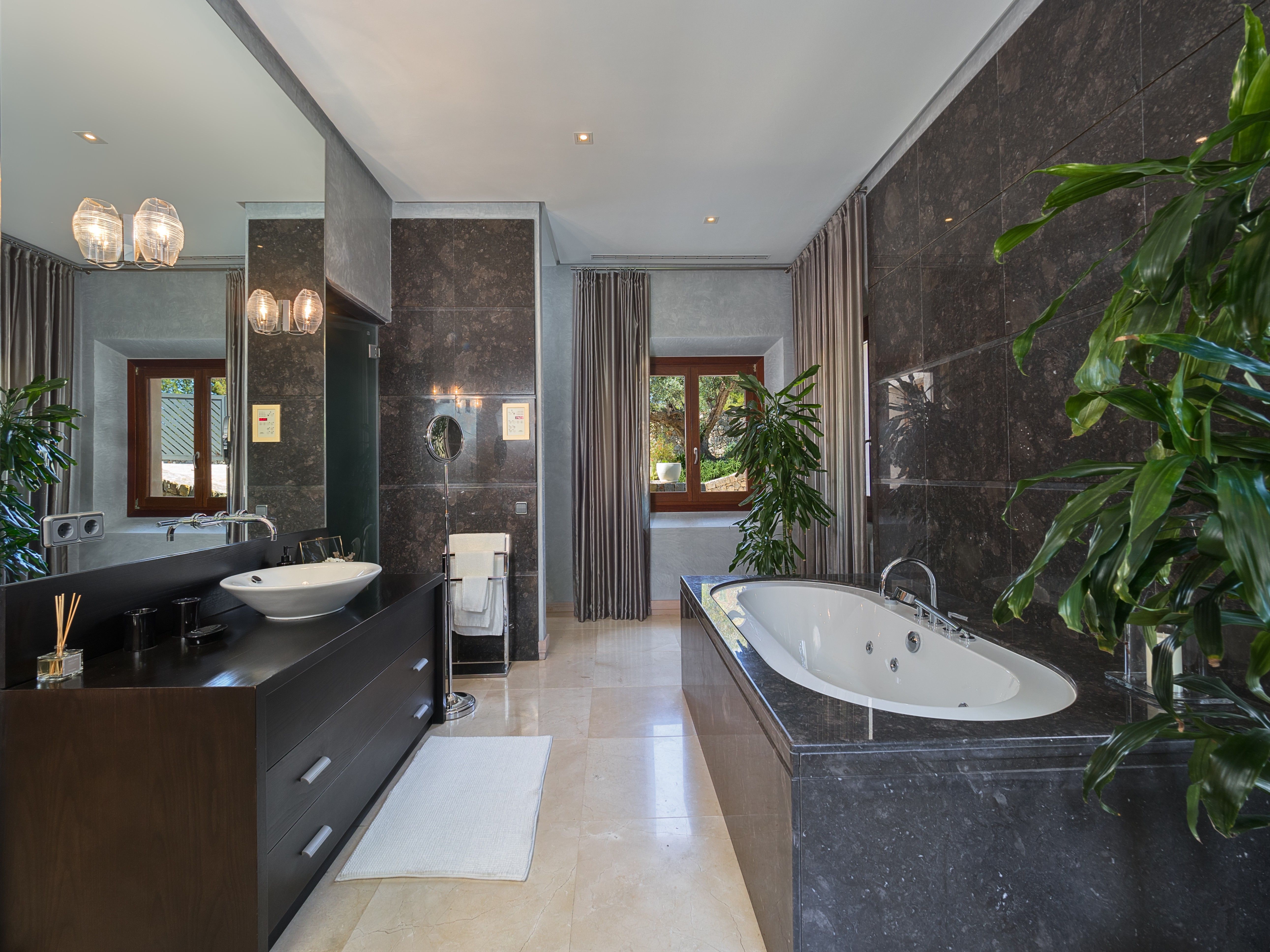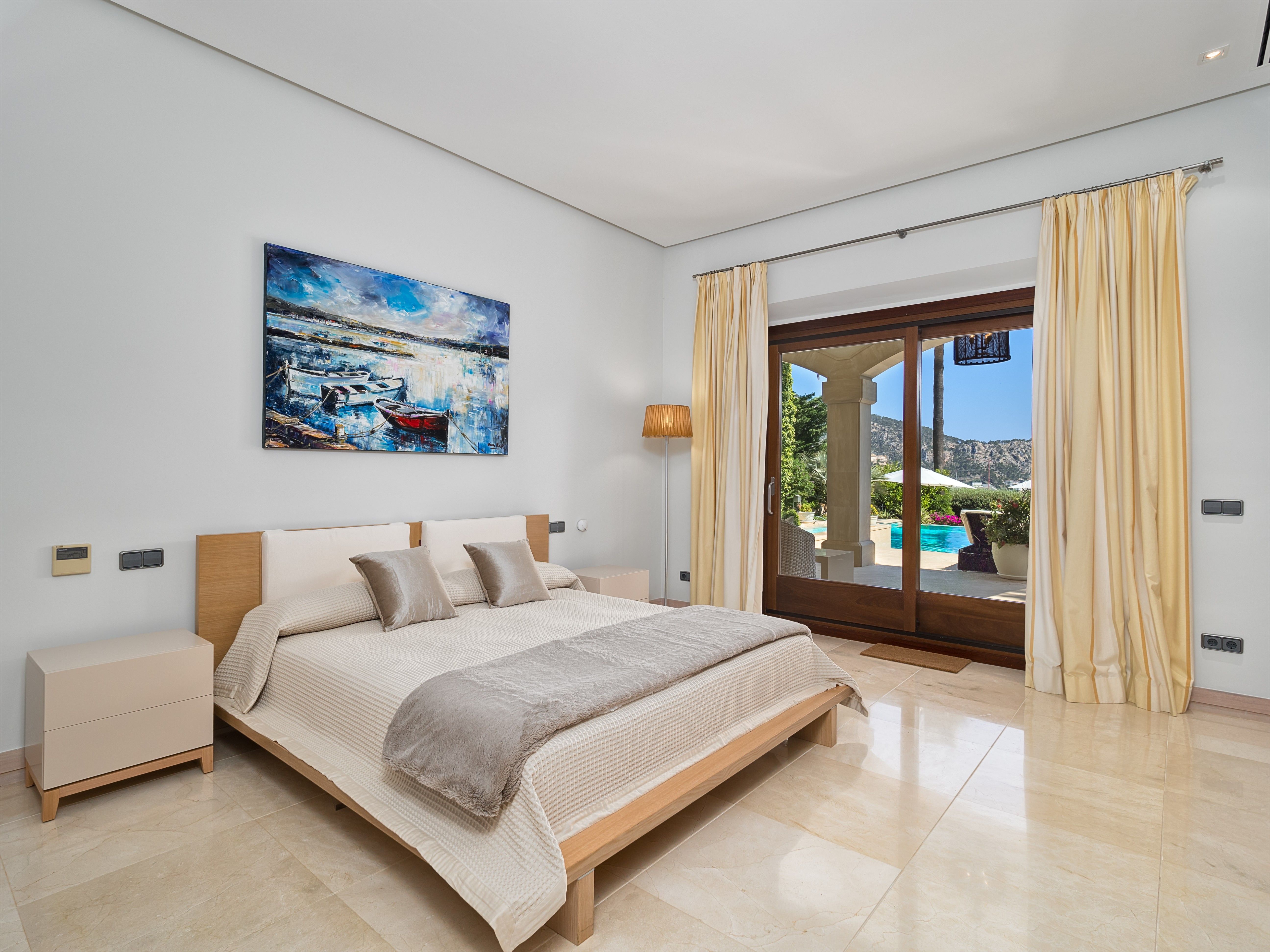 Villa Coral ligger højt over den fortryllende Cala Llamp og byder på en betagende udsigt over havet og bjergene på en af Mallorcas mest eftertragtede beliggenheder. Denne luksuriøse villa ligger i et roligt lukket boligområde nær den elegante havn i Puerto de Andratx og kombinerer fredfyldt privatliv med nærhed til den charmerende fiskerby og dens livlige marina, hvor luksusyachter og daglige aktiviteter eksisterer side om side. Nyd at spise ved vandet på havnens fine restauranter, eller slap af med udsigt til solnedgangen på din villas terrasse. Denne enestående ejendom kan prale af over 700 m² stilfuldt designet boligareal fordelt på to niveauer med elegant interiør prydet med møbler af høj kvalitet, smagfuld kunst og moderne bekvemmeligheder. Villaen har i alt fem rummelige soveværelser med dobbeltsenge, hver med eget badeværelse, med plads til op til 10 gæster. Et soveværelse med egen indgang ligger på poolniveau for at give ekstra privatliv. I stueetagen er der et stort åbent opholds- og spiseområde med hyggelige pejse og bløde siddepladser, som går over i en storslået overdækket terrasse med udsigt over middelhavshaven og det glitrende hav. Ved siden af dette rum ligger et topmoderne designerkøkken og spisekammer, fuldt udstyret til kulinariske lækkerier. Det nederste niveau giver adgang til tre af villaens soveværelser med dobbeltsenge, som alle har direkte adgang til den frodige have og det store poolområde. Højdepunktet i det udendørs rum er den rummelige poolterrasse med liggestole, stilfulde siddepladser og en imponerende pool med et roligt vandlandskab. Der er flere terrasser rundt omkring på ejendommen, som indbyder til afslapning og udendørs spisning med spektakulær udsigt over kysten. Uanset om man nyder middelhavsbrisen, villaens raffinerede atmosfære eller dens førsteklasses faciliteter, lover Villa Coral et uforglemmeligt ophold. Denne eksklusive feriebolig har licens til ferieudlejning (ETV/9028) og er den perfekte destination for en luksuriøs mallorcinsk ferie.