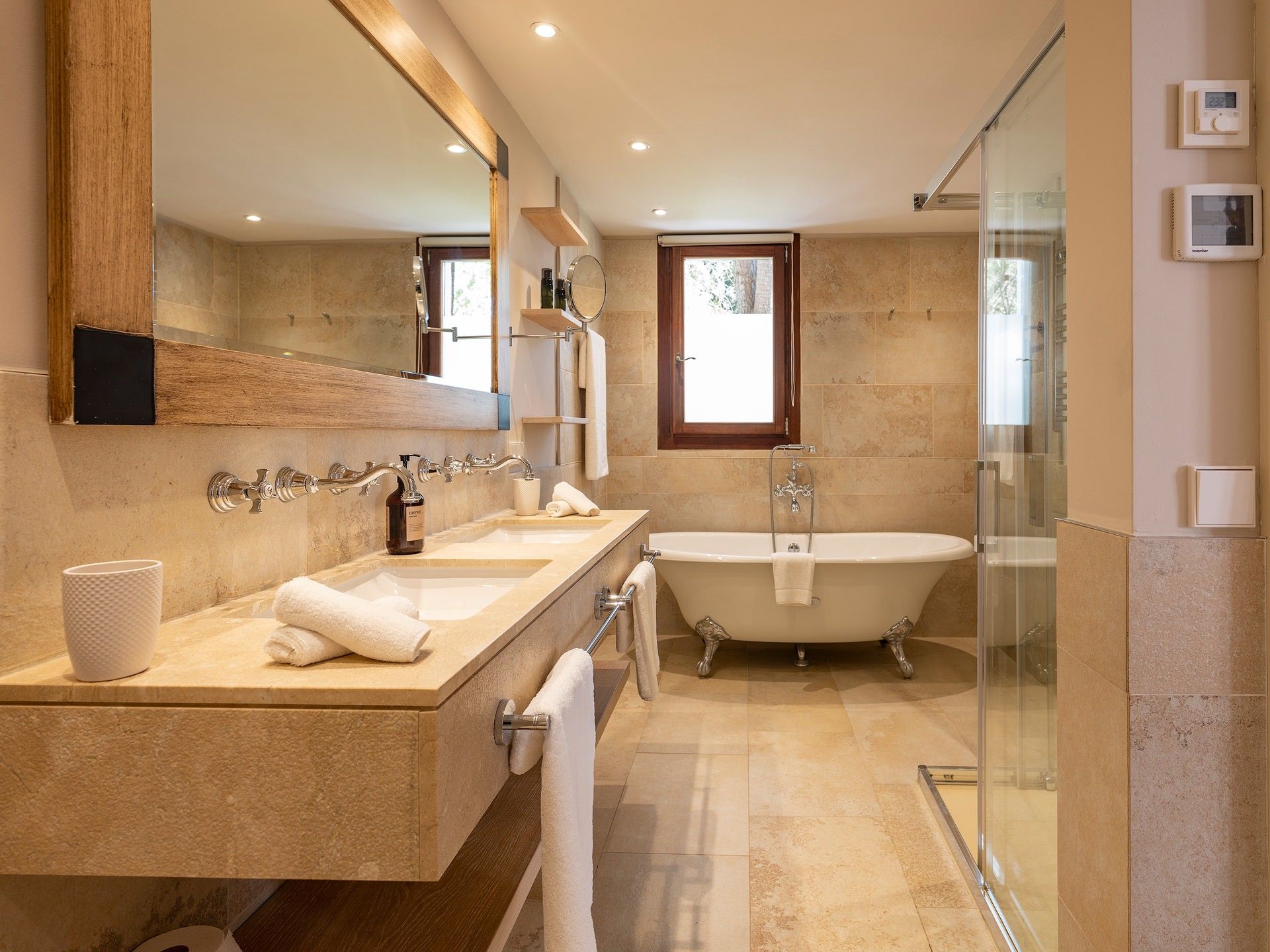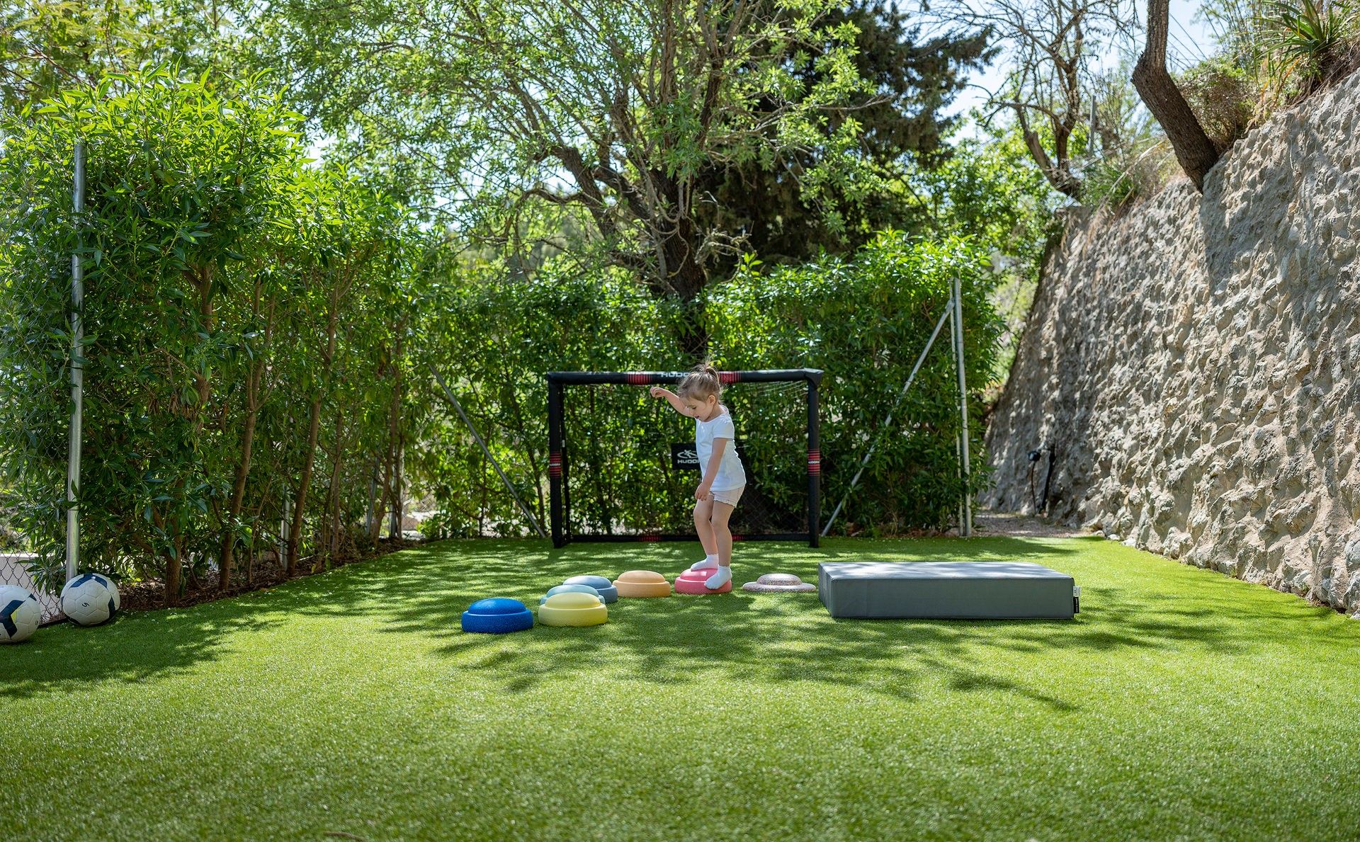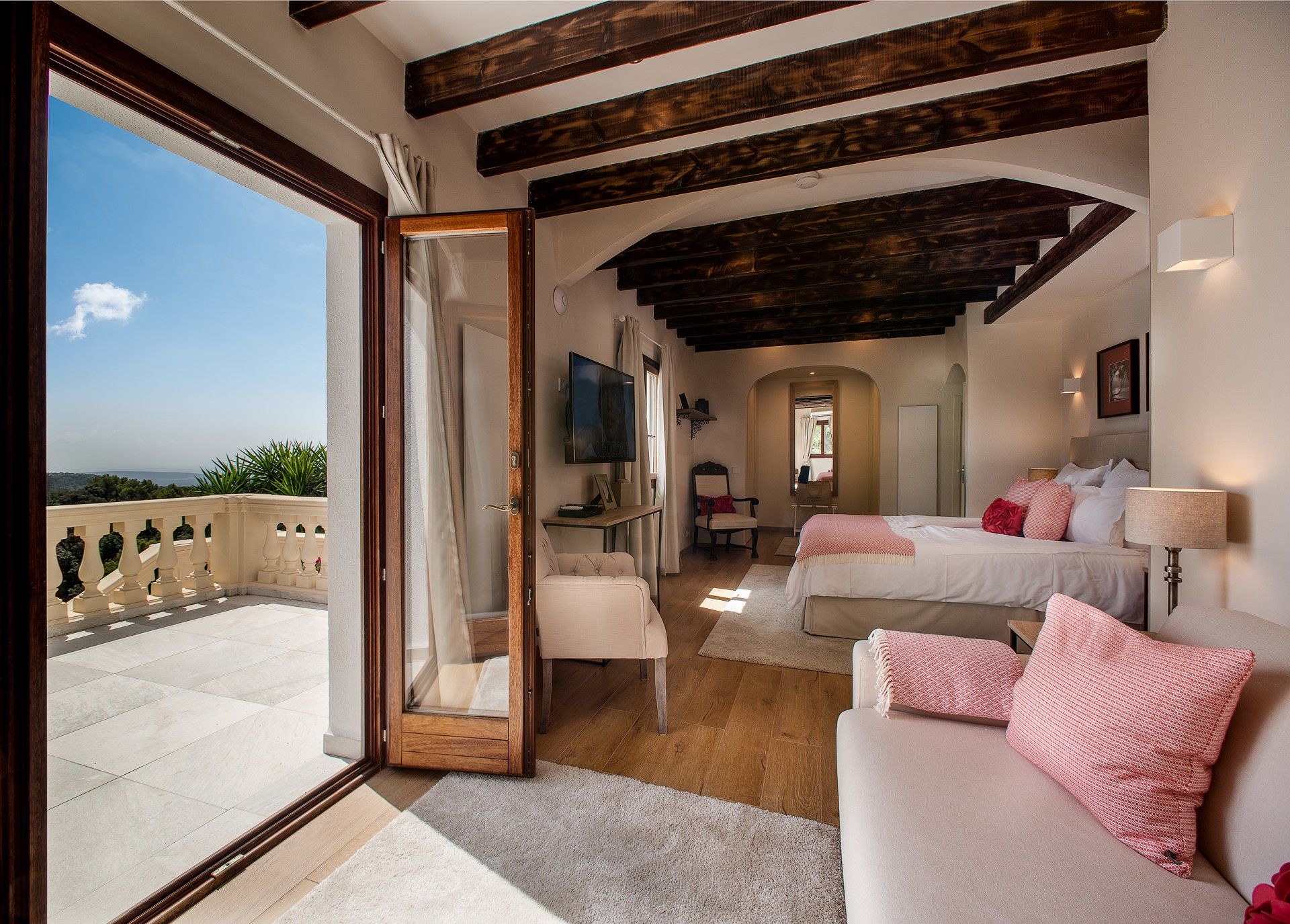 Finca Bella Roca ligger over den charmerende bjerglandsby Galilea og er et luksuriøst tilflugtssted i hjertet af de UNESCO-listede Tramuntana-bjerge. 400 meter over havets overflade byder dette eksklusive tilflugtssted på en betagende 360° udsigt over havet og bjergene og er den perfekte flugt fra hverdagen. Villaen har fire smukt designede soveværelser, hvert med eget badeværelse, 5-stjernede boxspring-senge, aircondition og en fantastisk udsigt. Et fuldt udstyret high-end køkken inviterer dig til at skabe mindeværdige måltider, mens rummelige opholdsrum sikrer afslapning med stil. Forkæl dig selv med enestående faciliteter, herunder en stor sauna med udsigt over haven, et privat fitnesscenter og en opvarmet 19 m saltvandspool med udsigt over bjergene. Villaen byder også på mange fredelige åndehuller, en fodboldbane med kunstgræs og en legeplads for familier. Uanset om man nyder et glas rosé på terrassen, lytter til fuglesang i haven eller udforsker øens naturlige skønhed, tilbyder Finca Bella Roca en sømløs blanding af luksus, komfort og privatliv for en uforglemmelig flugt. ETV 9898