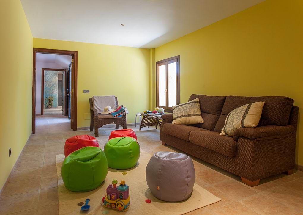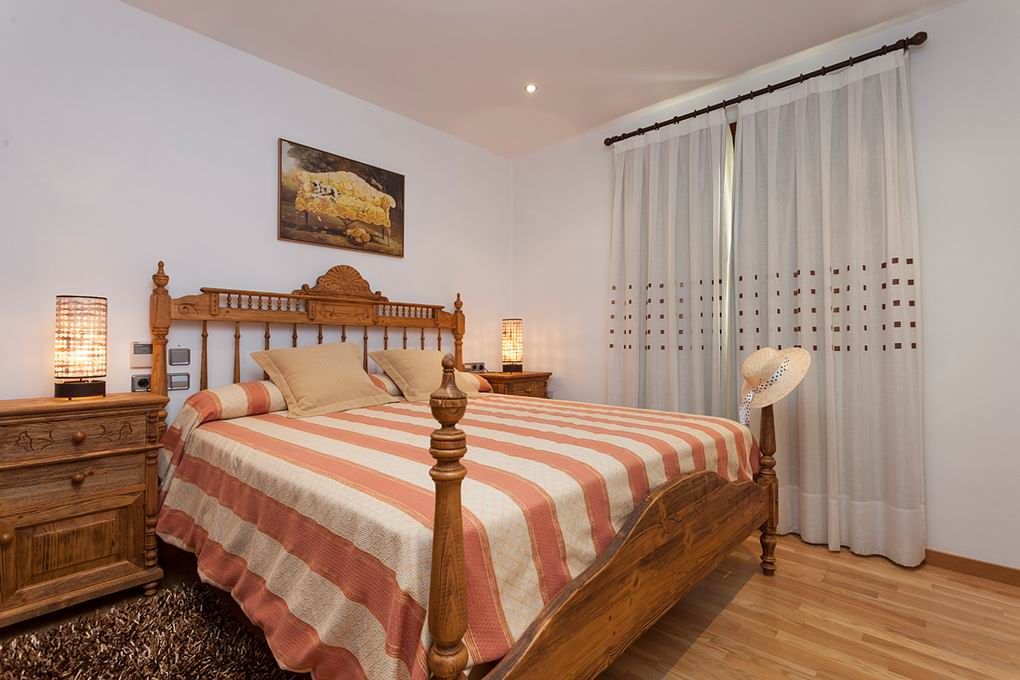 - Fire soveværelser med dobbeltsenge, hver med eget badeværelse