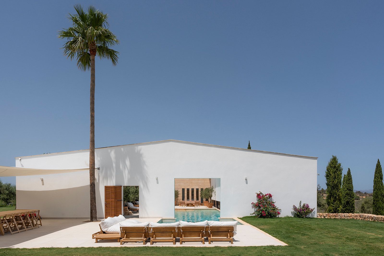 Denne ejendom er en oase af ro og underdrivelse, præget af imponerende arkitektur og et harmonisk samspil mellem indvendige og udvendige rum.