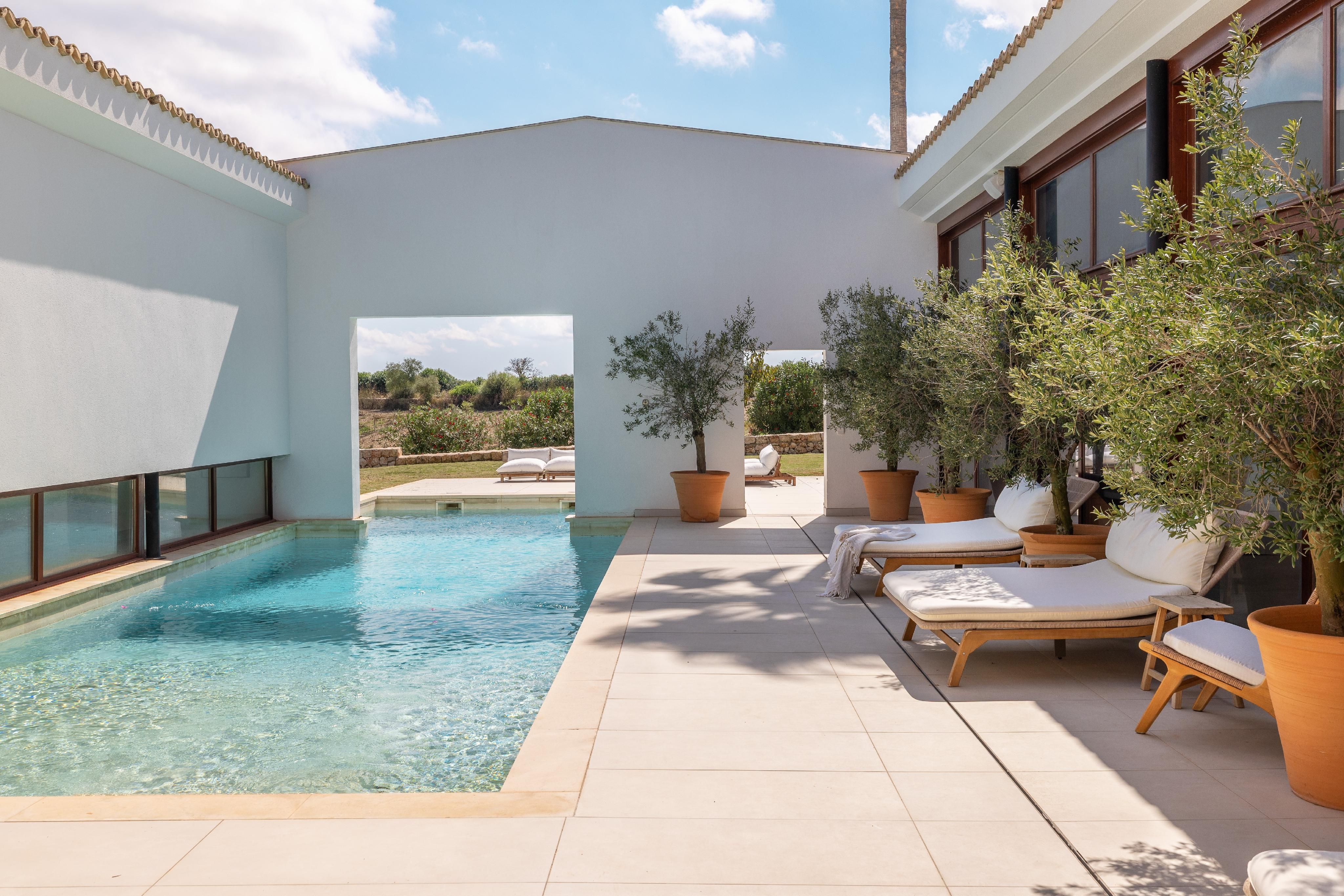 Beliggende i det blide landskab i Maria de la Salut er dette enestående arkitekttegnede hjem indbegrebet af eksklusiv middelhavsliv.