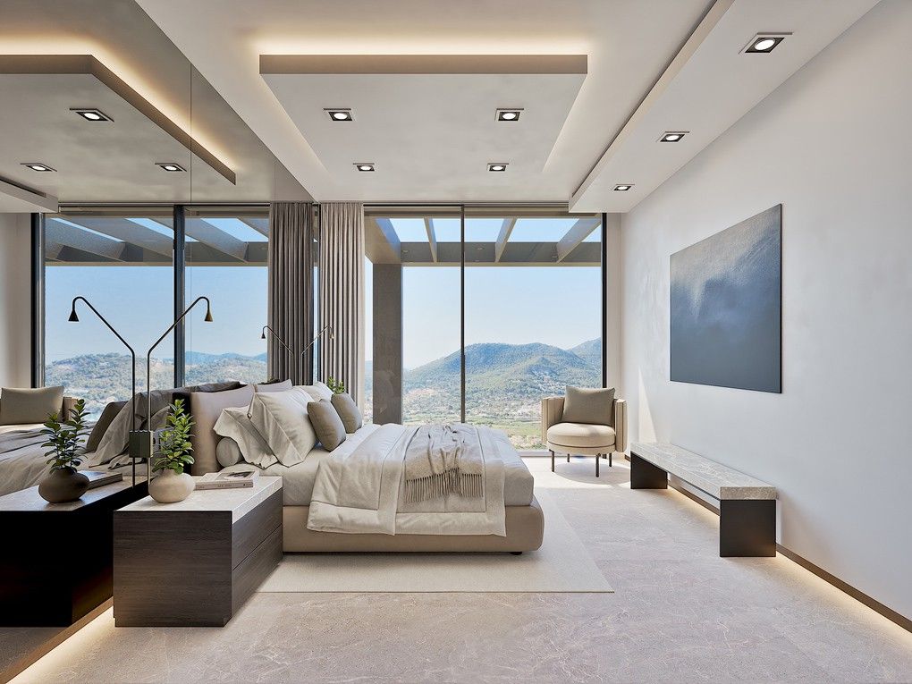 Hver villa er udstyret med 3 soveværelser og 3-4 badeværelser, suppleret med et rummeligt opholdsrum med et åbent køkken med en central kogeø. De store glaspartier kan åbnes helt ud til den private poolterrasse, hvilket skaber en sømløs overgang mellem indendørs og udendørs ophold. Derudover indbyder tagterrassen med udendørs bar til at nyde Mallorcas varme, lune aftener med venner og familie, mens man nyder den fantastiske udsigt.