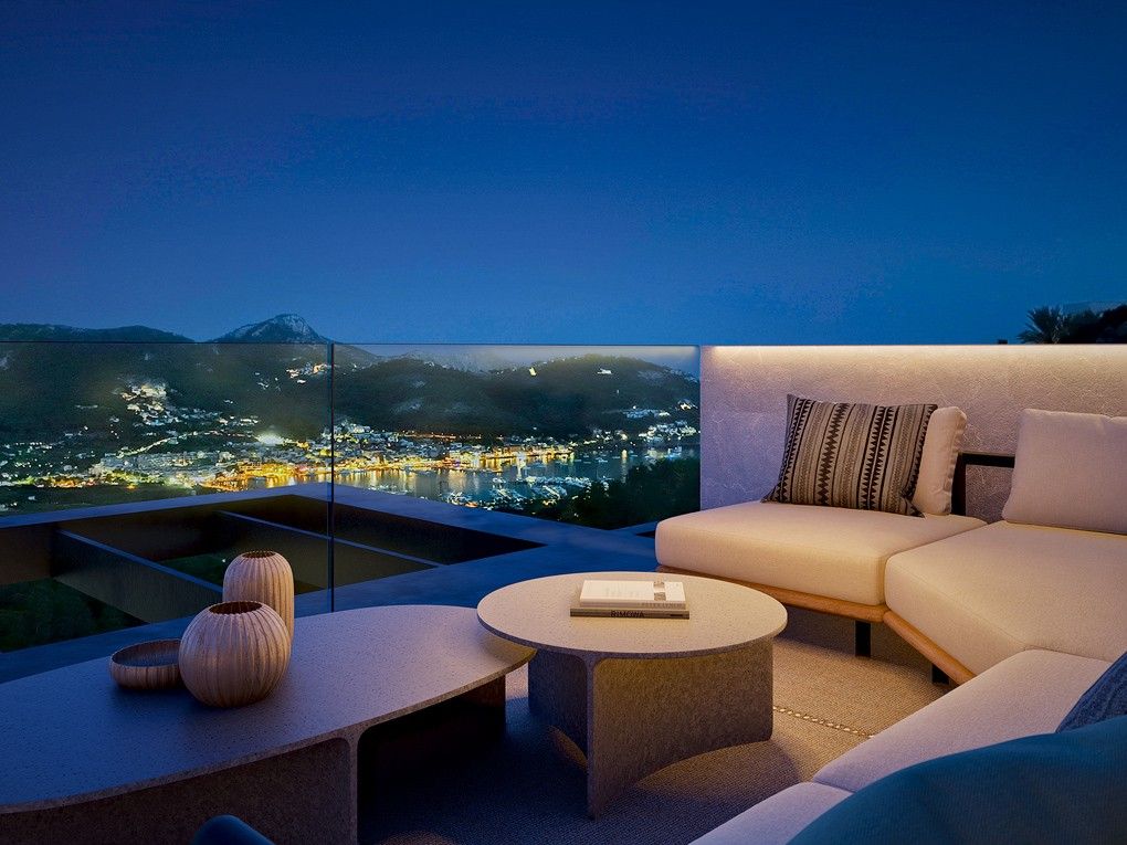 Hver villa er udstyret med 3 soveværelser og 3-4 badeværelser, suppleret med et rummeligt opholdsrum med et åbent køkken med en central kogeø. De store glaspartier kan åbnes helt ud til den private poolterrasse, hvilket skaber en sømløs overgang mellem indendørs og udendørs ophold. Derudover indbyder tagterrassen med udendørs bar til at nyde Mallorcas varme, lune aftener med venner og familie, mens man nyder den fantastiske udsigt.
