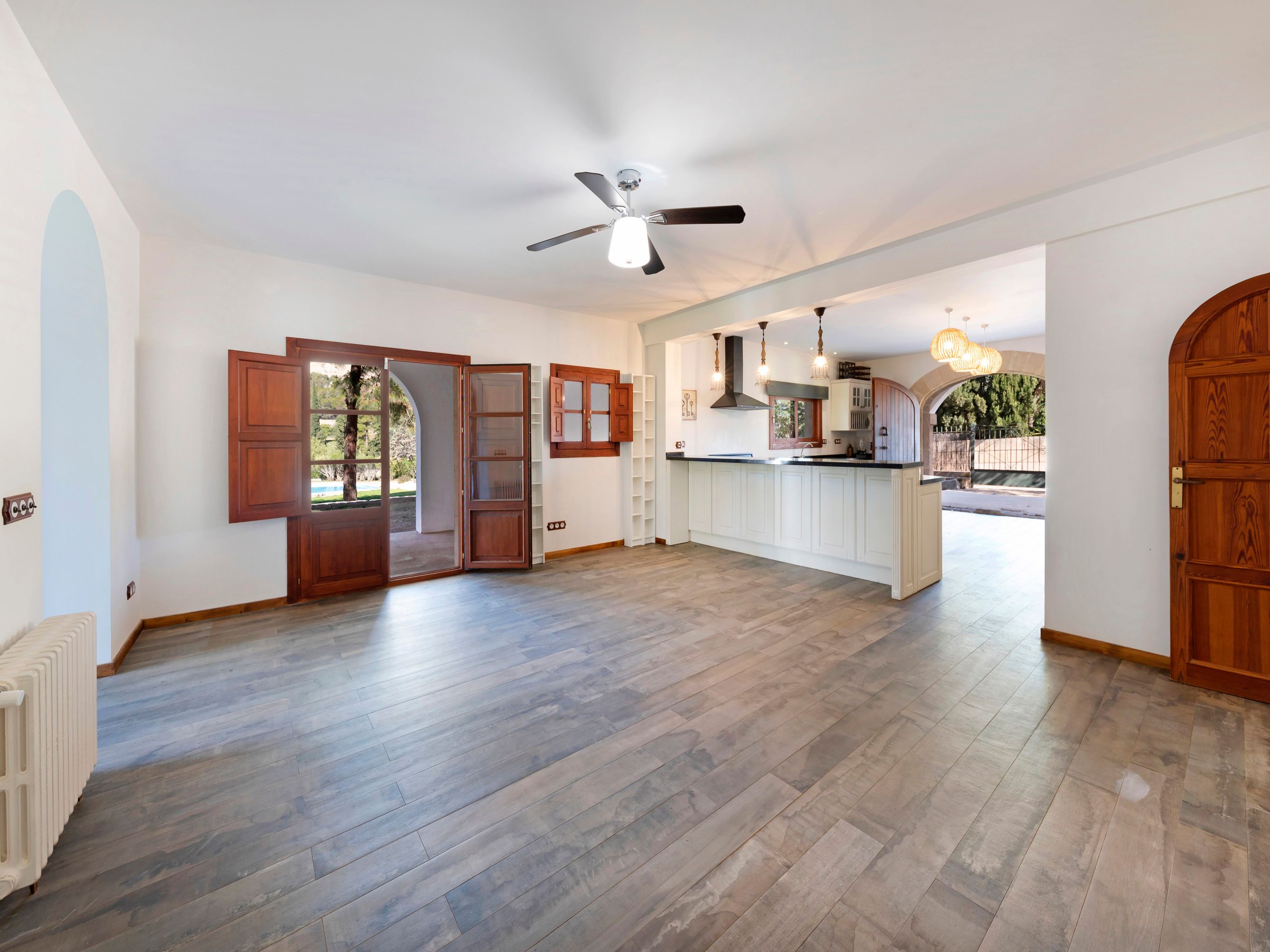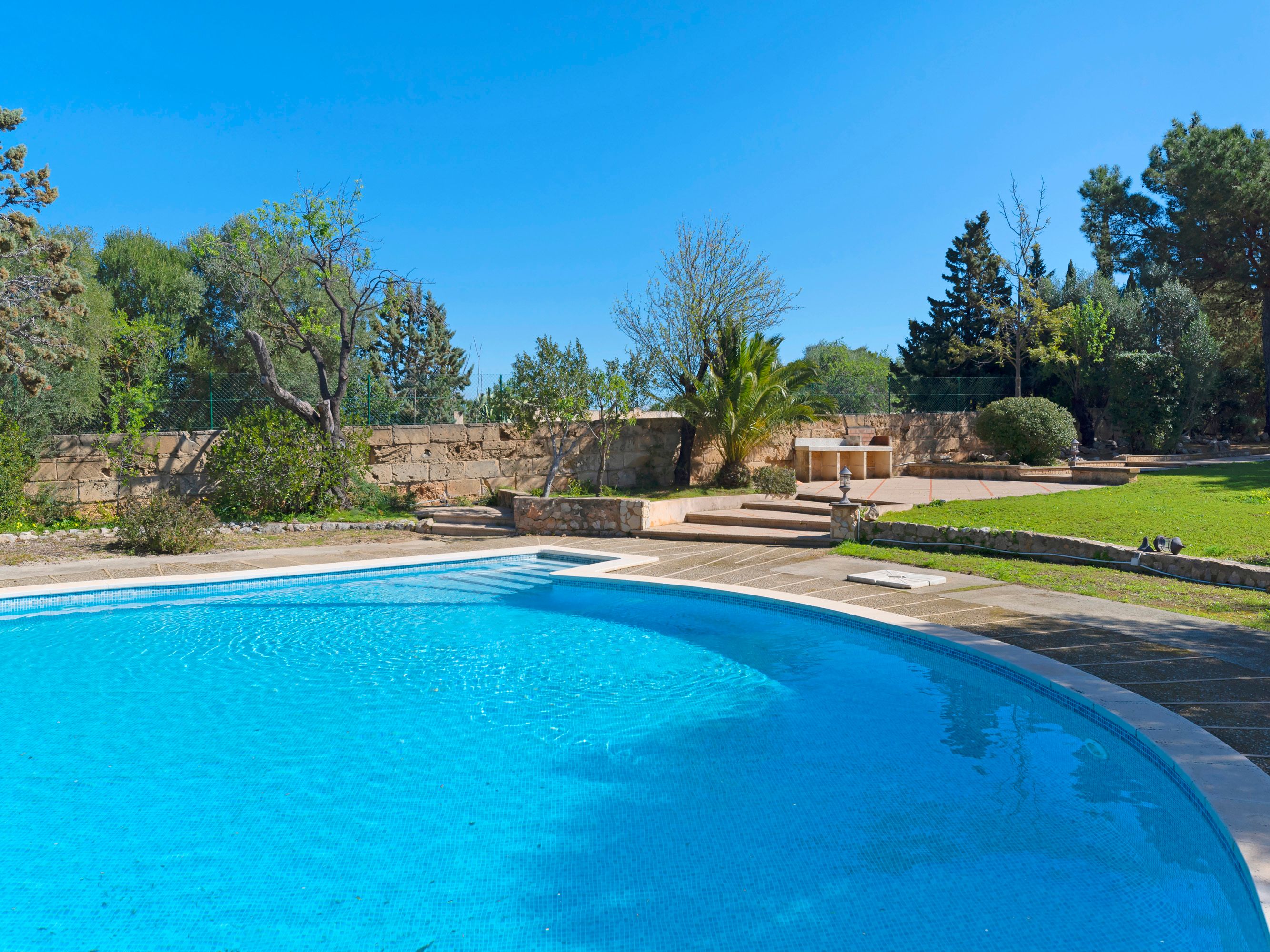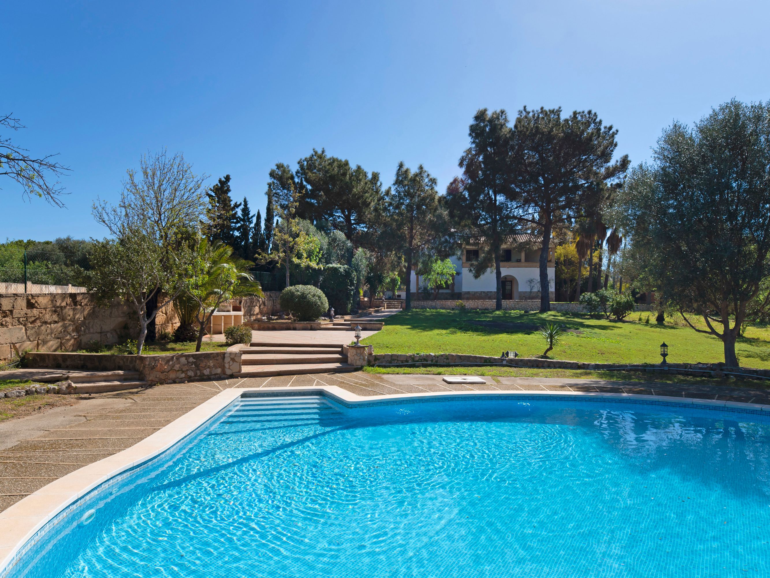 I nærheden af Palma ligger denne autentiske mallorcinske landbolig med traditionel arkitektur og ro i landlige omgivelser. Kun 10 minutters kørsel fra hjertet af Palma ligger dette hus, der stammer fra 1900-tallet, på en rummelig, flad grund på 3.800 kvadratmeter. Med 300 kvadratmeter boligareal fordelt på to etager venter ejendommen på at blive moderniseret. Huset er omgivet af flere terrasser, hvoraf nogle er overdækkede, med malerisk udsigt over landskabet og bjergene fra både stueetagen og de øverste etager. Scenen fuldendes af en stor, unikt formet rund pool i haven, hvilket gør denne charmerende ejendom til et ideelt valg til enten ferieophold eller permanent ophold.