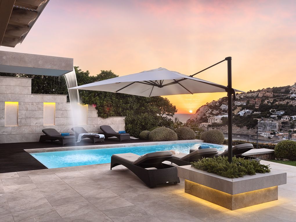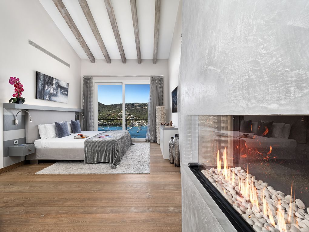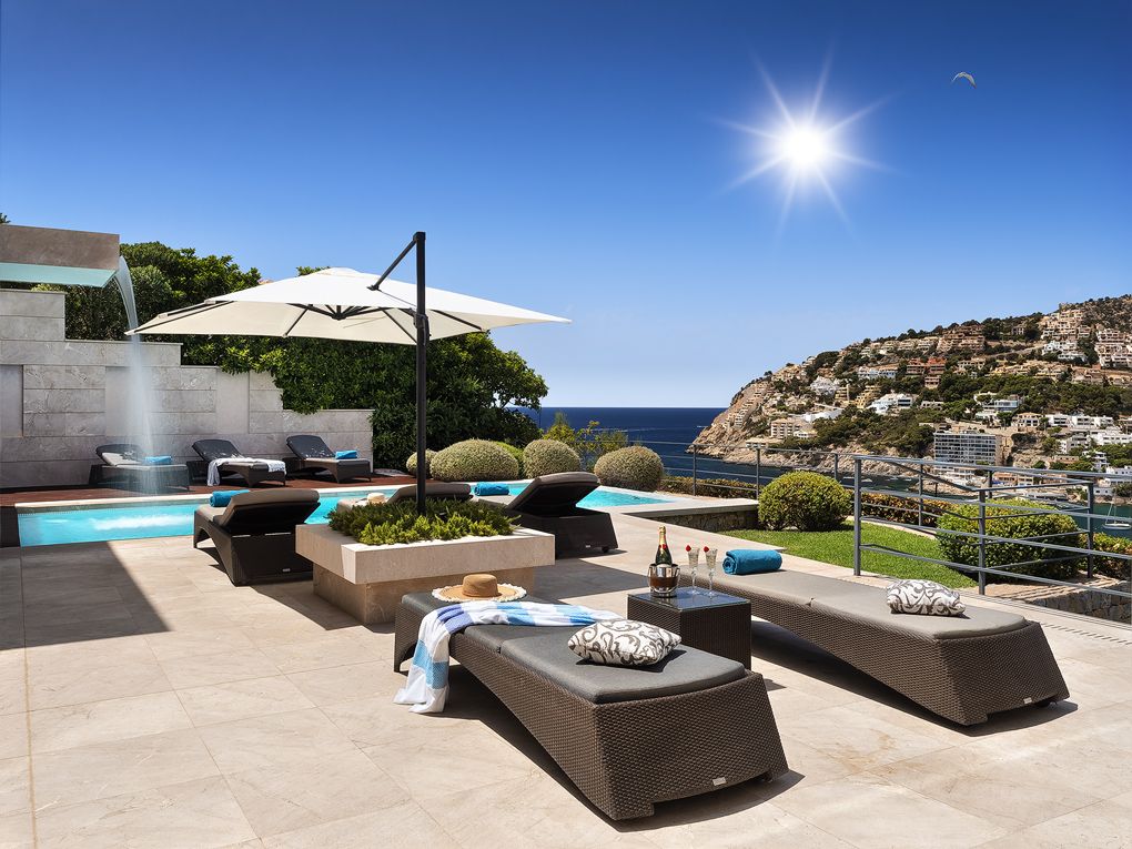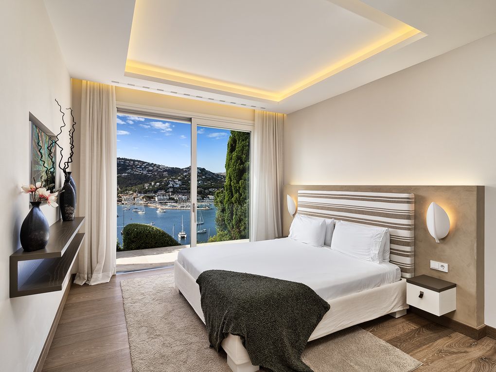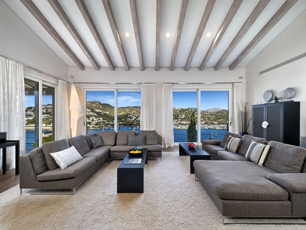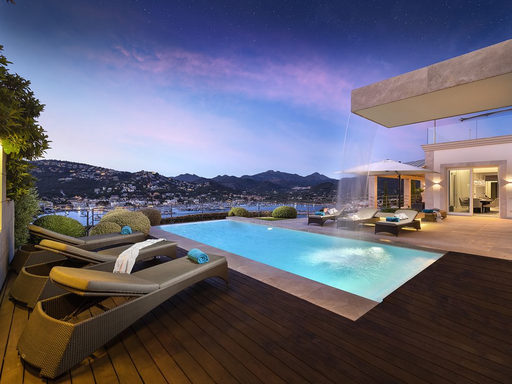 Over havnen i Port Andratx byder dette moderne hus på en fantastisk udsigt samt de bedste byggematerialer og den højeste komfort. Boligarealet på 650 kvm er fordelt på to etager og et separat poolhus. På øverste etage i hovedhuset ligger det moderne, fuldt udstyrede og åbne Birgit Müller-køkken med tilstødende spisestue, direkte ved siden af den komfortable stue med åben skorsten. Etageinddelingen fuldendes af et generøst master bedroom med bad en suite, som byder på den samme betagende udsigt over havnen som alle andre værelser. I stueetagen er der yderligere 4 soveværelser, alle med bad en suite, samt et vaske- og opbevaringsrum. Der er mulighed for at få endnu et soveværelse med badeværelse en suite, i alt seks. Det rummelige udendørs område overbeviser med sin store terrasse med infinity-pool, grillplads og en middelhavshave. Poolhuset er udstyret med et spa- og fitnessområde. Desuden har huset flere andre faciliteter såsom: gulvvarme, aircondition, BUS-system-regulering, lydsystem, elevator, natursten samt Schotten & Hansen-trægulve og meget mere. Huset sælges fuldt udstyret og møbleret.