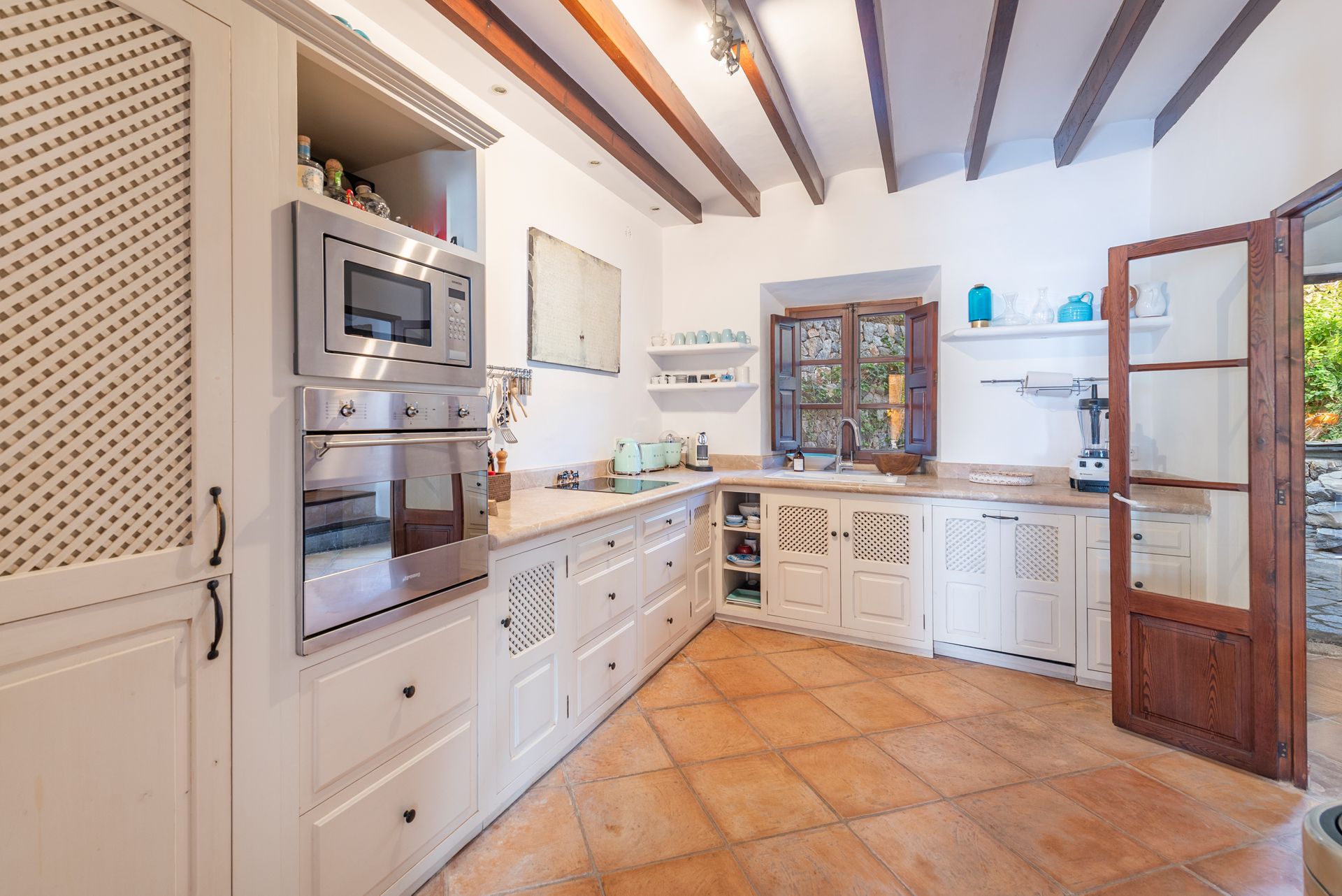 Hver detalje understøtter en let livsstil: Nyd morgenkaffen på den skyggefulde terrasse, solnedgangen fra den private tagterrasse og et layout, der flyder ubesværet over tre niveauer. Traditionelle bjælker, blødt puds og gennemtænkte forbindelser mellem indendørs og udendørs rum får hjemmet til at føles både jordnært og sofistikeret.