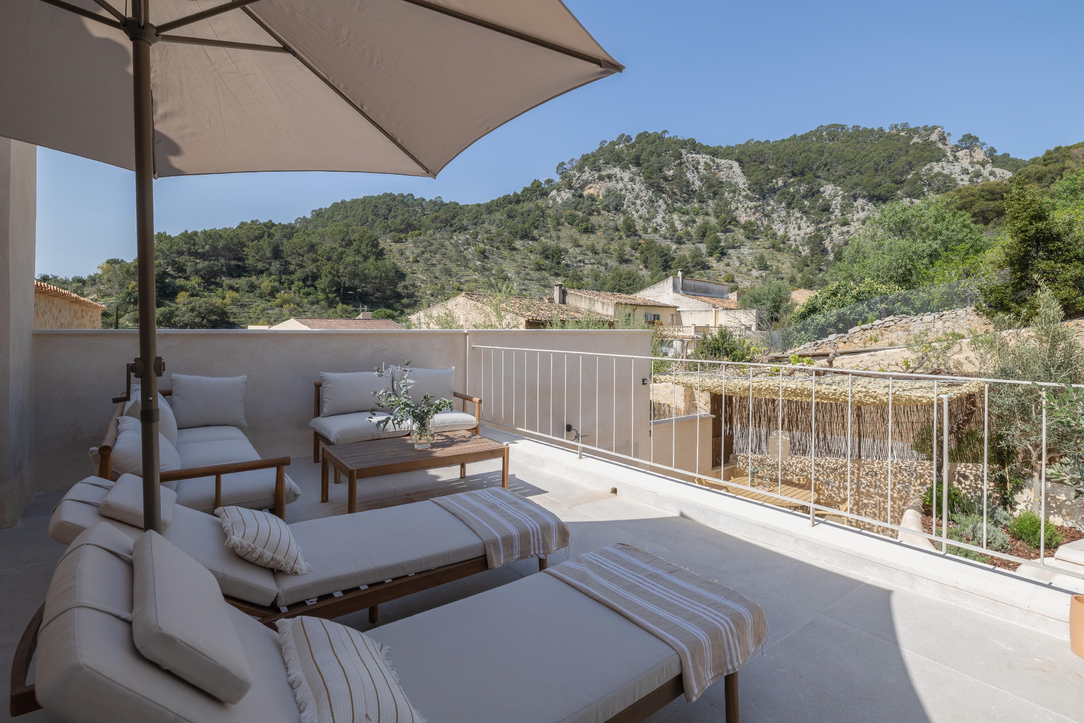 På dette niveau er der også et rummeligt soveværelse og et komplet badeværelse. På øverste etage er der yderligere to soveværelser, et stort badeværelse og et walk-in-closet. Terrassen på denne etage, med direkte adgang til poolområdet, giver en betagende panoramaudsigt over Serra de Tramuntana.