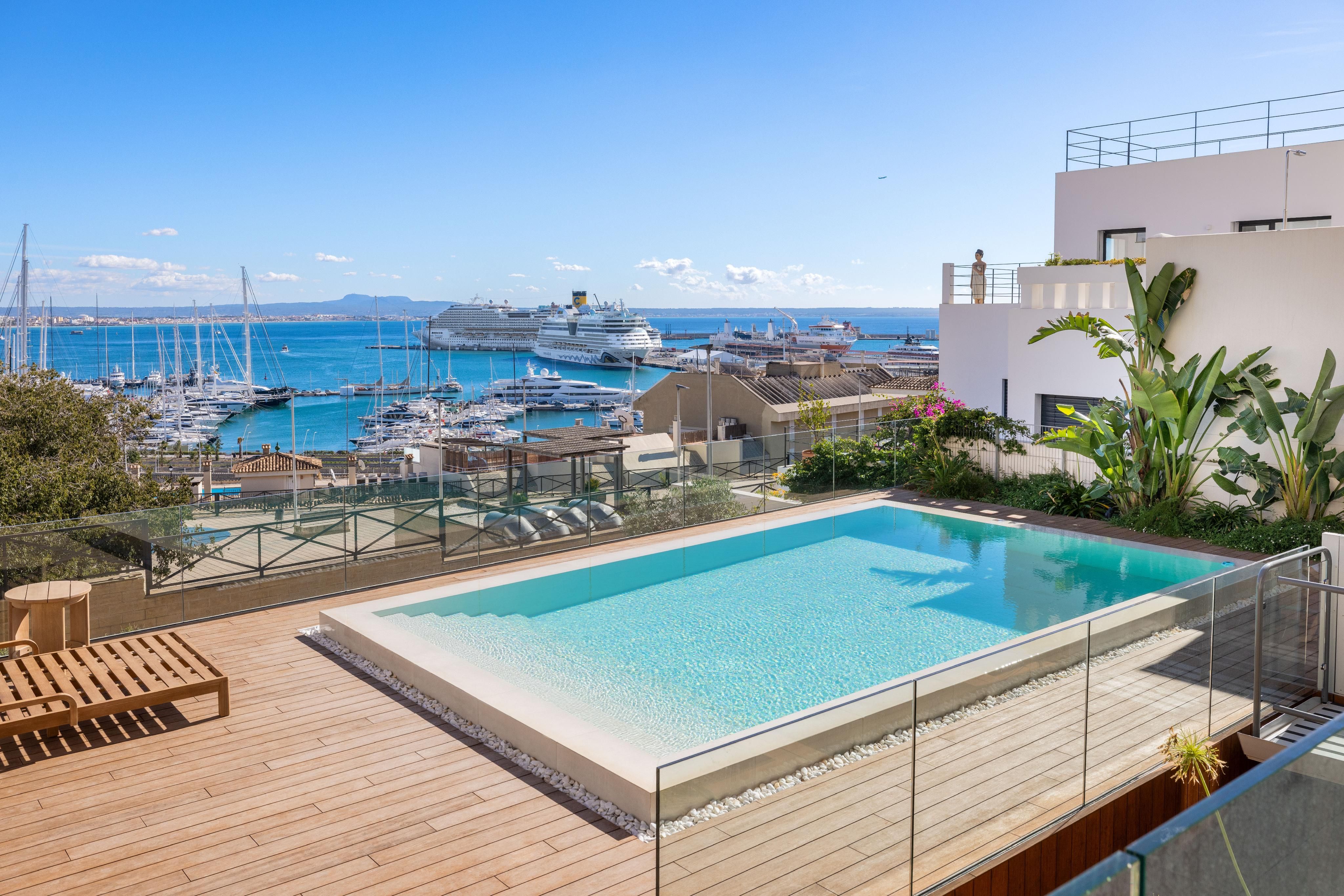 Type: Lejlighed • Region: Palma • Byggeår: 2024 • Samlet areal: 219 ㎡ • Værelser: 4 • Soveværelse: 3 • Badeværelse: 2 • Boligareal: 165 ㎡ • Parkeringspladser: 5 • Terrasse • Indbygget køkken • Aircondition • Elevator • Barrierefri adgang • Svømmebassin • Gæstetoilet • Varmeform: Gulvvarme, Central klimaanlæg, Fuldt klimatiseret • Varmeform: Varmepumpe
