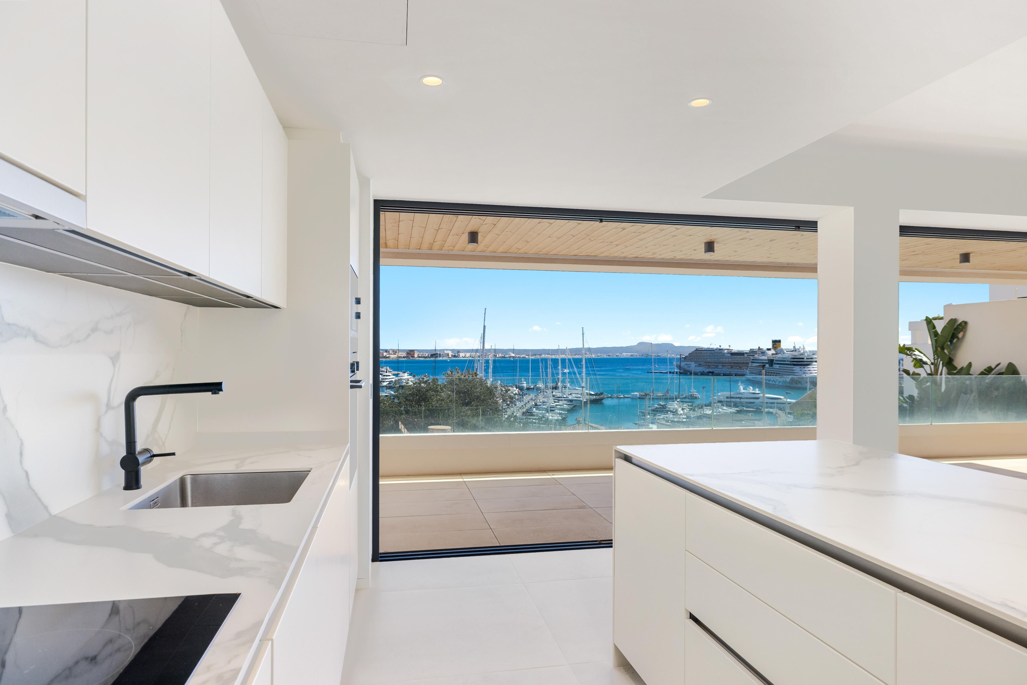 Dette moderne nybyggeri med en fantastisk havudsigt blev for nylig færdiggjort i Bonanova, et højtliggende distrikt i Palma. På grund af beliggenheden over havnen i Palma har alle de 9 lejligheder af høj kvalitet en fantastisk udsigt over havet, havnen og øens hovedstad med dens arkitektoniske juvel, katedralen "La Seu". Det eksklusive kompleks tilbyder sine beboere en infinity-swimmingpool med solterrasse samt et stort wellness-område med sauna og fitnesscenter. Midtpunktet i alle lejlighederne er det åbne opholds- og spiseområde med et integreret køkken med kogeø, hvorfra man også har adgang til den overdækkede terrasse. Nyd den fantastiske udsigt når som helst, komfortabelt fra sofaen, mens du laver mad eller på din egen terrasse. Derudover har alle lejligheder en master-suite med eget badeværelse og walk-in-garderobe samt 1-2 yderligere soveværelser med fuldt udstyrede indbyggede garderobeskabe og et ekstra badeværelse og gæstetoilet. Funktioner af høj kvalitet omfatter individuelt kontrollerbar aircondition og gulvvarme i alle rum og i spaområdet, der drives af en reversibel varmepumpe, store vinduesfronter med aluminiumsrammer af mærket Cortizo eller lignende samt motoriserede udvendige persienner, døre fra gulv til loft, stenfliser (Marés eller lignende) 100x100cm i interiøret og på de private terrasser, matsorte armaturer af mærket IMEX i badeværelserne, åbne køkkener fra Cocinart med Siemens indbyggede apparater eller lignende samt et smart-home system af mærket Gira/KNX. Prisen inkluderer 2 garageparkeringspladser pr. enhed eller 1 garageparkeringsplads og en udendørs parkeringsplads samt et opbevaringsrum.