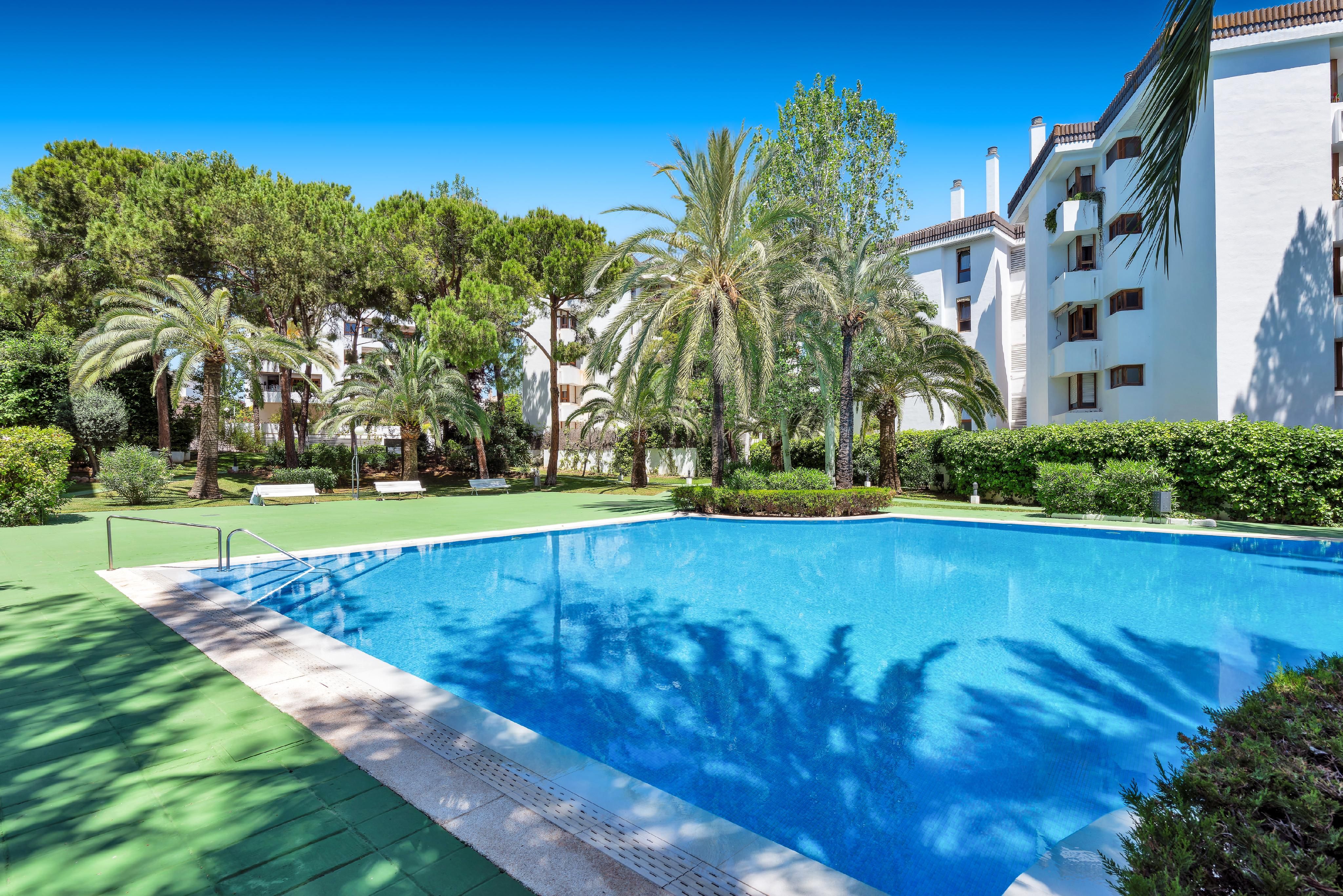 Type: Lejlighed • Region: Palma • Byggeår: 1986 • Seneste restaurering: 2024 • Samlet areal: 125 ㎡ • Værelser: 3 • Soveværelse: 2 • Badeværelse: 2 • Boligareal: 109 ㎡ • Parkeringspladser: 2 • Terrasse • Indbygget køkken • Elevator • Svømmebassin • Varmeform: Decentral klimaanlæg • Varmeform: Elektrisk opvarmning • Gulvbelægning: Parket