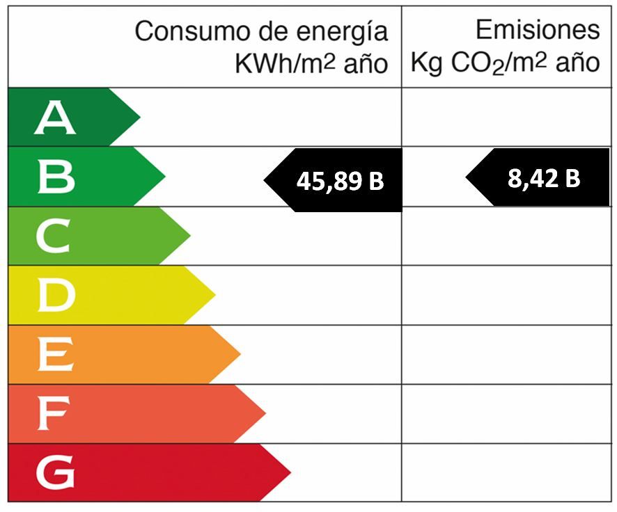 Byggeår: 2025 • energiforbrugskoefficient: 45.89 kWh/(m2*a) • CO2-emission: 8.42 kg/m2 • CO2-emissionsklasse: B • Varmeform: Varmepumpe • Energieffektivitetsklasse: B