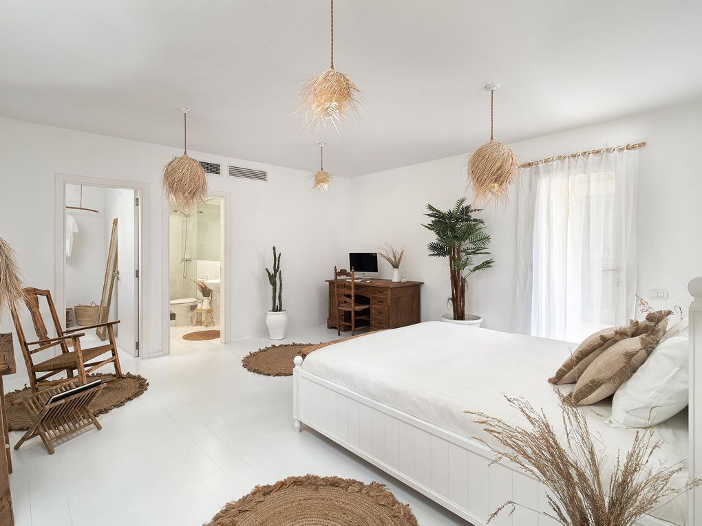 På første sal er der yderligere fire soveværelser og to badeværelser, hvoraf det ene er det store soveværelse med eget badeværelse, garderobe og en privat terrasse med jacuzzi. Derudover har de andre soveværelser en fælles terrasse med direkte adgang til swimmingpoolen.