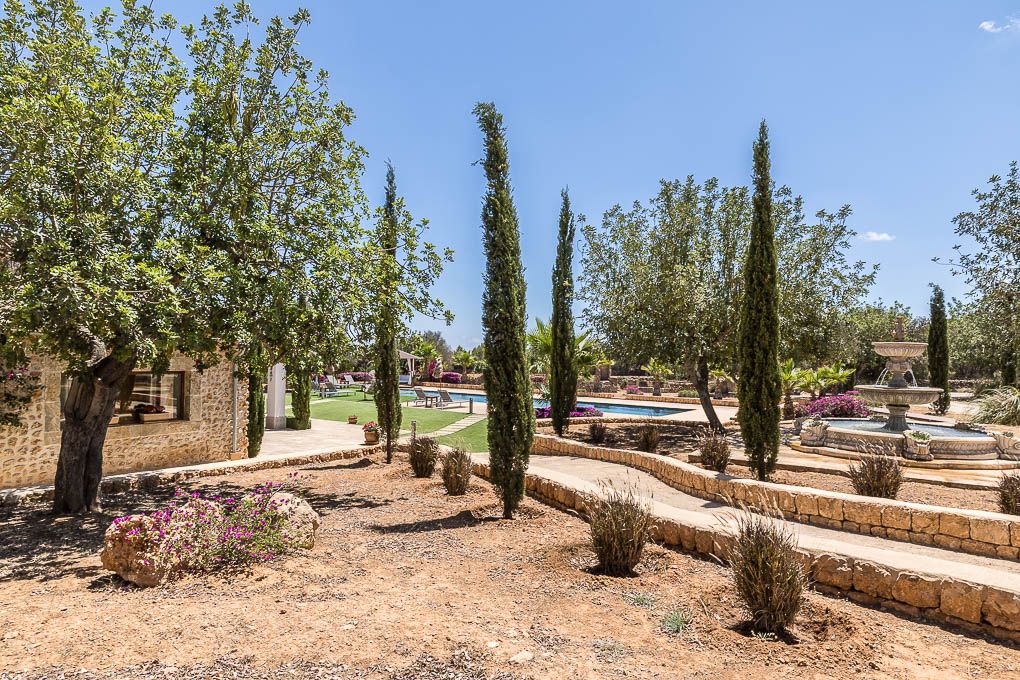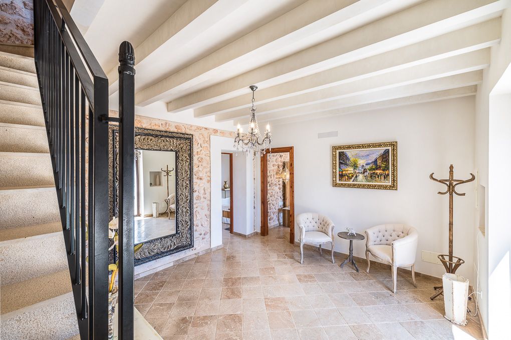 Husets ydre er en drøm: med flere terrasser, en fantastisk pool, et miljø fuld af indfødt vegetation, små stier, der løber gennem huset, alle lavet af natursten, plus en smuk stenfontæne. Det er den perfekte mulighed for at bo i et mallorcinsk landhus med alle moderne bekvemmeligheder.