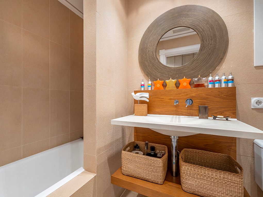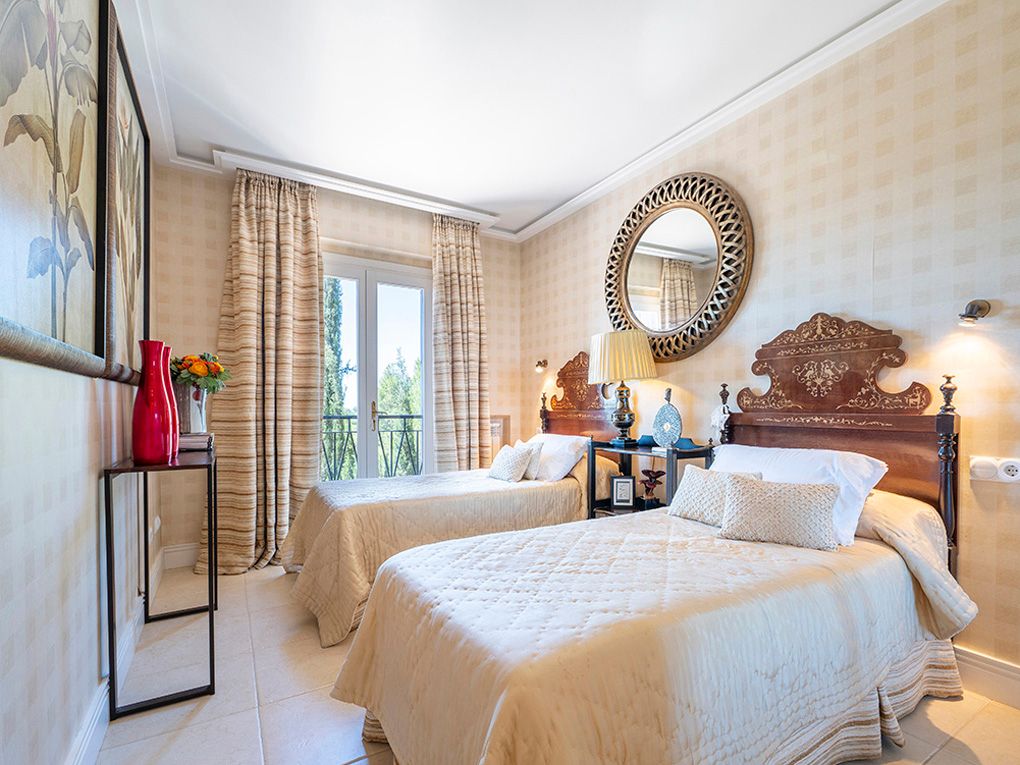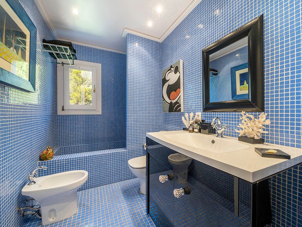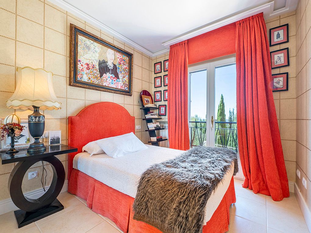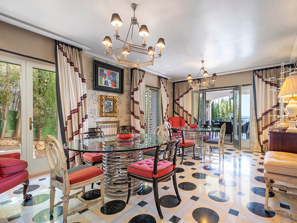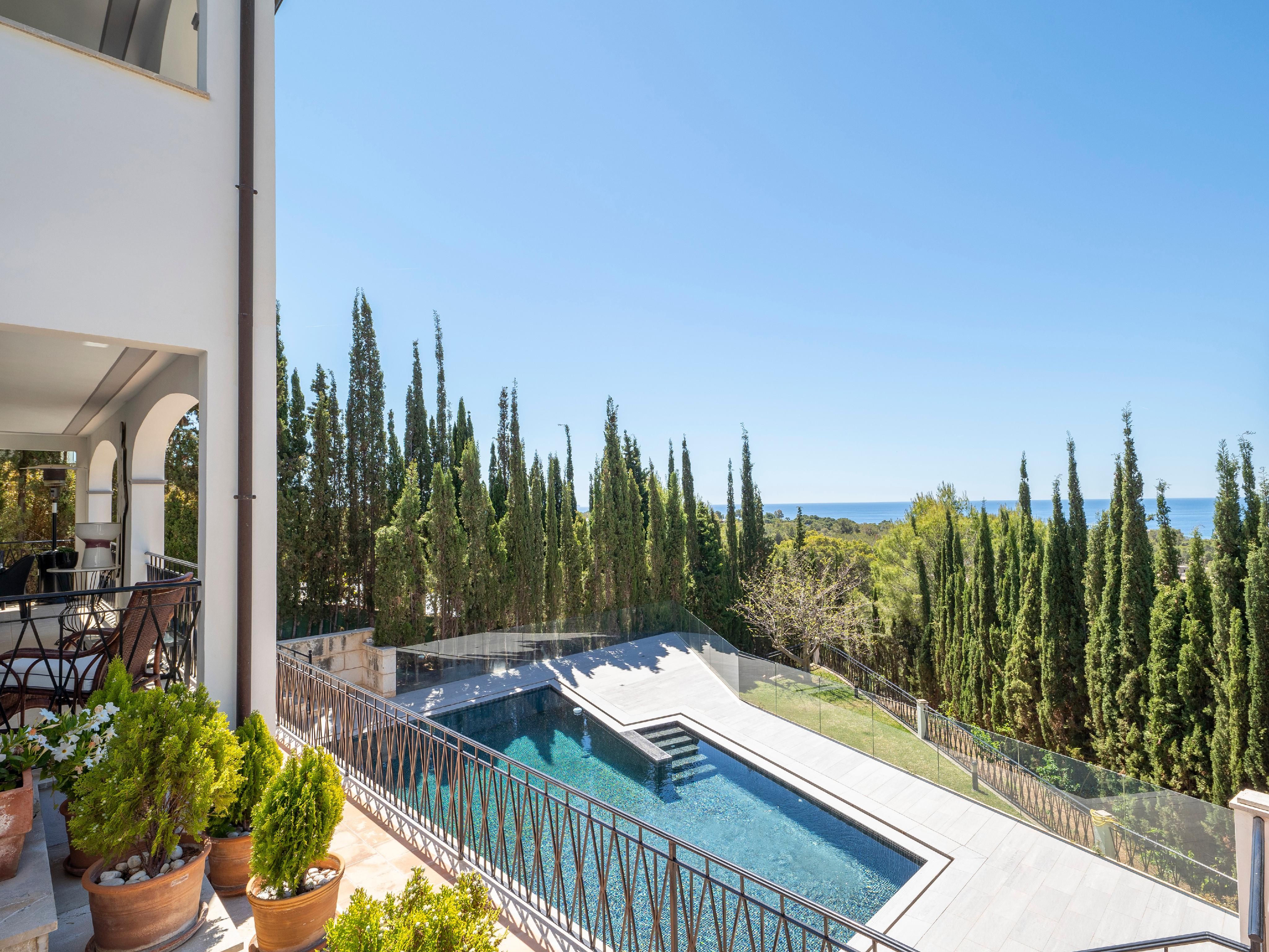 Denne stilfulde villa ligger i et roligt boligområde og imponerer med sin privilegerede beliggenhed med fantastisk havudsigt og nærhed til strande og indkøbsmuligheder. Den ligger på en grund på ca. 1.260 m² og tilbyder masser af privatliv og kombinerer eksklusiv boligkomfort med en middelhavsstil. Huset strækker sig over to etager. I stueetagen er der to rummelige soveværelser med en-suite badeværelser og omklædningsrum - begge med udsigt over haven, poolen og havet. Den lyse opholds- og spisestue har udgang til den store poolterrasse, mens det rummelige køkken har et separat morgenmadslokale. Andre funktionelle rum som et strygerum, et spisekammer, et stuepigeværelse og et badeværelse fuldender rummet. Ovenpå er der et enkelt soveværelse og et soveværelse med badeværelse, påklædningsværelse og fransk altan med havudsigt. En stilfuld lounge/bibliotek med terrasse giver plads til at slappe af. Det store soveværelse med eget badeværelse, påklædningsværelse og adgang til et andet soveværelse med badeværelse har udgang til den store terrasse med fantastisk udsigt. Højkvalitetsfunktioner inkluderer et fitnessrum, elevator, aircondition, gasopvarmning, fine gulve (marmor, granit, bambus), termoruder, indbyggede skabe, elektriske porte, persienner, alarmsystem og en rummelig saltvandspool. En eksklusiv ejendom for den mest kræsne køber - roligt beliggende, finish i høj kvalitet og enestående havudsigt.