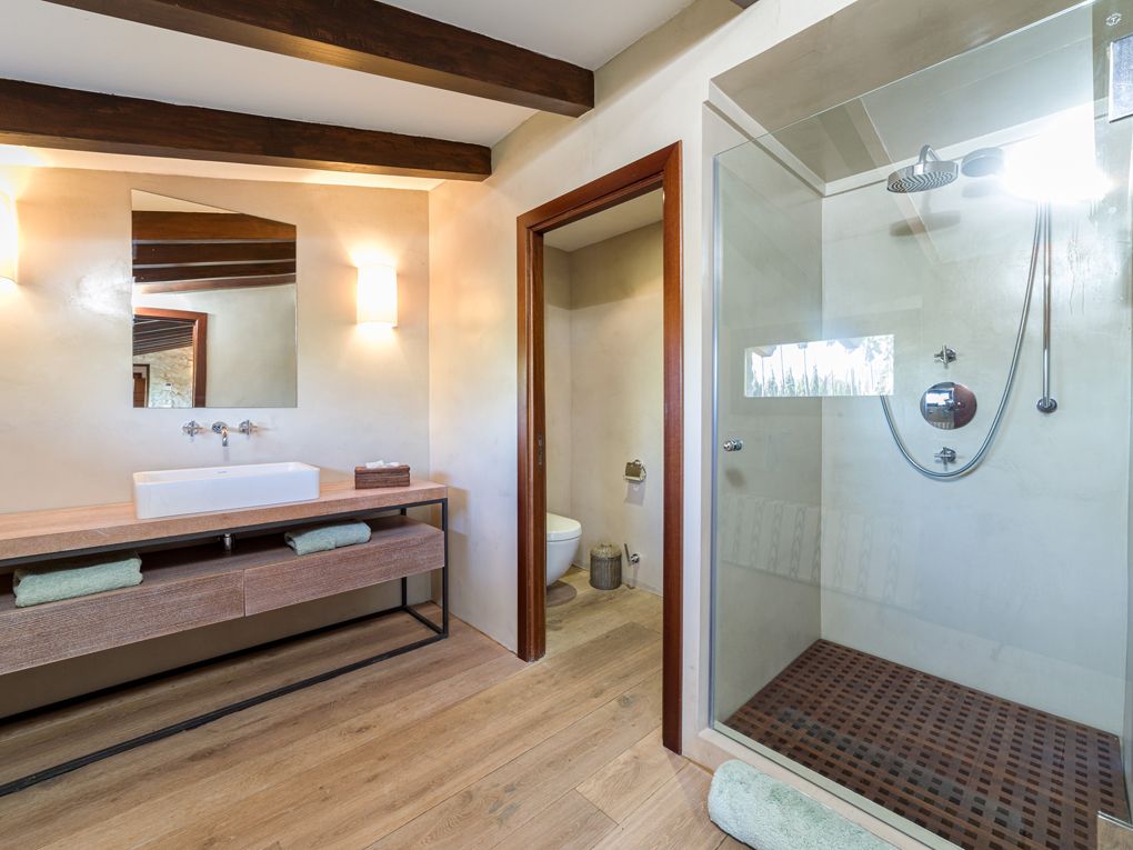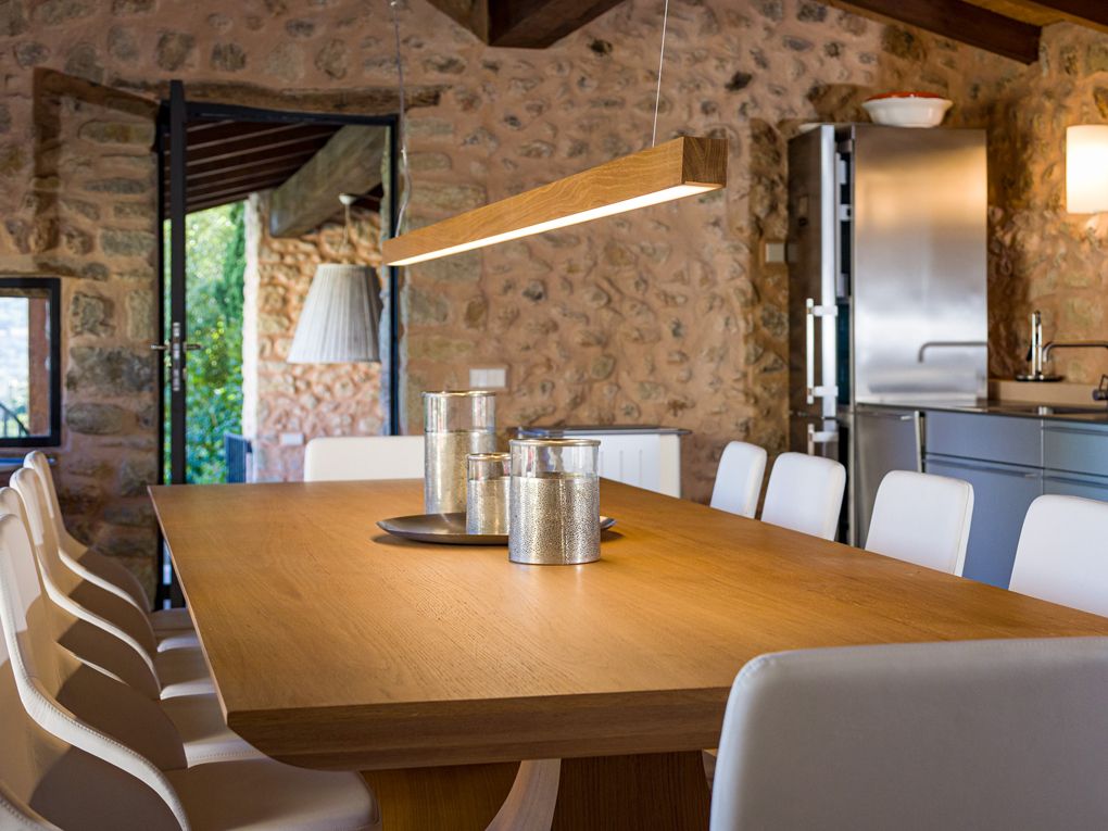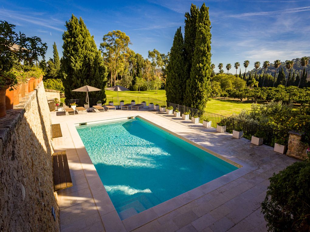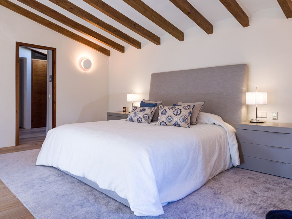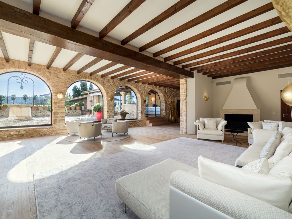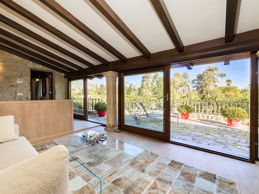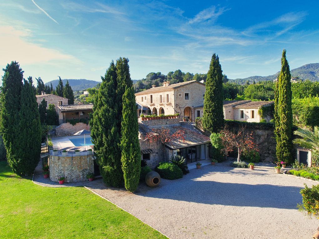 Ejendommen stammer fra det 17. århundrede, og den oprindelige bygning blev totalrenoveret og moderniseret for et par år siden. Det var vigtigt at integrere naturstensbygningens charme og samtidig skabe moderne og åbne opholdsrum, der lever op til nutidens boligkomfort. Der er brugt udsøgte materialer, og også ejendommens udenomsarealer er velholdte. Ud over hovedbygningen med stuer, moderne køkken samt 4 soveværelser med en-suite badeværelser, har ejendommen et separat gæstehus med en-suite badeværelse samt en anden separat tilgængelig suite. En stor pool, et fitnessrum, en sauna og en tennisbane er også en del af faciliteterne. Haven er fuldstændig anlagt og har utallige middelhavsplanter og -træer, herunder en appelsinplantage. Ejendommen er helt enestående og ligger i et meget roligt område nær landsbyen med spektakulær udsigt over de imponerende tvillingebjerge i Alaró.