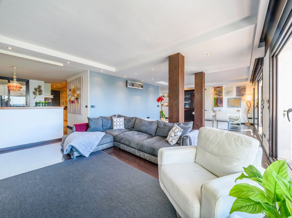 Dette er en unik bolig af høj kvalitet, som ligger på hele første sal (hvor der normalt er 2 lejligheder) på gågaden foran havet i Alcudias havn. Ejendommen har elevator og har en fantastisk havudsigt. Lejligheden har et samlet bebygget areal på 353 m2, 4 rummelige soveværelser, 1 gæstetoilet, 2 badeværelser on suite og et 3. Jack and Jill-badeværelse. Soveværelserne ligger ud til en stor gang, hvor der er masser af plads til at indrette et hjemmekontor eller et legeområde. En stor stue-spisestue har en glasfront fra gulv til loft, der åbner ud til en super, havvendt terrasse, og der er en fantastisk udsigt over marinaen og Alcudia-bugten indefra og ud. En automatiseret markise på terrassen giver skygge og privatliv efter behov. Lejligheden suppleres af et bryggers og et køkken i halvt åbent plan, som har adgang til en indvendig gårdhave. Yderligere funktioner omfatter en pejs i opholdsstuen, påklædningsværelse, laminatgulve, klimaanlæg med omvendt cyklus samt et alarmsystem. Lejligheden er en engangsforestilling, og det er usandsynligt, at noget af samme størrelse på strandpromenaden kommer på markedet igen. Den fantastiske beliggenhed er tæt på et fremragende udvalg af restauranter, en fantastisk sandstrand, gode indkøbsmuligheder og en smuk marina, som alle er inden for gåafstand, og Palma de Mallorca eller lufthavnen er kun 45 minutter væk i bil. Hvis du er på udkig efter en stor, smuk lejlighed ved havet, skal du sørge for at sætte denne ejendom på din shortlist for at se den.
