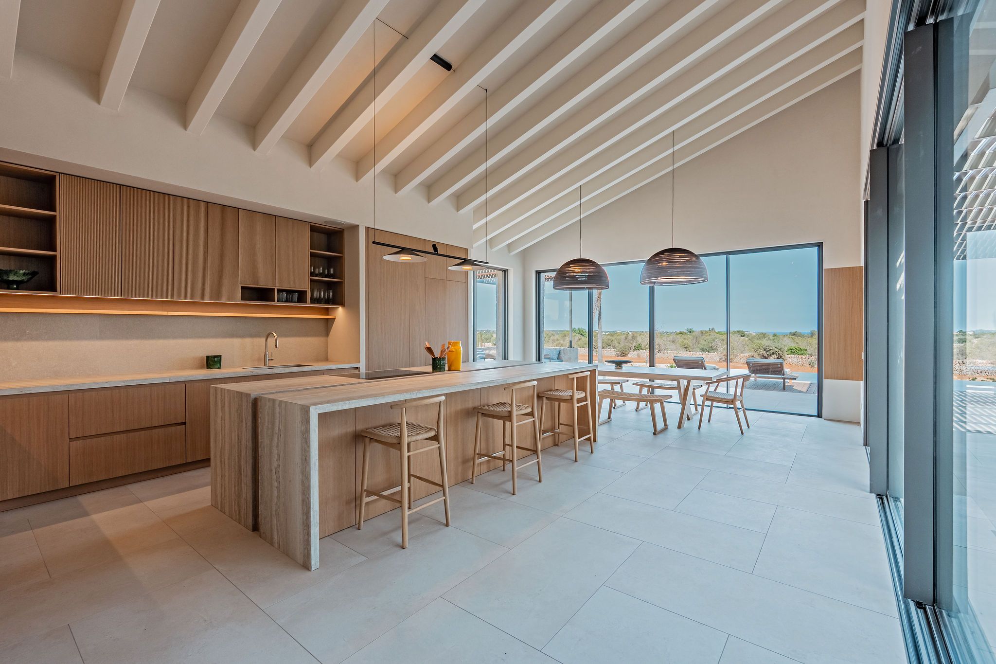 Denne enestående nybyggede finca i Cala Llombards kombinerer traditionel mallorcinsk stil med moderne luksus og det højeste niveau af boligkomfort. Ejendommen ligger på en grund på omkring 15.675 m² og har et boligareal på ca. 878 m² og blev færdiggjort i 2025, hvilket garanterer den nyeste byggekvalitet. Arkitekturen er baseret på den klassiske finca-stil, men genfortolker den med rene linjer og materialer af høj kvalitet. Det mediterrane opholds- og spiseområde med et åbent designerkøkken og det separate sommerkøkken gør denne ejendom til et ideelt sted for stilfulde aftener med venner eller familie. Der er i alt seks store soveværelser og syv stilfuldt udstyrede badeværelser. Interiøret imponerer med et åbent koncept, højt til loftet og store vinduespartier, der lukker masser af lys ind og samtidig giver udsigt til havet og de fantastiske solnedgange over Santanyí. Gulvvarme og central aircondition sikrer et behageligt indeklima hele året rundt. Et privat spa-område, et fitnessrum og en hjemmebiograf er ideelle til dine fritidsaktiviteter. Det rummelige udendørs område har et generøst poolområde med mange store terrasser, der er designet med stor opmærksomhed på detaljer. Natur, ro og design smelter harmonisk sammen her. Materialer som mikrobeton, terrakotta og naturmaterialer af høj kvalitet skaber en tidløs, elegant atmosfære, som går igen i hele huset. Denne finca er mere end bare en ejendom - det er en livsstil for alle, der værdsætter stil, kvalitet og autenticitet.