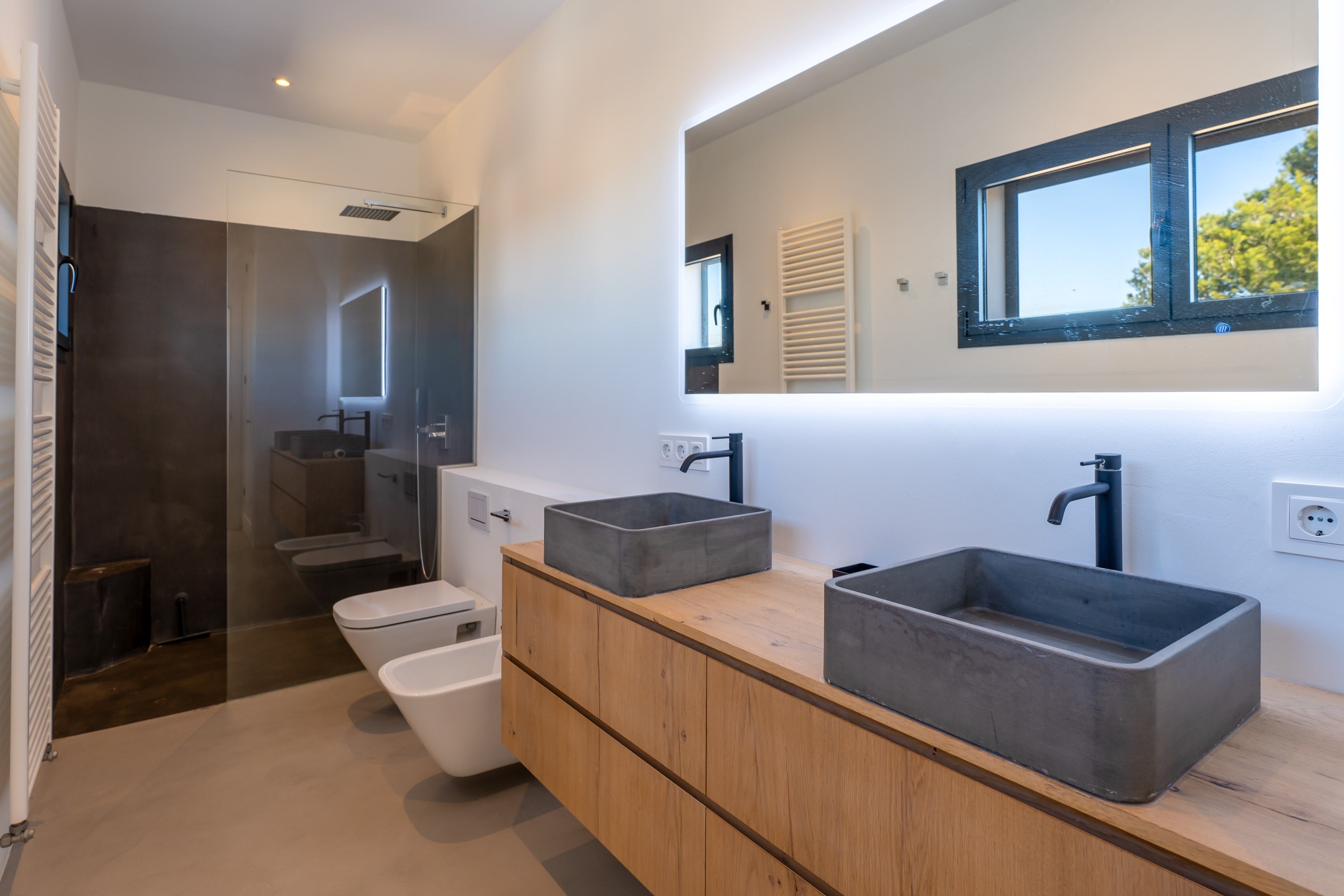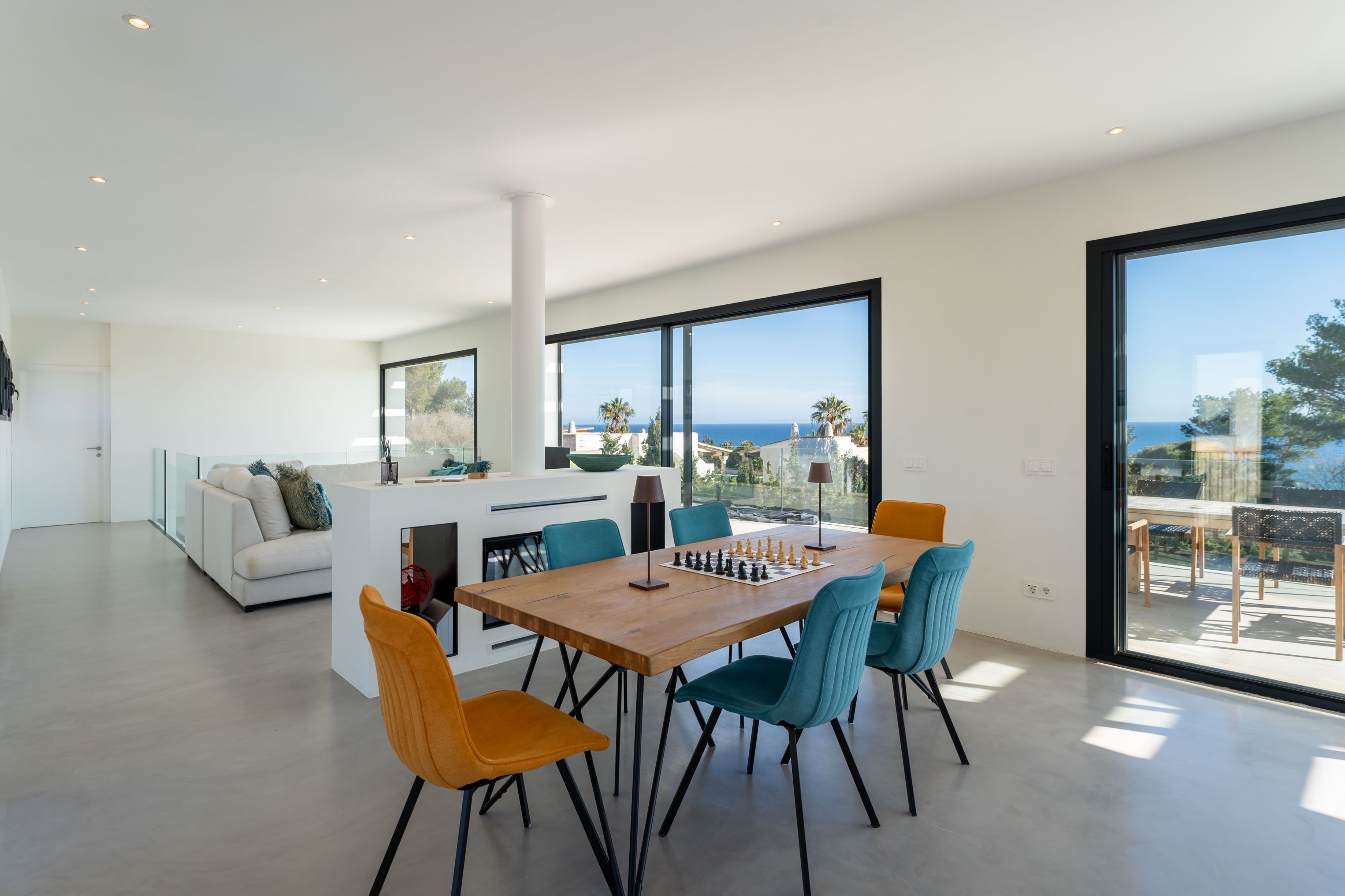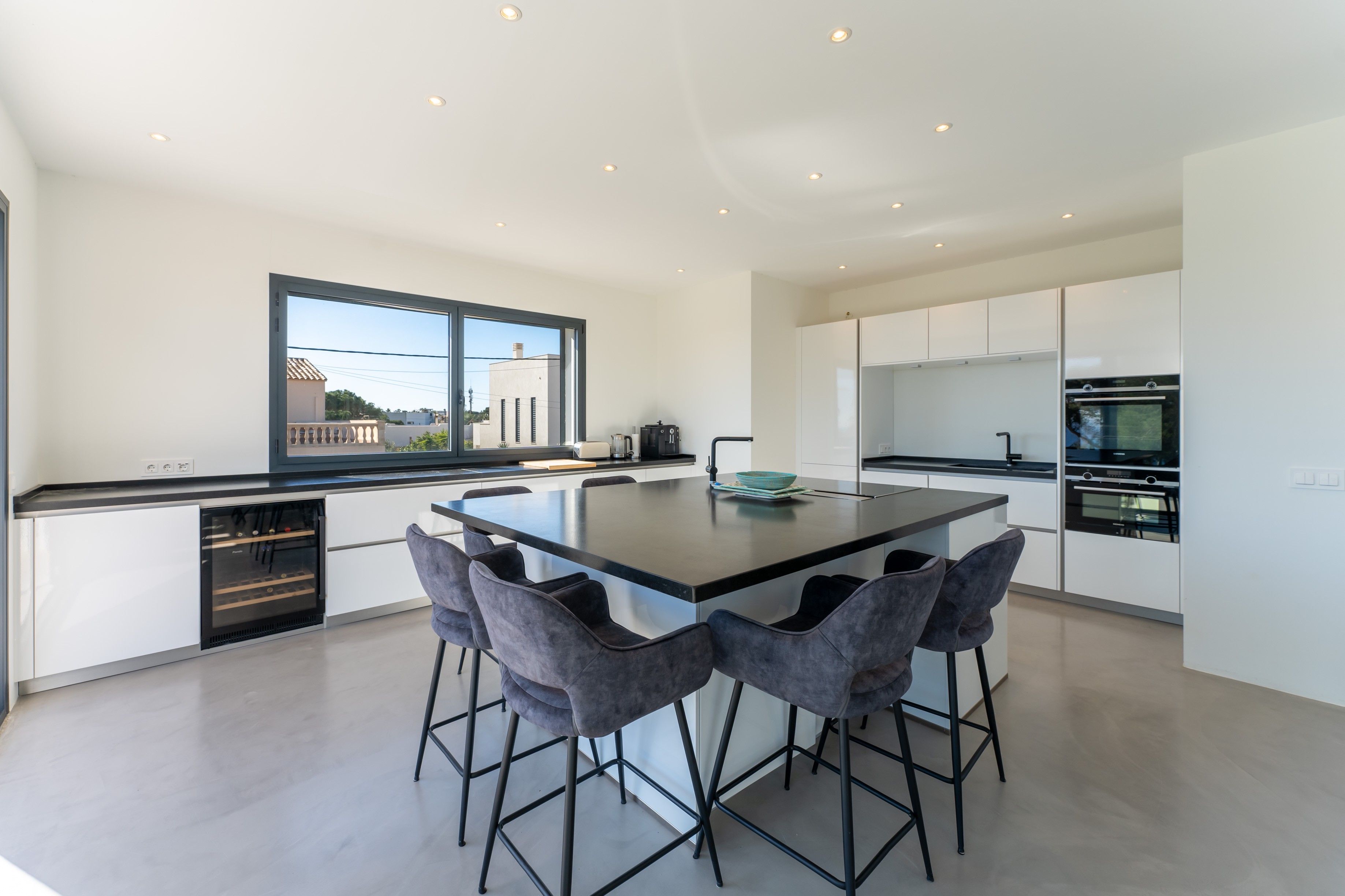Denne moderne villa ligger på en 600 m² stor grund i Cala Llombards, og boligarealet på 280 m² er fordelt på to etager. Vinduer fra gulv til loft og store vinduesfronter lukker masser af naturligt lys ind og åbner op for en imponerende udsigt over havet. Huset ligger i et meget roligt kvarter og har alligevel fremragende forbindelser. Cala Llombards-bugten ligger kun 8 minutters gang væk, mens den maleriske Cala des Moro og S'Almunia kan nås til fods på ca. 25 minutter. Supermarkedet og de to restauranter i Cala Llombards kan nås til fods på 10 minutter. I stueetagen er der tre moderne, lyse soveværelser med eget badeværelse, alle med direkte adgang til haven. Det åbne opholds- og spiseområde med elegant pejs venter på dig på øverste etage. Det tilstødende, veludstyrede køkken med fryser og vinkøleskab giver ikke kun masser af plads, men også direkte adgang til den rummelige balkonterrasse. Det store soveværelse med eget badeværelse ligger også på øverste etage, hvorfra man også har adgang til balkonterrassen. En udvendig trappe fører til tagterrassen med 360° udsigt over det charmerende landskab og havet - det perfekte sted til en sundowner. Der er også solpaneler her, som sikrer en bæredygtig energiforsyning. Haven i middelhavsstil indbyder til afslapning med en 15 meter lang, opvarmet pool og en velplejet græsplæne. En terrasse med grillplads afrunder udendørsområdet. En garage med plads til et køretøj fuldender tilbuddet. Et centralt klimaanlæg og gulvvarme i hele huset sikrer maksimal boligkomfort og behagelige temperaturer året rundt. Denne eksklusive villa kombinerer moderne design med middelhavscharme og tilbyder maksimal boligkomfort på et af de mest eftertragtede steder på Mallorca. Ejendommen vil være tilgængelig igen fra november 2025.