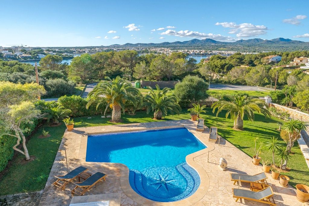 Denne stilfulde villa ligger i den eftertragtede urbanisation Sa Punta i Portocolom, kun 300 meter fra den naturlige strand S'Arenal. Ejendommen blev bygget i 2003 og totalrenoveret i 2021/22. Den tilbyder en vellykket kombination af moderne design og materialer af høj kvalitet. Villaen er fordelt på tre etager. I stueetagen er der en lys stue og spiseplads med udsigt over havnen i Portocolom, et fuldt udstyret køkken, et gæstetoilet og en gæstefløj med to soveværelser, et kontor og et badeværelse. Den store vinduesfront giver adgang til den velholdte have med en rummelig 50 m² saltvandspool og en overdækket terrasse. Den øverste etage, som nås via en moderne trappe, byder på en sauna med afslapningsrum og fantastisk udsigt over havnen og bjergene samt tre soveværelser, to badeværelser med eget bad og et separat badeværelse. Gulvvarme, pejsen i stuen og central aircondition i alle rum sikrer et behageligt opholdsklima hele året rundt. En garage i kælderen med plads til tre køretøjer og direkte adgang til huset afrunder dette eksklusive tilbud.