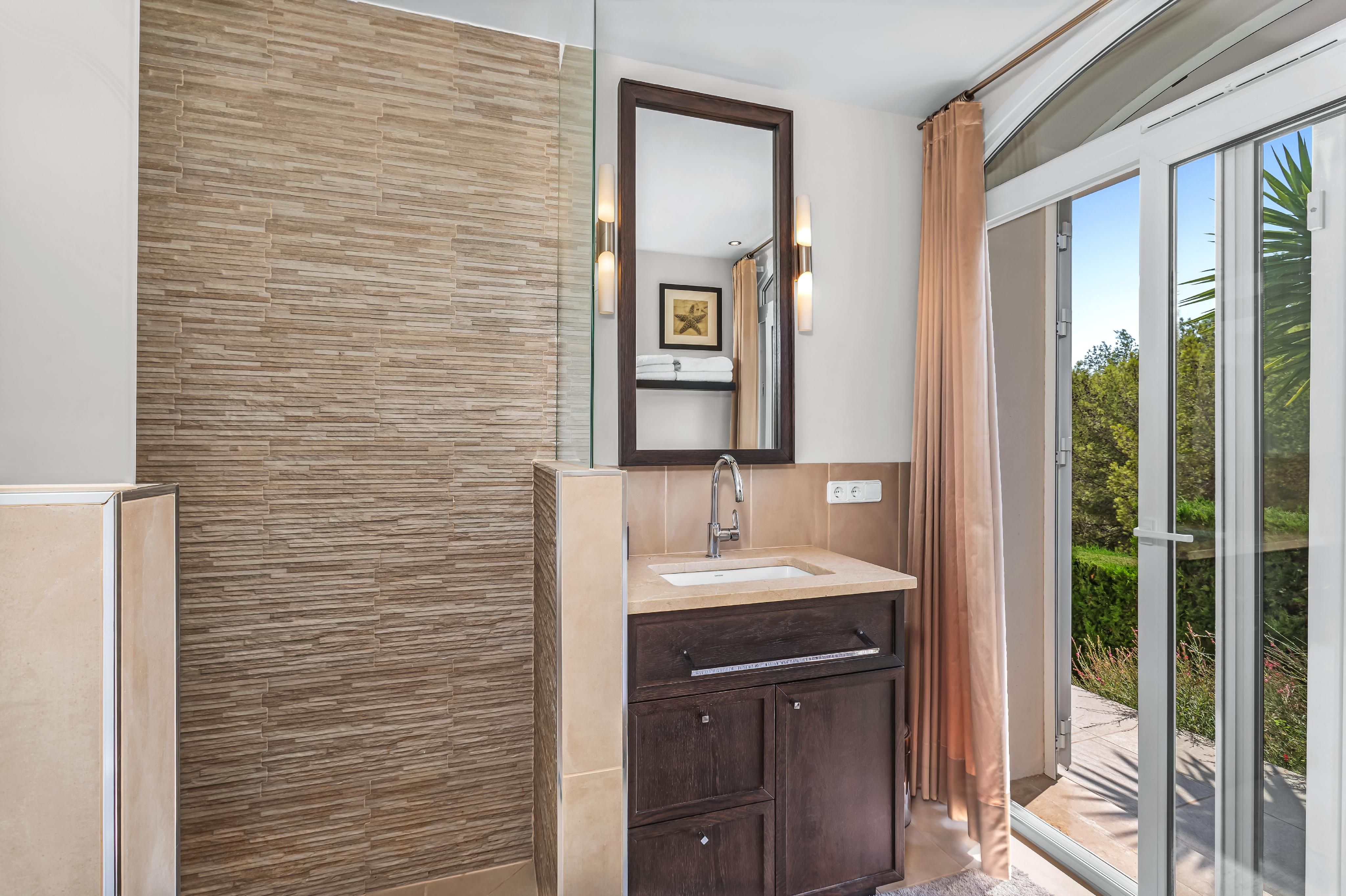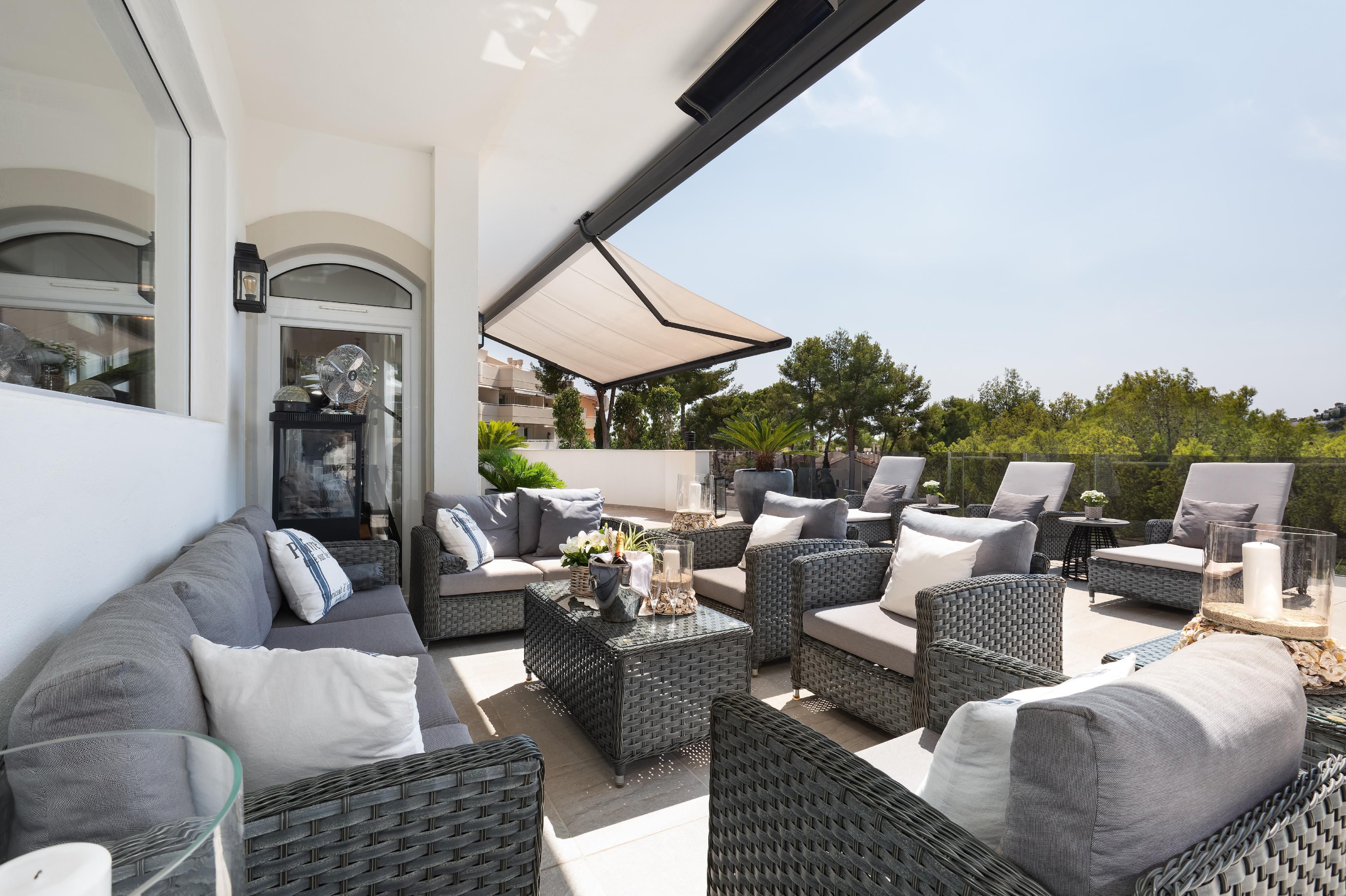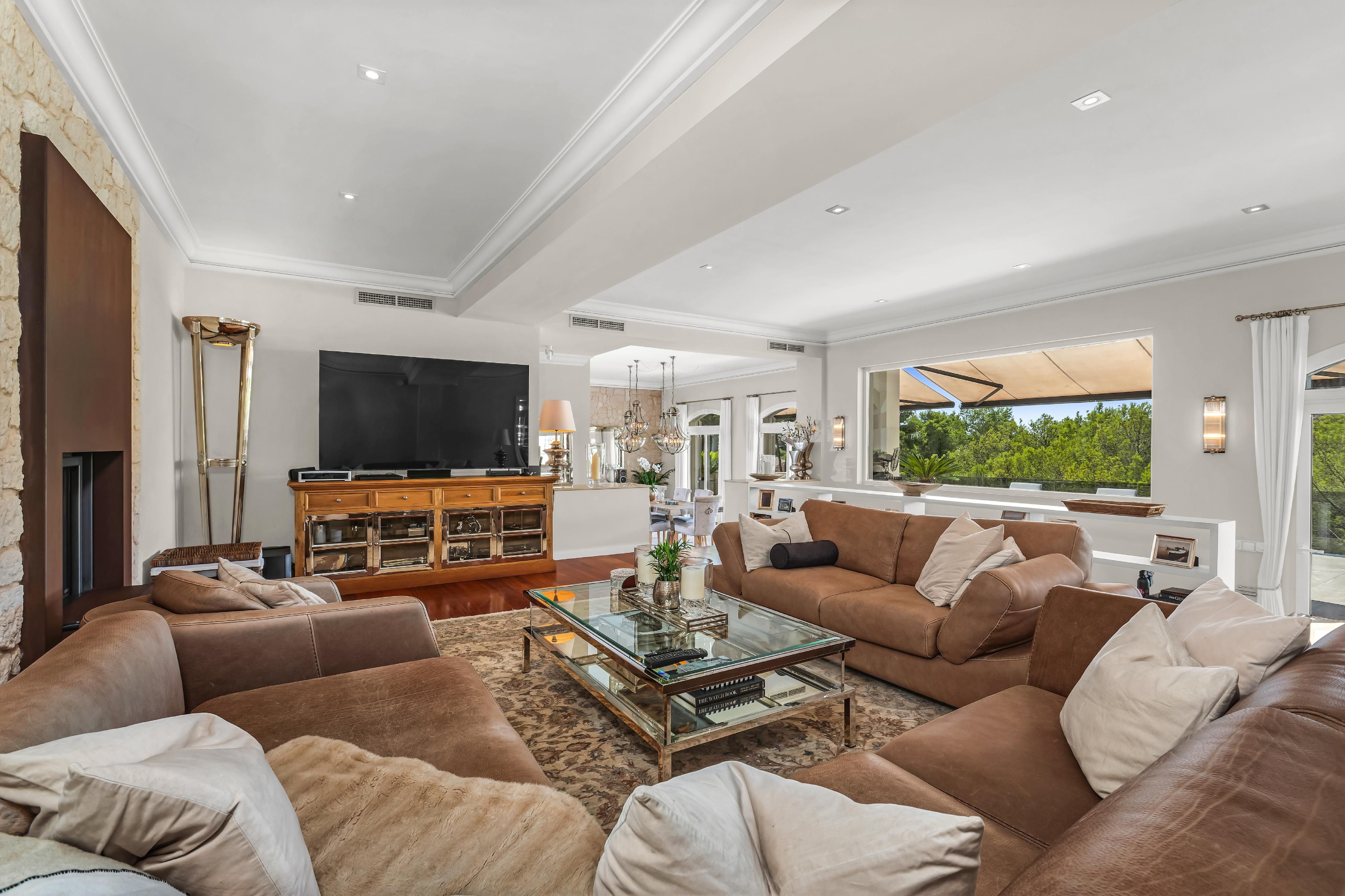 Denne enestående villa i Bendinat kombinerer middelhavscharme med moderne boligkomfort og imponerer med sin unikke beliggenhed direkte på golfbanen. Næsten alle områder har en vidunderlig udsigt over det grønne område, som lover fred og privatliv og straks giver en følelse af eksklusivitet. Den rummelige opholds- og spisestue med elegant pejs udgør husets hjerte og skaber en varm, indbydende atmosfære, der smelter sammen med det fuldt udstyrede køkken. Brede glaspartier lukker masser af lys ind og åbner op for udsigten til den store terrasse, som med det tilstødende poolområde bliver centrum for middelhavslivet - et sted, hvor sol, afslapning og hygge går op i en højere enhed. På husets nederste etage er der fire stilfulde soveværelser, hvert med eget badeværelse, som giver masser af plads til at trække sig tilbage og være privat. En elevator giver bekvem og barrierefri adgang fra indgangsniveauet til alle etager. Topmoderne faciliteter som gulvvarme, varm/kold aircondition og et bæredygtigt solsystem til varmt vand og elektricitet gør villaen til det ideelle hjem hele året rundt. Til køretøjer er der en garage til 2 biler, en carport til 2 biler og yderligere private parkeringspladser inden for ejendommen, så komfort og sikkerhed også er garanteret her. Et hjem, der ikke kun imponerer med sin arkitektur, men frem for alt med sin placering - direkte på Bendinat golfbane, indlejret i naturen, med unik udsigt og maksimal privatliv.