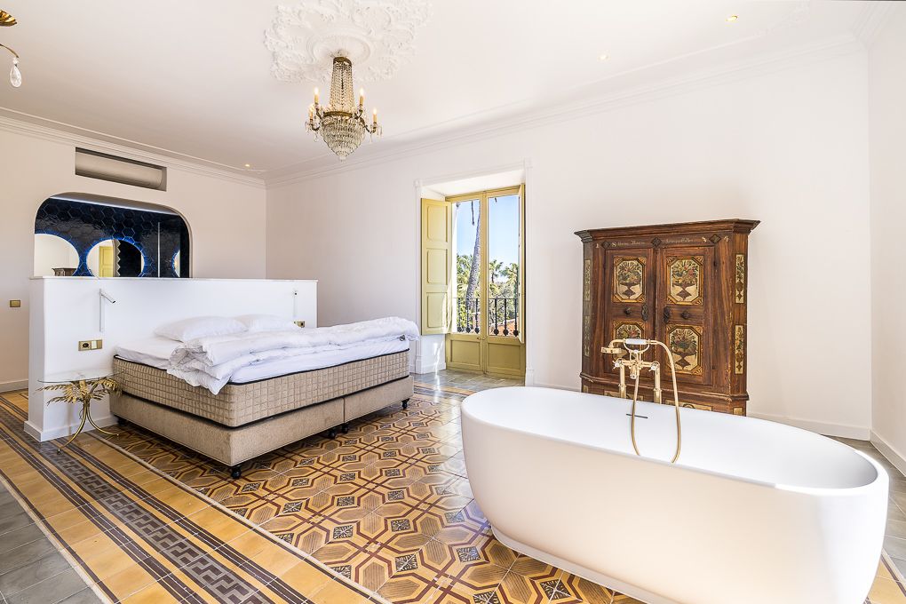 Den statelige ejendom fra det 19. århundrede er stort set bevaret i sin oprindelige tilstand. Ejendommen imponerer med sine kunstfærdige vægmalerier, en imponerende trappe og de fuldt bevarede gulve i mange rum. Huset er fordelt på tre etager og har mange værelser og åbne rum samt en bodega i kælderen. Huset er blevet moderniseret og gennemgribende renoveret, samtidig med at de originale elementer er bevaret og tilpasset behovene i nutidens sofistikerede livsstil. Alle 6 soveværelser har rummelige en-suite badeværelser og indbyggede skabe, nogle har adgang til terrasser, og det ene har også en stue med et lille tekøkken. Midtpunktet er det lyse Gaggenau-køkken med alle elektriske apparater og et 5 m langt spisebord. Der er selvfølgelig også en hyggelig stue med pejs. Alle værelser er udstyret med aircondition og varme, og køkkenet og badeværelserne har endda gulvvarme. I haven/terrasseområdet er der en smuk pool med vandfald og jacuzzi samt store liggestole, loungeområder og en spiseplads med grillkøkken. Denne enestående ejendom lader intet tilbage at ønske og imponerer med alle sine detaljer.