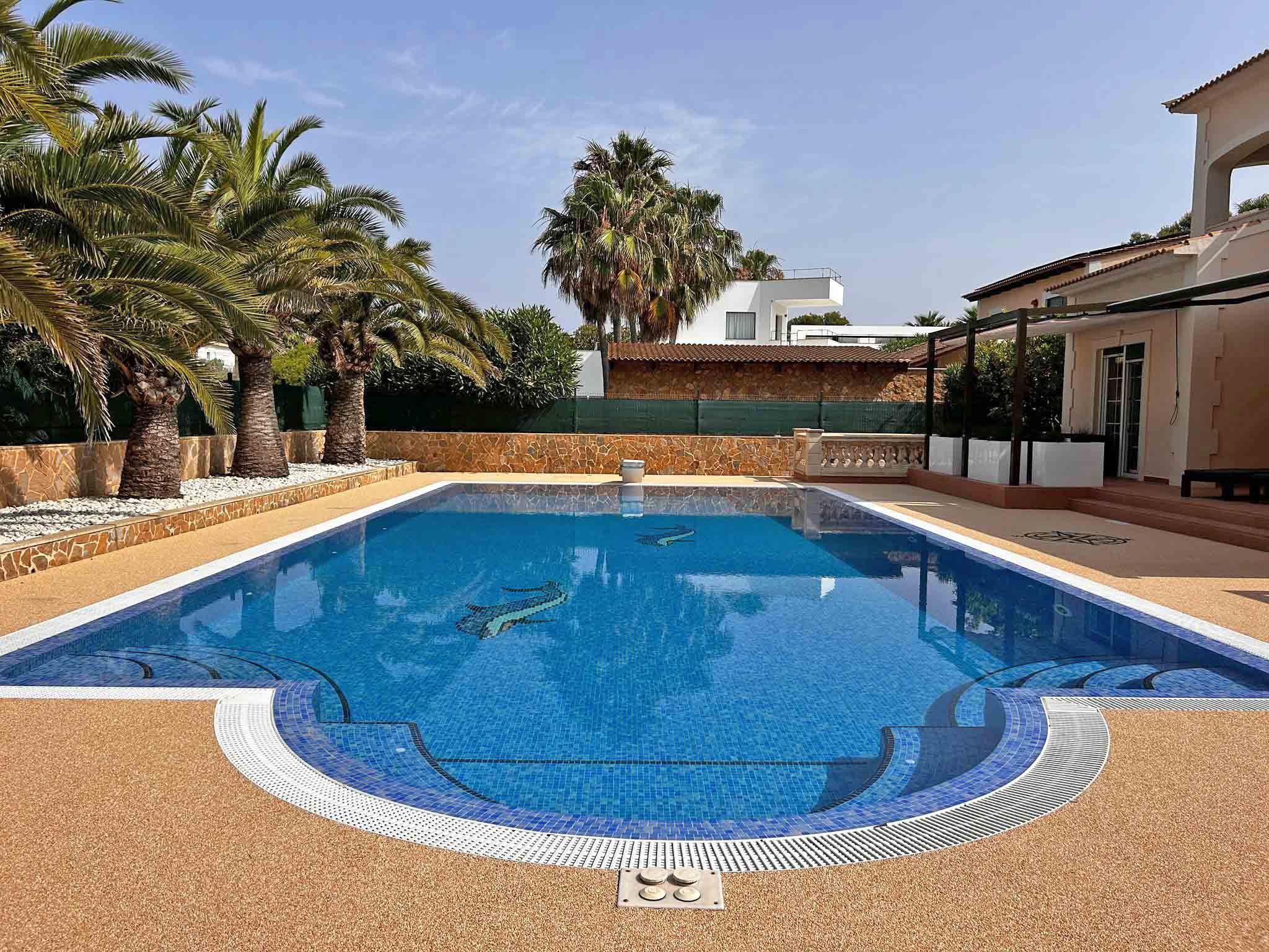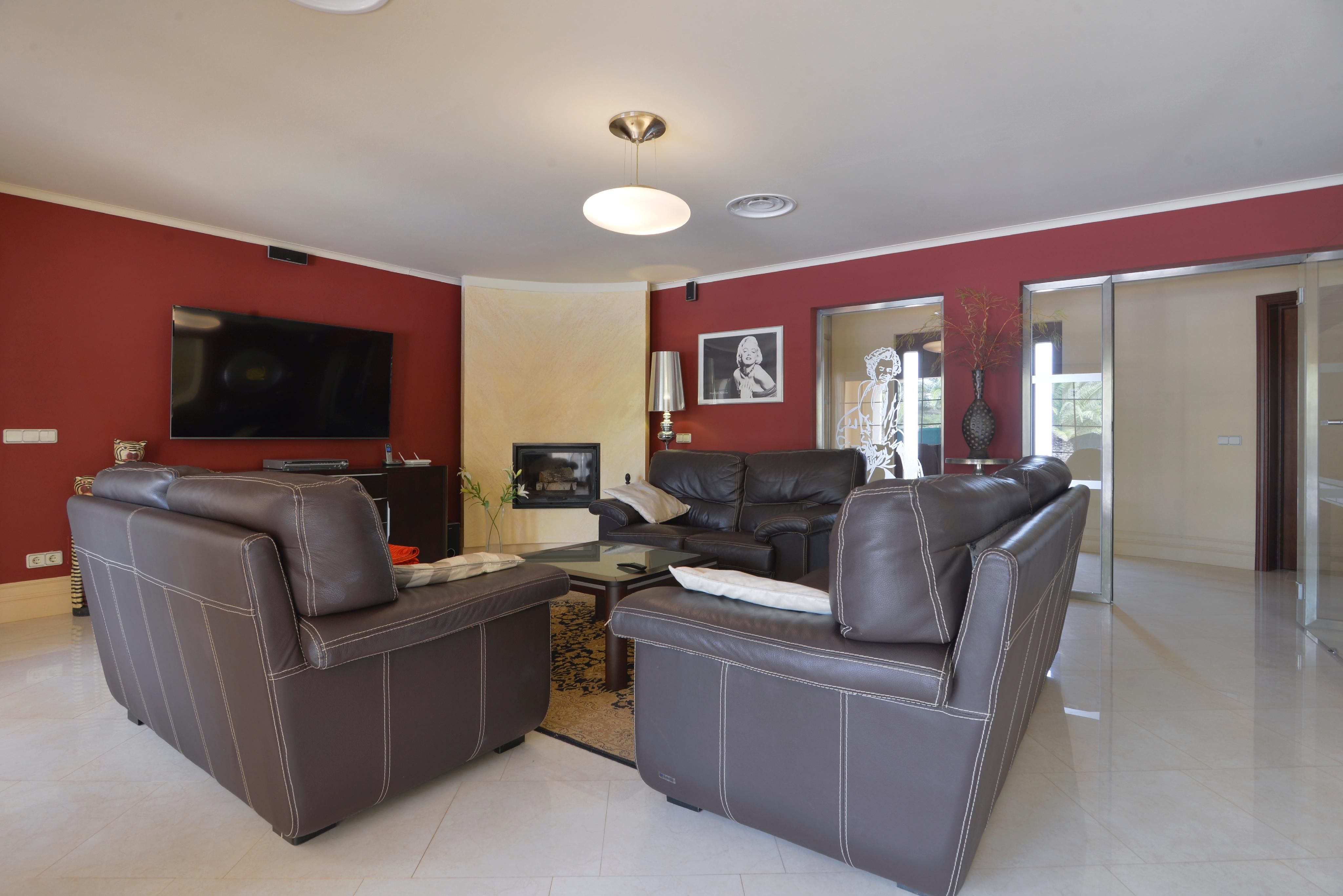 Denne villa ligger på anden havlinje i Cala Pi og imponerer med sin arkitektur. Huset har fem store soveværelser med tre badeværelser in suite samt et gæstetoilet. Der er adgang til første sal via en særlig trappe med glastrin. Huset består af fem soveværelser og fire badeværelser. I stueetagen ligger det moderne, åbne køkken, stuen og to soveværelser, og fra tagterrassen har man en smuk udsigt over havet. Udenfor er der et grillområde ved siden af saltvandspoolen på 12x6 meter. Huset er isoleret med et canadisk system. Andre funktioner: kanaliseret klimaanlæg, garage, alarmsystem, jacuzzi, pejs, automatisk vandingssystem.