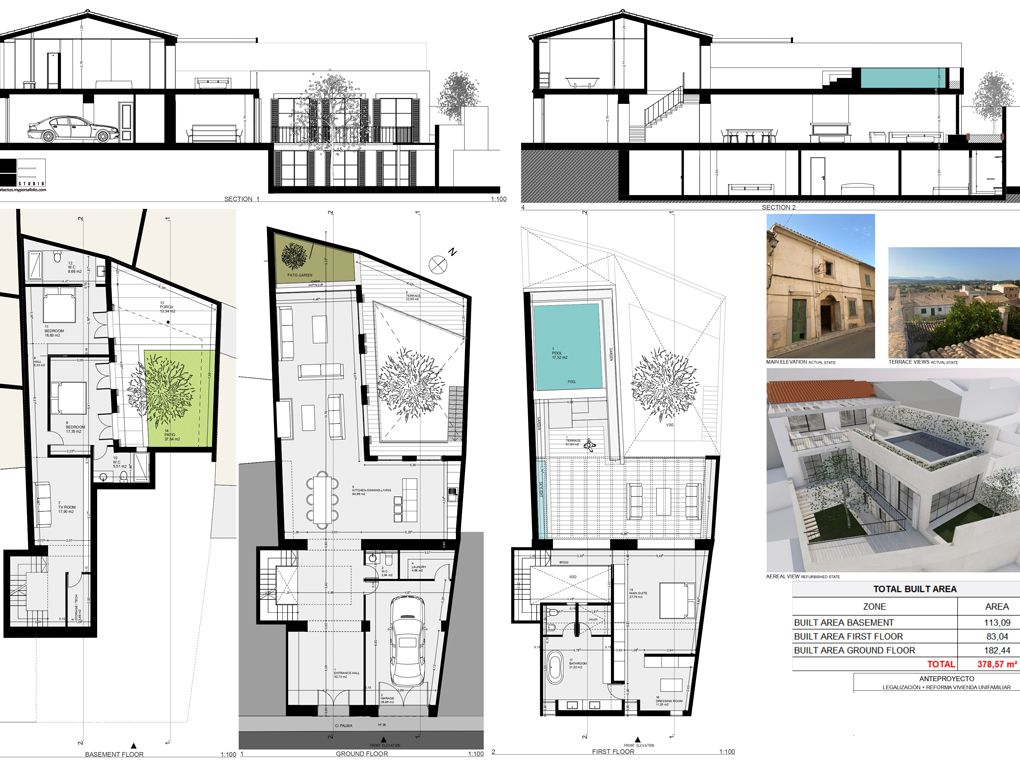 Denne ejendom med et godt projekt ligger i den smukke landsby Montuiri og har en central beliggenhed, ikke langt fra restauranter og butikker. Det historiske hus kan renoveres af den nye ejer. Fordelingen af projektet er på tre etager og tilbyder et samlet konstrueret areal på ca. 378 m². I stueetagen finder man en flot entré, et stort og lyst opholds- og spiseområde med et åbent køkken samt en garage til praktisk parkering. Fra stuen og køkkenet er der en smuk udsigt til terrassen. Kælderen er gennemstrømmet af naturligt lys takket være de store vinduer, og den består af to soveværelser med eget badeværelse samt en tv-stue, hvor man kan slappe af. På første sal ligger mastersuiten på ca. 83 m², der tilbyder et stort soveværelse med eget badeværelse, et påklædningsværelse og adgang til den generøse terrasse med sin pool på ca. 17 m² med åben udsigt til landsbyen og de grønne omgivelser.