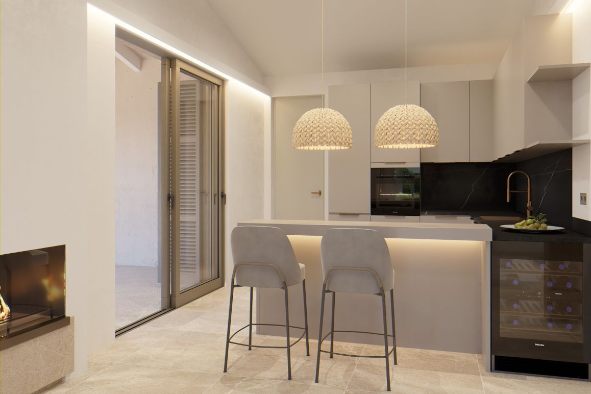 Finca Solana er den mest rummelige finca i komplekset og et udtryk for arkitektur, der harmonerer med rum, lys og natur. Den er tegnet af en anerkendt arkitekt, som er meget kendt på Mallorca, og hans signatur er tydelig i de detaljerede naturstensvægge, de klare linjer og den harmoniske integration af huset i det omgivende landskab. Den rummelige, overdækkede terrasse med integreret udekøkken udgør fincaens midtpunkt og skaber flydende overgange mellem inde- og uderum. Indenfor bidrager mos og naturlige vægge til et behageligt, sundt indeklima og forstærker følelsen af ro og naturlighed. Solvarmepumpe, emissionsfri teknologi, saltvandspool og skræddersyede naturstensvægge står for bæredygtig boligkomfort på højeste niveau. Et køkken af høj kvalitet med Miele-apparater samt sikkerhedsfunktioner som en elektrisk port, alarmsystem og stilfuld udvendig belysning gør Finca Solana til et sted, hvor fællesskab, kvalitet og en bevidst livsstil går op i en højere enhed. Harmony Living leves her hver dag.