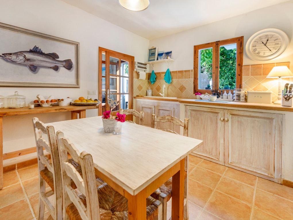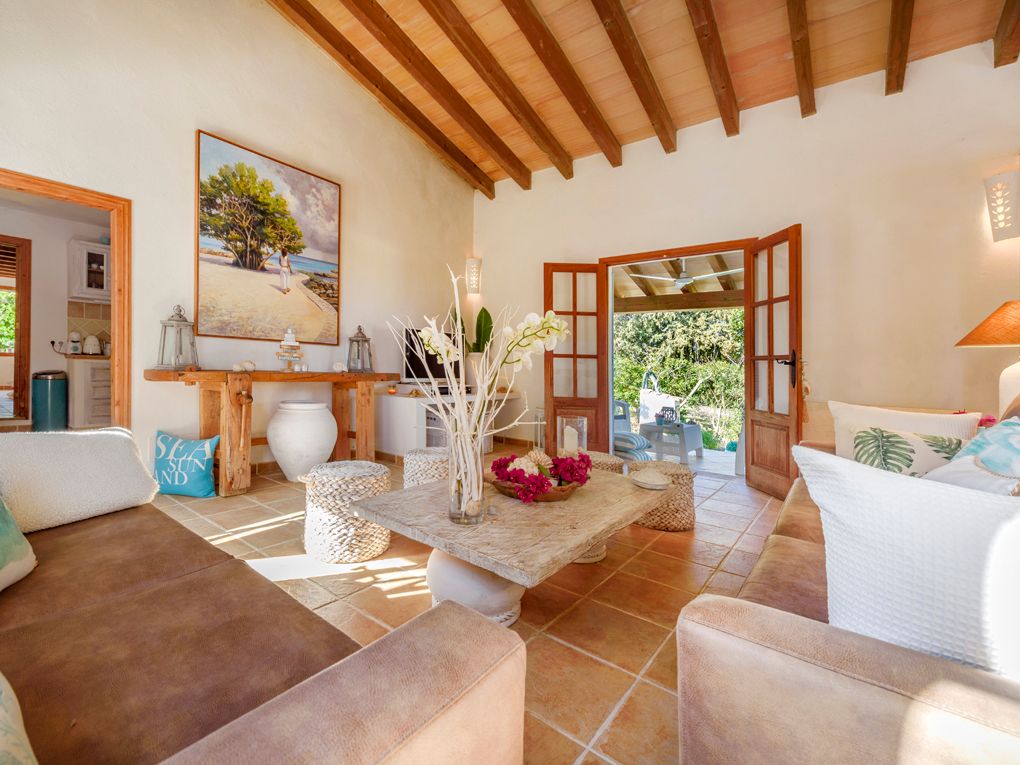 Meget pænt præsenteret og i fremragende stand, et vidunderligt, indbydende landsted til salg lige uden for Pollensa by. Indretningen i stueetagen omfatter entré, stue, tv-stue, separat spisestue, et køkken i familiestørrelse, der åbner ud til gårdspladsen, bryggers, et lyst og luftigt soveværelse med dobbeltseng med direkte adgang til haven, et stort badeværelse og en gæstebruser. Næsten alle værelser i stueetagen har udgang til de udvendige områder, som omfatter gårdspladsen foran huset, hyggelige haver med citrus- og mandeltræer og en stor veranda med plads til at slappe af, og som er perfekt til sommerspisning, plus parkering uden for vejen samt en separat garage.