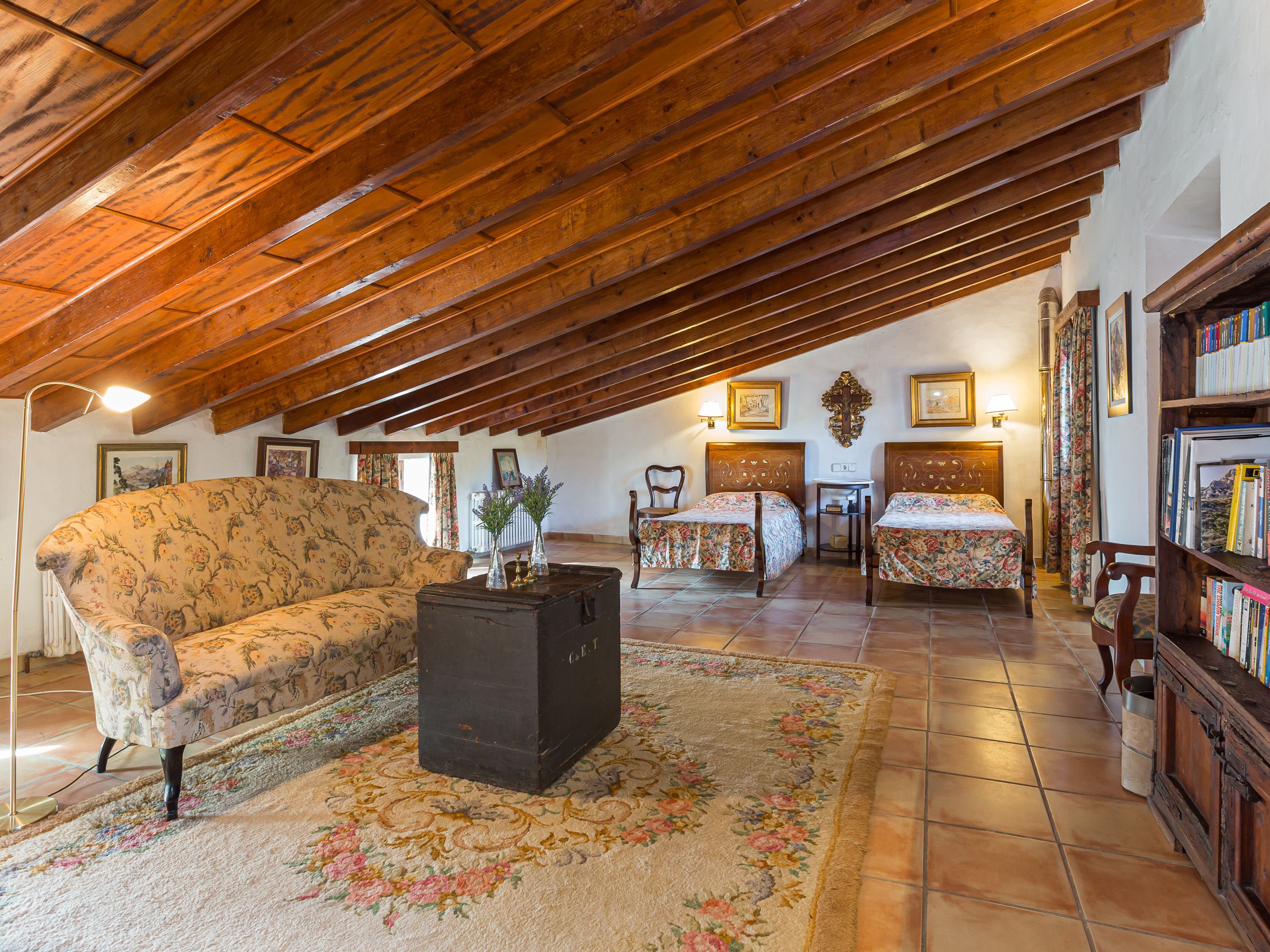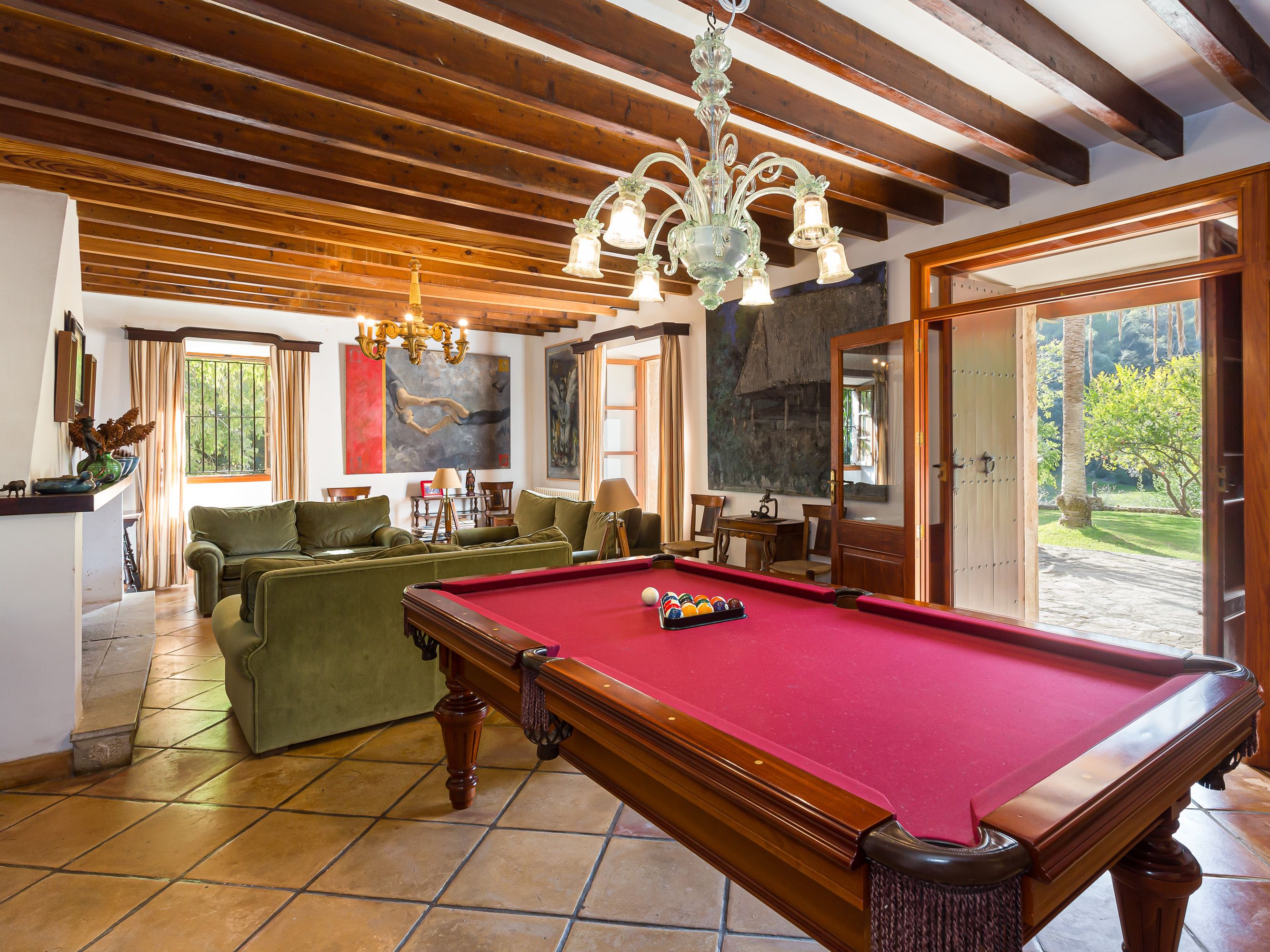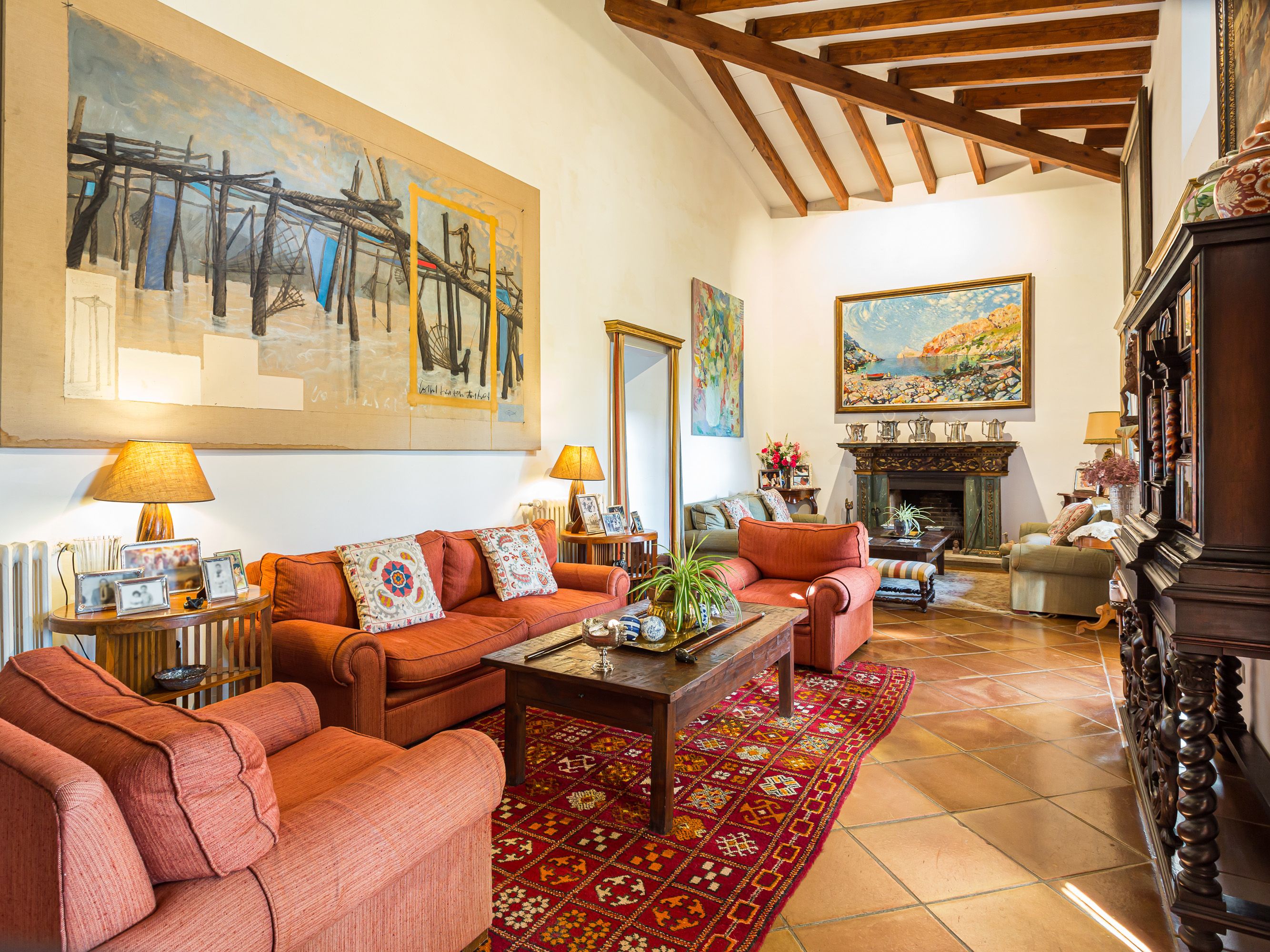 I Establiments, kun få minutters kørsel fra Palma centrum, ligger denne historiske herregård. Ejendommen blev bygget i det 16. århundrede og er omgivet af natur på grund af sin fantastiske beliggenhed i udkanten af Palma. En lang privat indkørsel langs gamle træer fører dig til denne fabelagtige herregård, der tilbyder 1200m2 boligareal og en samlet grund på 180.000m2, helt indhegnet. Ejendommen er fordelt på 2 niveauer og tilbyder i alt 7 soveværelser og 6 badeværelser, en spisestue, et fuldt udstyret køkken, opbevaringsrum, en vingård og forskellige stuer med skorsten og et hyggeligt bibliotek, alt sammen med træbjælker, der giver huset en særlig flair. Ejendommen er omgivet af skov, masser af frodig jord med frugttræer, garrobotræer, oliventræer, palmer, gamle cypresser og smukke haver, hvor man kan gå og slappe af, alt sammen med en masse privatliv og ro. Herregården med en stengård og en antik vandbrønd i midten tager dig tilbage i tiden. Der er flere terrasser udenfor, både overdækkede og uoverdækkede, hvor man kan følge solen eller skyggen og nyde naturen, og en moderne, 20 m lang saltvandspool, hvor man kan tage en svømmetur på varme sommerdage. Der er også en antik oliemølle med potentiale til at blive restaureret.