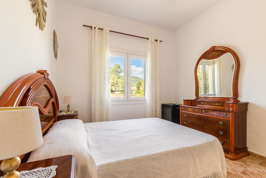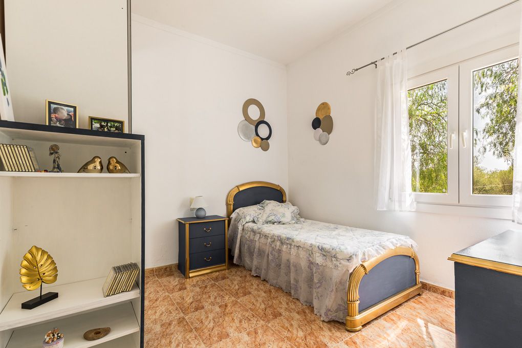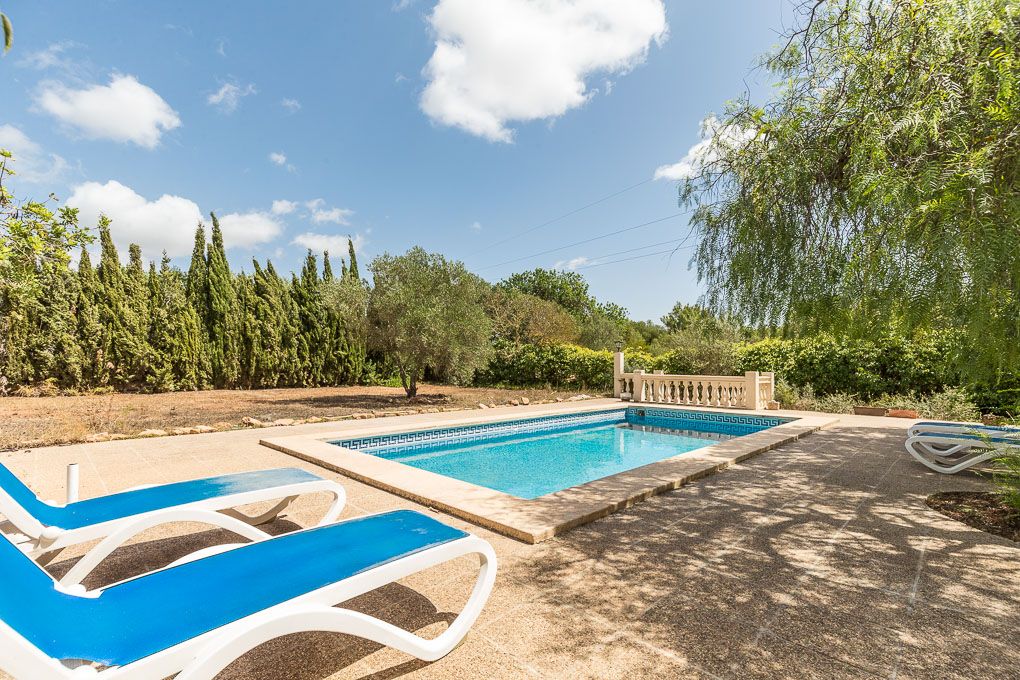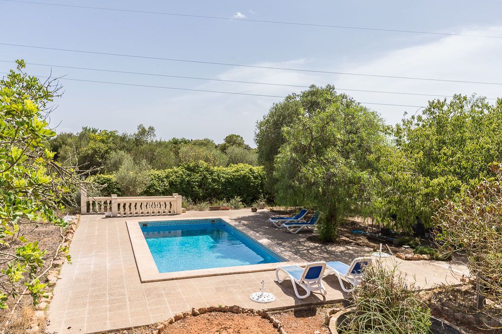 Denne hyggelige finca ligger i udkanten af Llucmajor, et par minutter fra byen, og nyder absolut privatliv. Jorden er opdelt i to dele, den ene til huset, poolen og haven og den anden mere jomfruelig, og ejendommen er helt indhegnet. Huset er fordelt på tre soveværelser, to badeværelser, køkken og stue. Det blev bygget i 2003, men er blevet moderniseret for nylig med et nyt køkken og dobbeltvinduer. Huset har indlagt elektricitet og vand fra en fælles brønd.