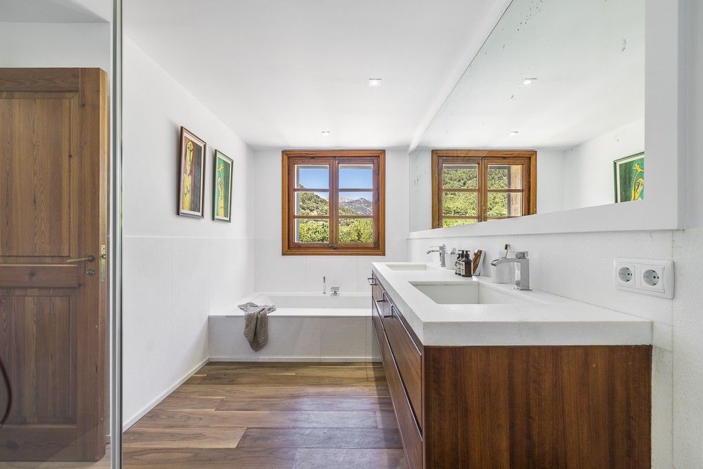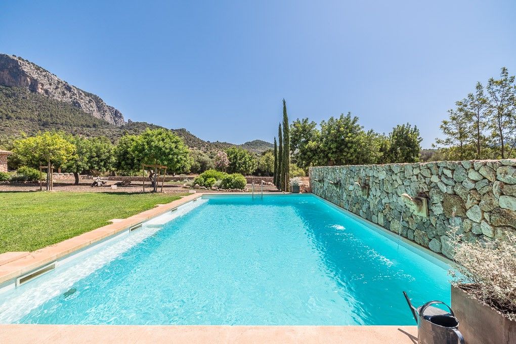 Denne eksklusive ejendom ligger i hjertet af Tramuntana-bjergene og tilbyder en fantastisk udsigt og fuldstændig privatliv, mindre end ti minutter fra den livlige landsby Alaró, der er kendt for sin livlige atmosfære og fremragende forbindelser til Palma og lufthavnen.