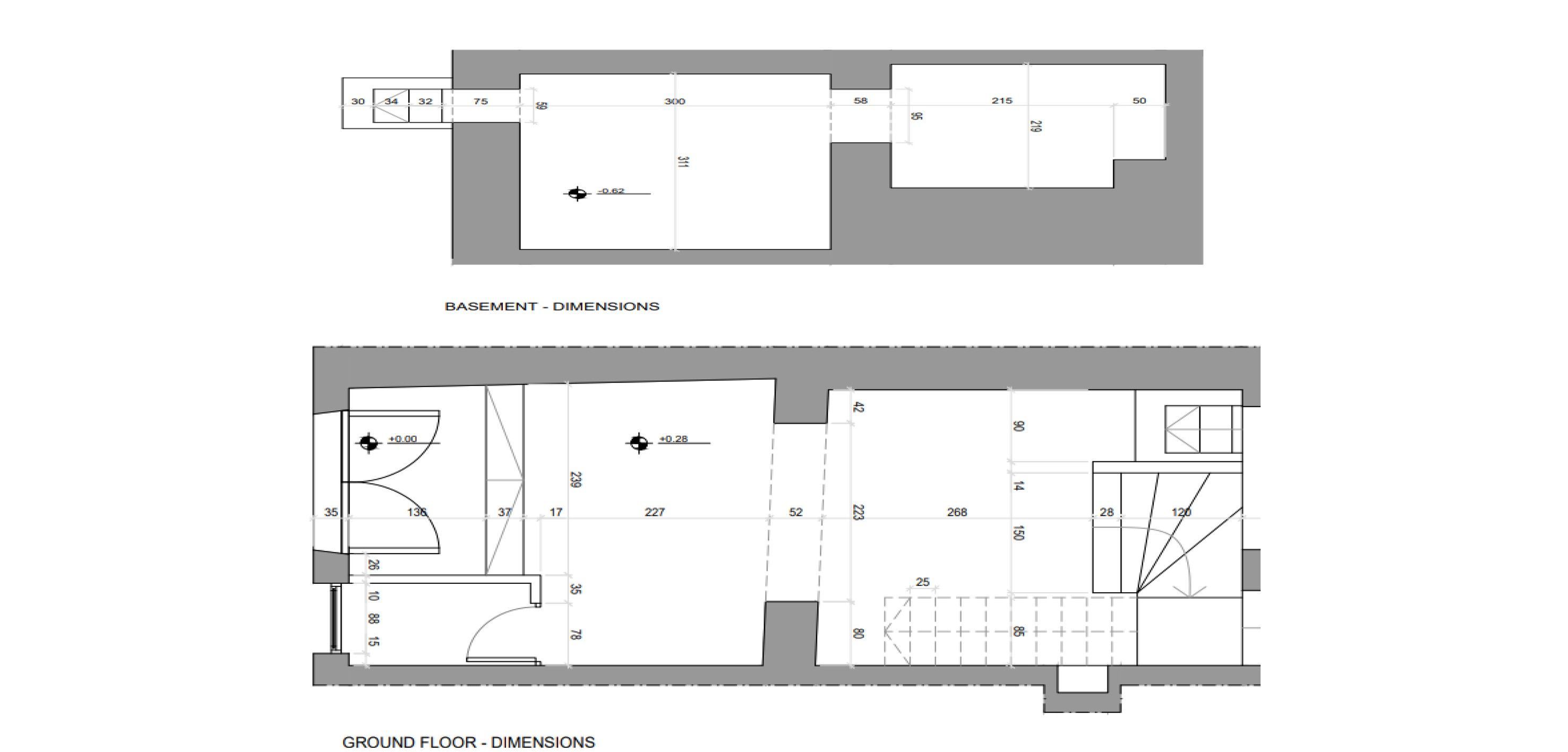 kælderen og gennem en lille trappe til