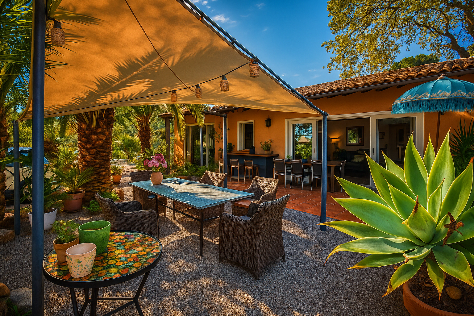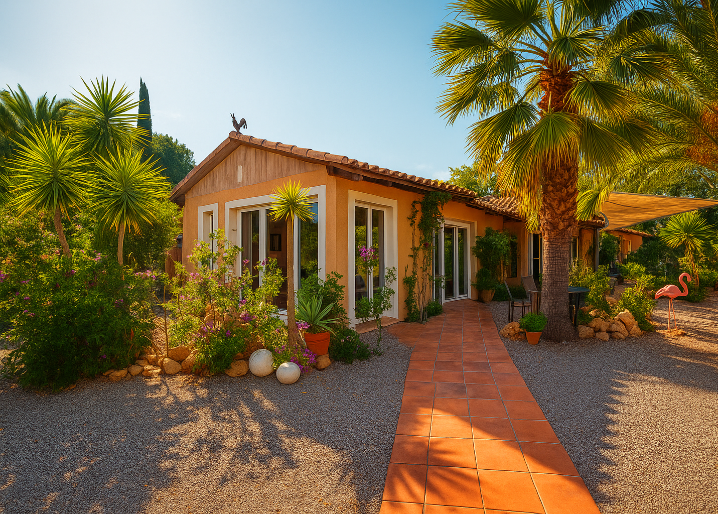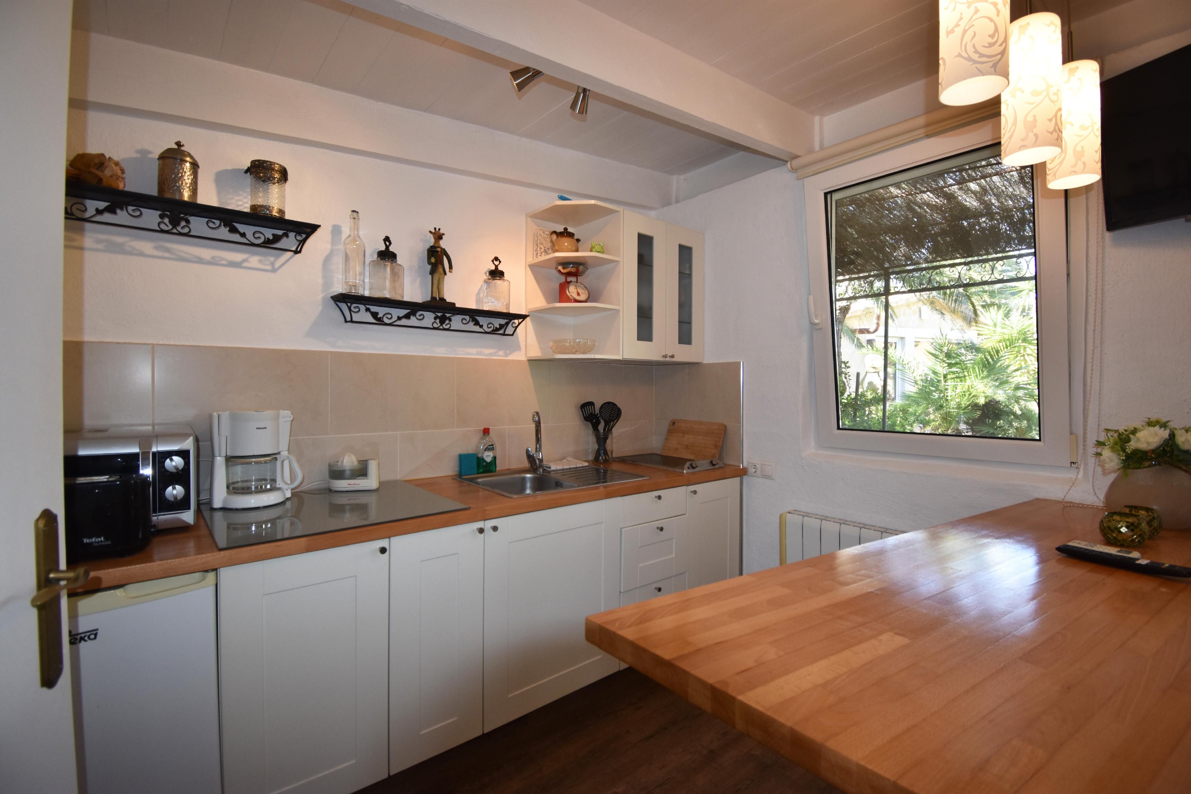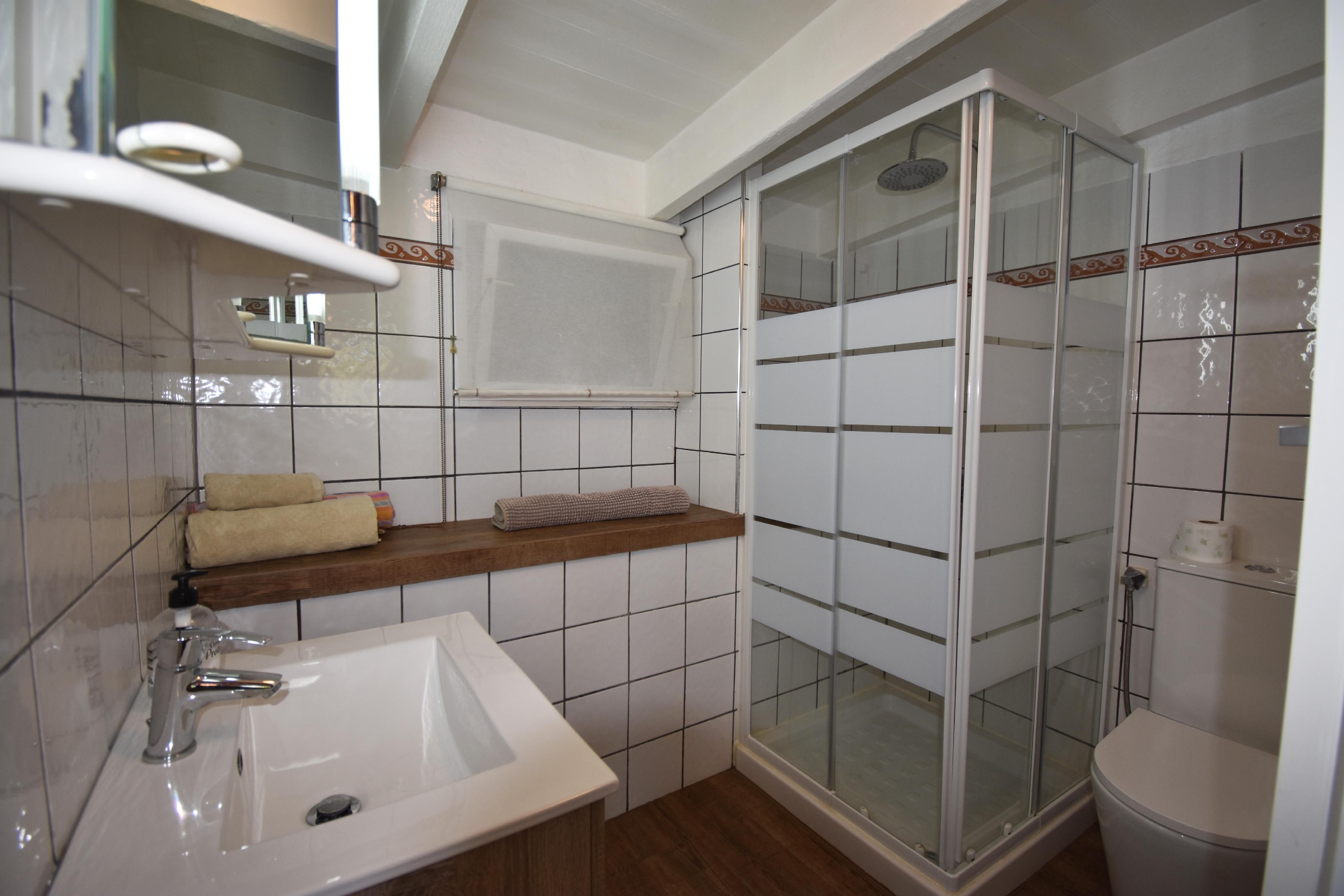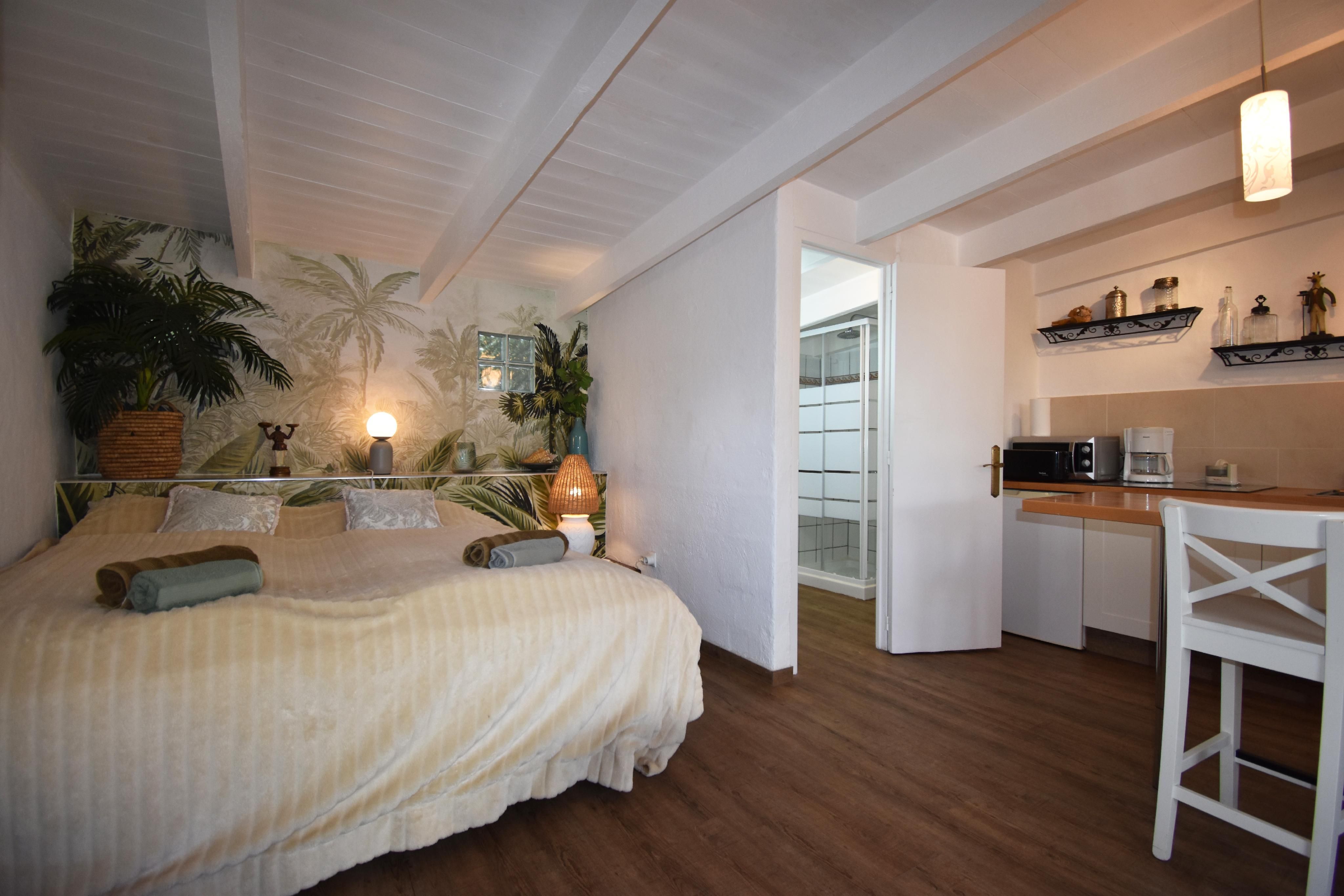 Både hovedhuset og gæstelejlighederne er udstyret med centralvarme og aircondition, hvilket sikrer en behagelig temperatur året rundt. Hver enhed har sin egen terrasse, der er omgivet af frodige planter, træer, hække og buske, som giver privatliv og skaber en fredelig atmosfære. Disse terrasser er ideelle til afslappende stunder i din egen personlige oase.