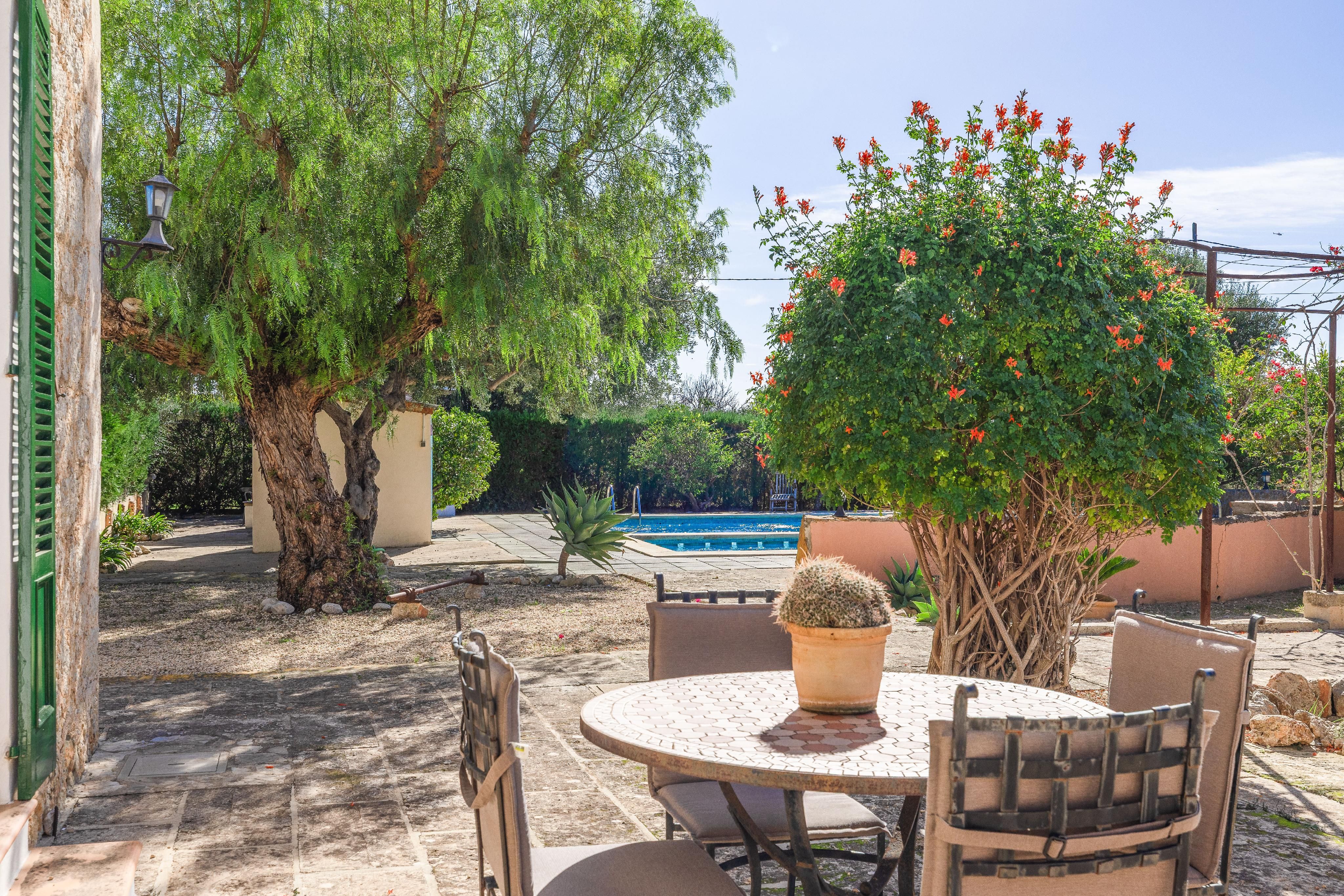 Denne finca er som at vinde i lotteriet. Den ligger lige ved bygrænsen til Inca, så der er gode forbindelser, og det er muligt at gå ind til landsbyens centrum. Samtidig udstråler den charmen ved et klassisk landsted: total ro og privatliv, en rummelig grund med oliven- og palmetræer og en pool midt i den smukke have.