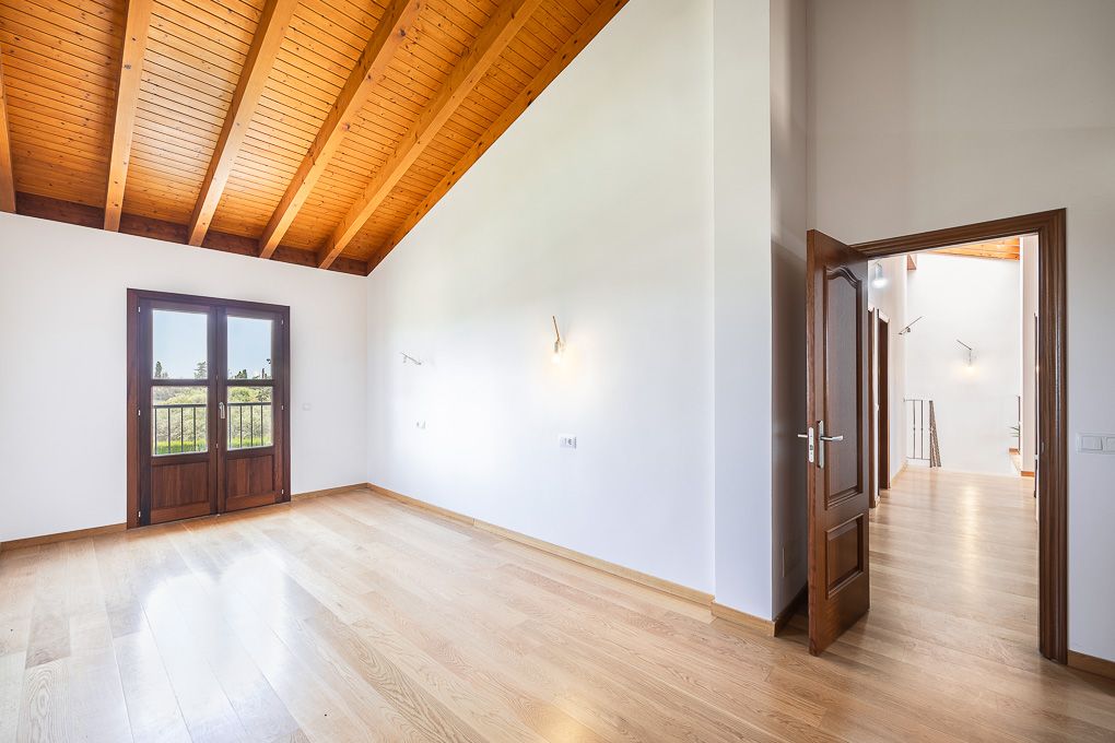 Fincaen, der blev bygget i 2010 med de bedste materialer, ligger på en 15.300 m2 stor grund omgivet af mange oliventræer, som i øjeblikket bruges til egen produktion af olie. Besøgende kommer ind på ejendommen gennem en stor gårdsplads, der forbinder huset med landbrugslageret. Hele hovedhuset har flere vinduer i alle rum, hvilket giver masser af lys hele dagen. I underetagen er der et generøst opholds- og spiseområde med direkte adgang til den smukke terrasse, et soveværelse, et lille kontor, et badeværelse og køkkenet med eget opbevaringsrum. På øverste etage er der et atelier og yderligere tre soveværelser. To af dem deler et badeværelse, og det store soveværelse har eget badeværelse en suite og et påklædningsværelse.