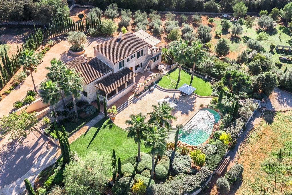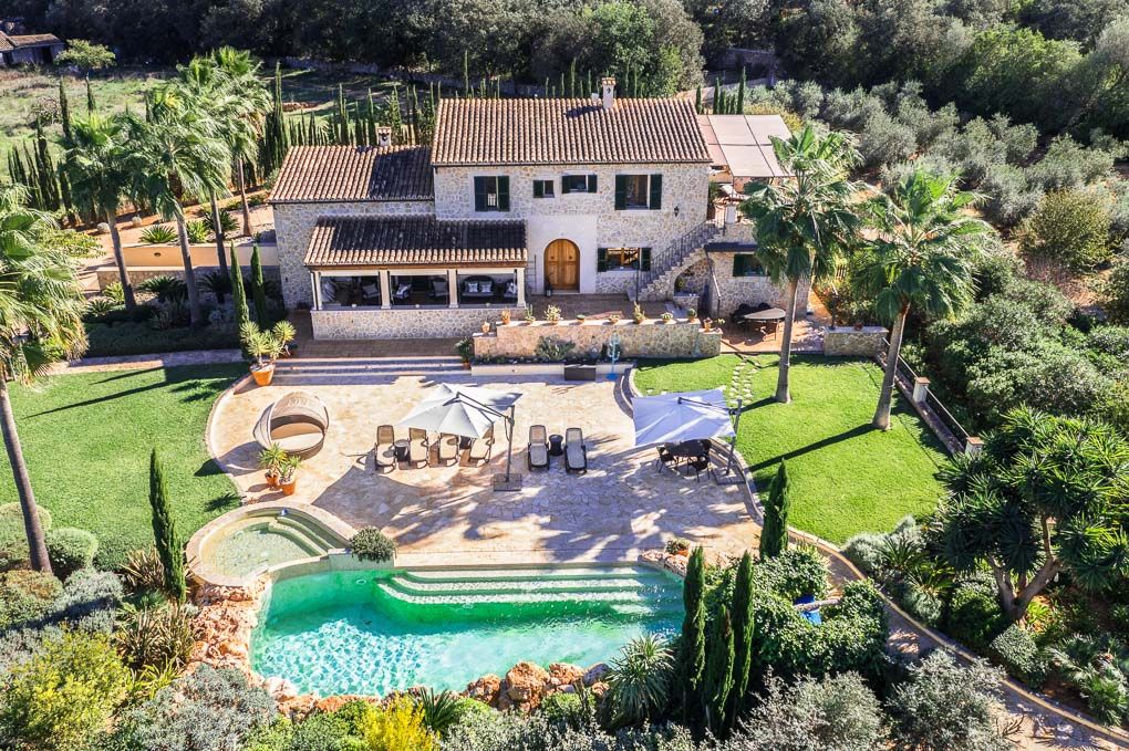 Ejerne byggede dette solide hus i 2014, hvor de bevarede den mallorcinske stil og kombinerede den med moderne komfort. Det byder på en dejlig udsigt til Tramuntana-bjergene og privatliv i den grønne og frodige have med egne vinmarker. Landstedet har ca. 240 m2 boligareal fordelt på to etager med følgende: en rummelig stue/spisestue med åbent køkken, to saloner med brændeovne, fire soveværelser, fire badeværelser, to gæstetoiletter.
