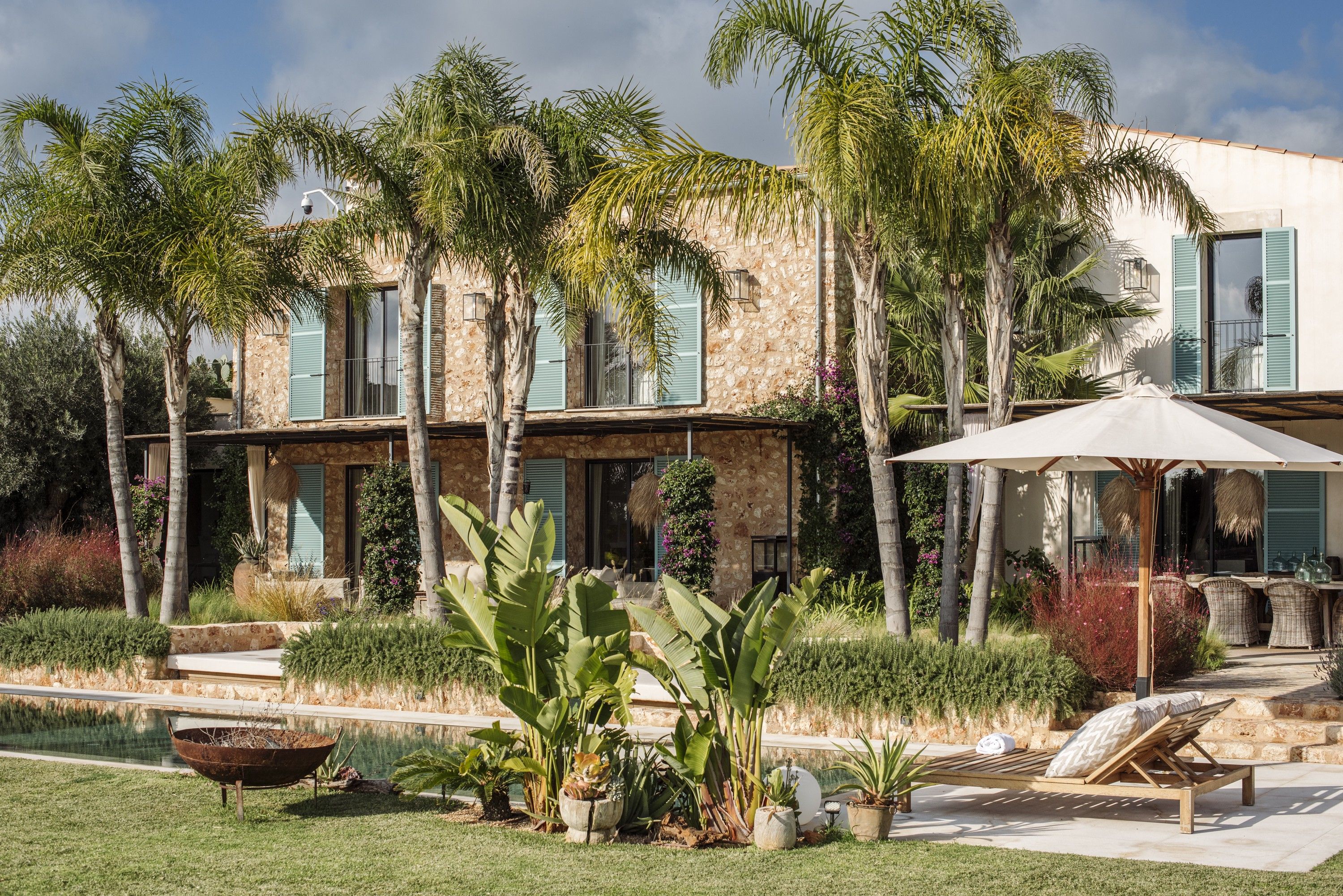 Den omhyggeligt anlagte have, der er designet af en af Mallorcas førende landskabsarkitekter, indbyder til afslapning og ro. Med middelhavs- og tropiske planter, frugt- og grøntsagshaver, skjulte siddepladser, bålsteder og vandelementer er det en sand oase af ro. De enestående udendørs faciliteter omfatter en privat golfbane på 10.000 m² (4 greens, 16 tees, 8 bunkers, en driving range og tee-markører i træ), en opvarmet pool (12,5 m x 3,5 m), en bocciabane, en legeplads og rigelig gæsteparkering.