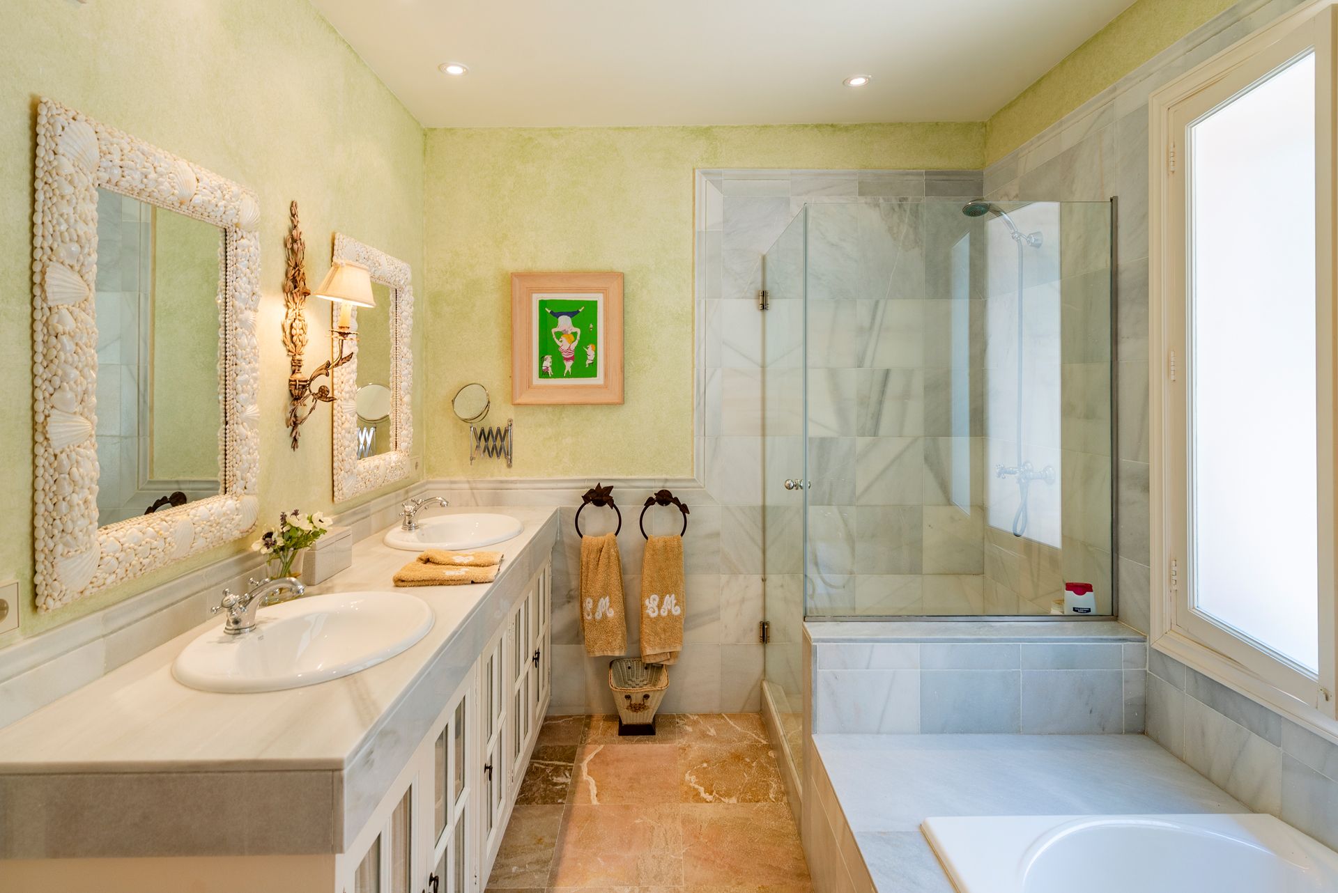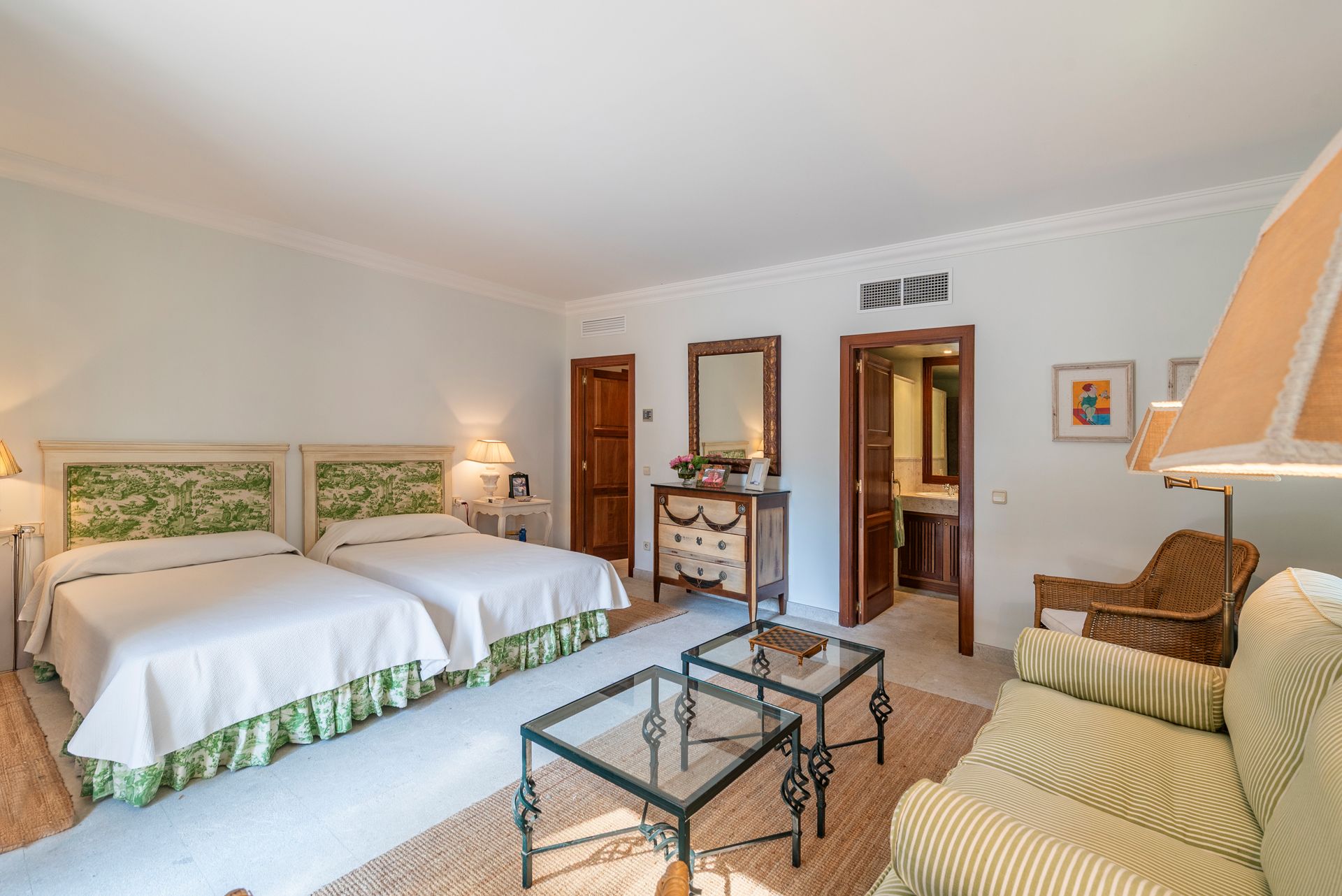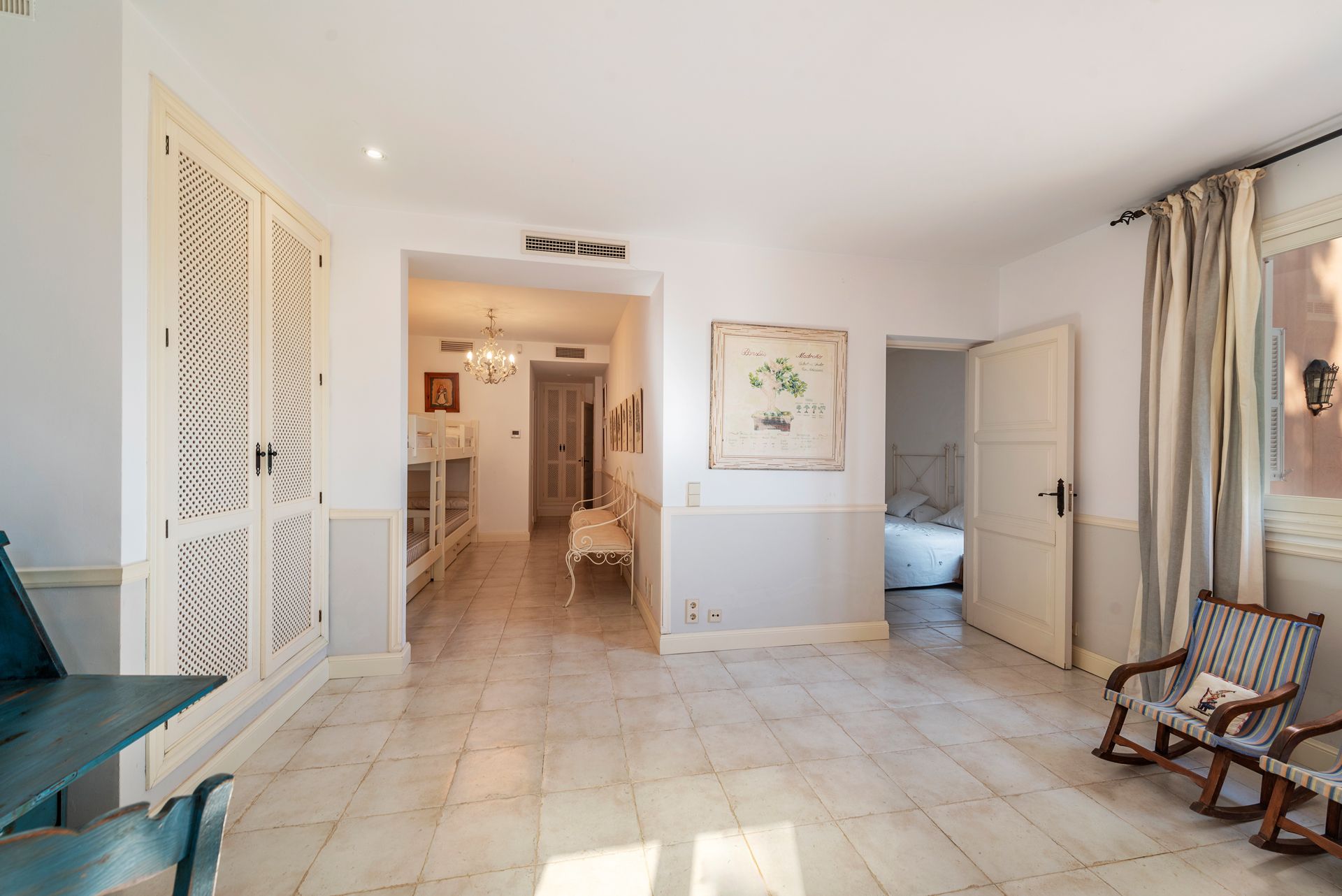 Den øverste etage imponerer med en rummelig master suite, en elegant opholdsstue, en klassisk spisestue og et fuldt udstyret køkken. Et separat tjenerværelse med badeværelse og flere fantastiske terrasser - delvist overdækkede og med lounge- og spiseområder - gør dette niveau til et ideelt tilflugtssted til daglig brug.