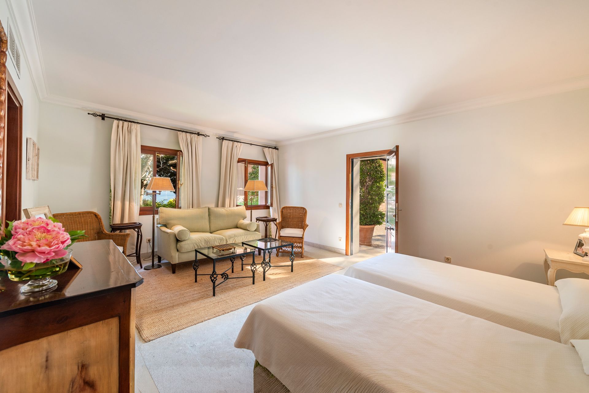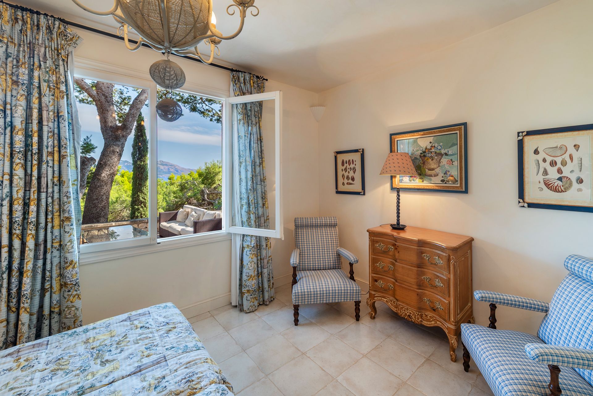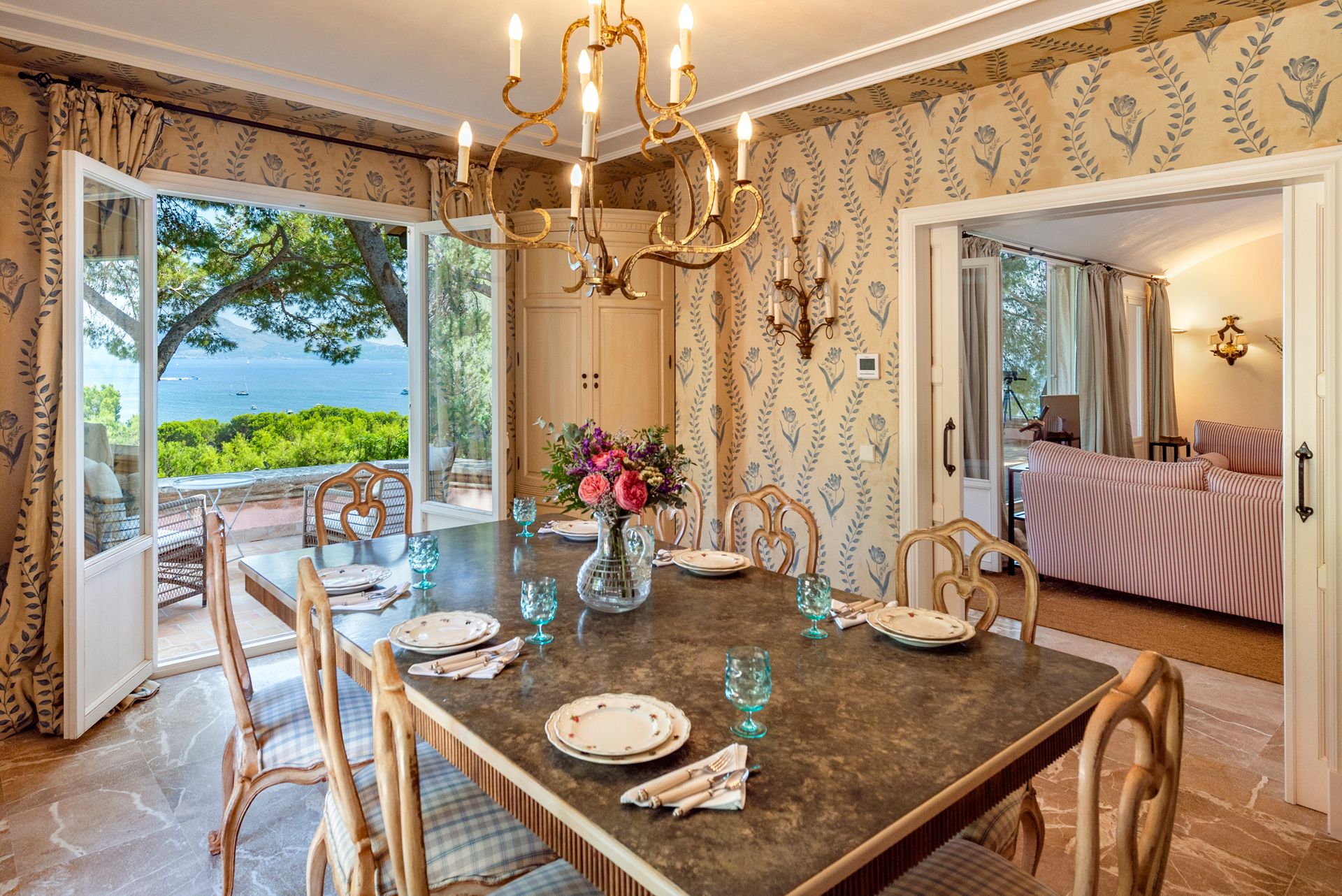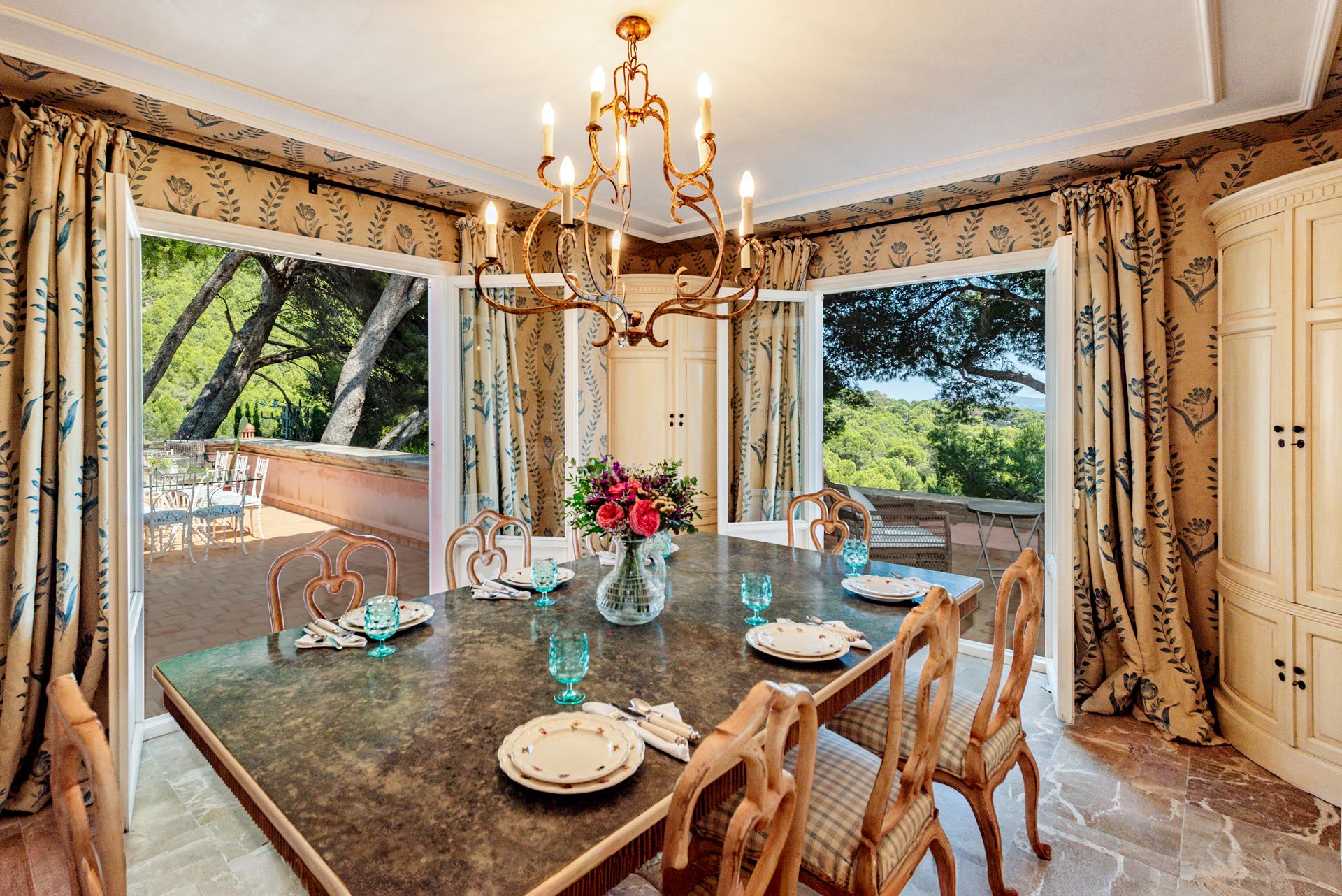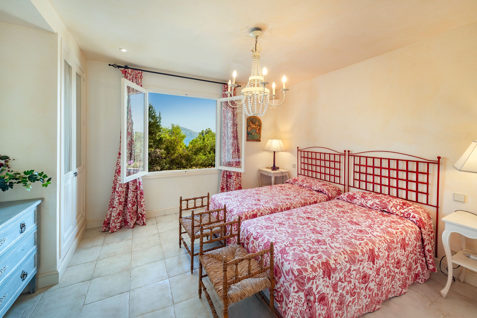 I et af de mest eftertragtede og eksklusive boligområder på øen - kun 300 meter fra havet - ligger denne enestående ejendom, som er en sand perle. Den ligger i en idyllisk fyrreskov og har en uovertruffen udsigt over bugten og havet.