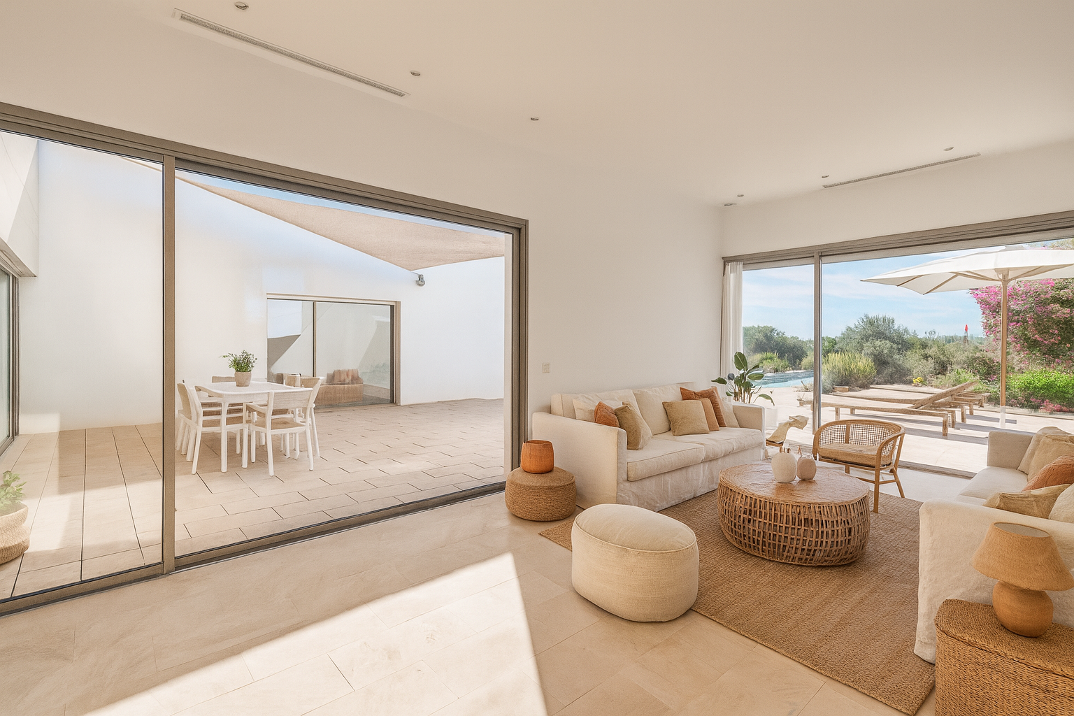 Oplev denne udsøgte, minimalistiske finca i de rolige, landlige omgivelser i María de la Salut, tæt på den maleriske landsby Santa Margalida, hvor moderne luksus møder roen og den naturlige skønhed i det mallorcinske landskab.