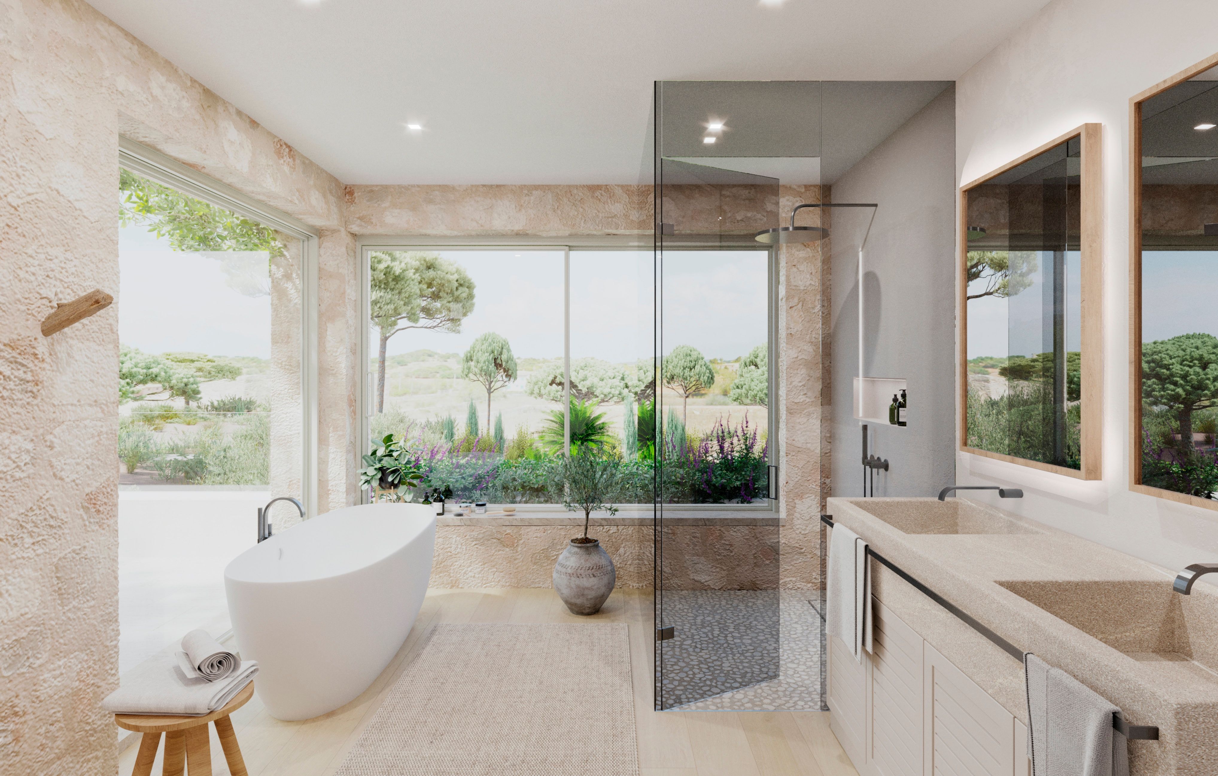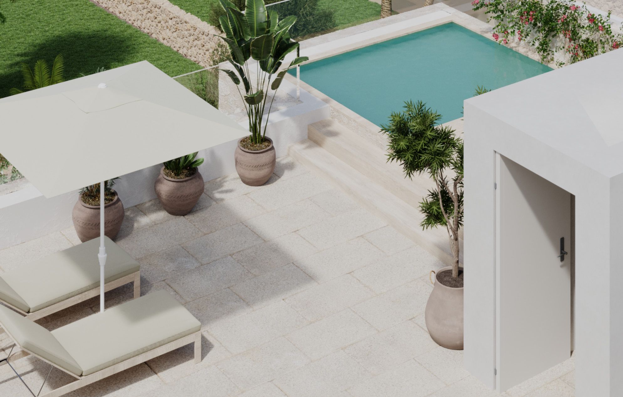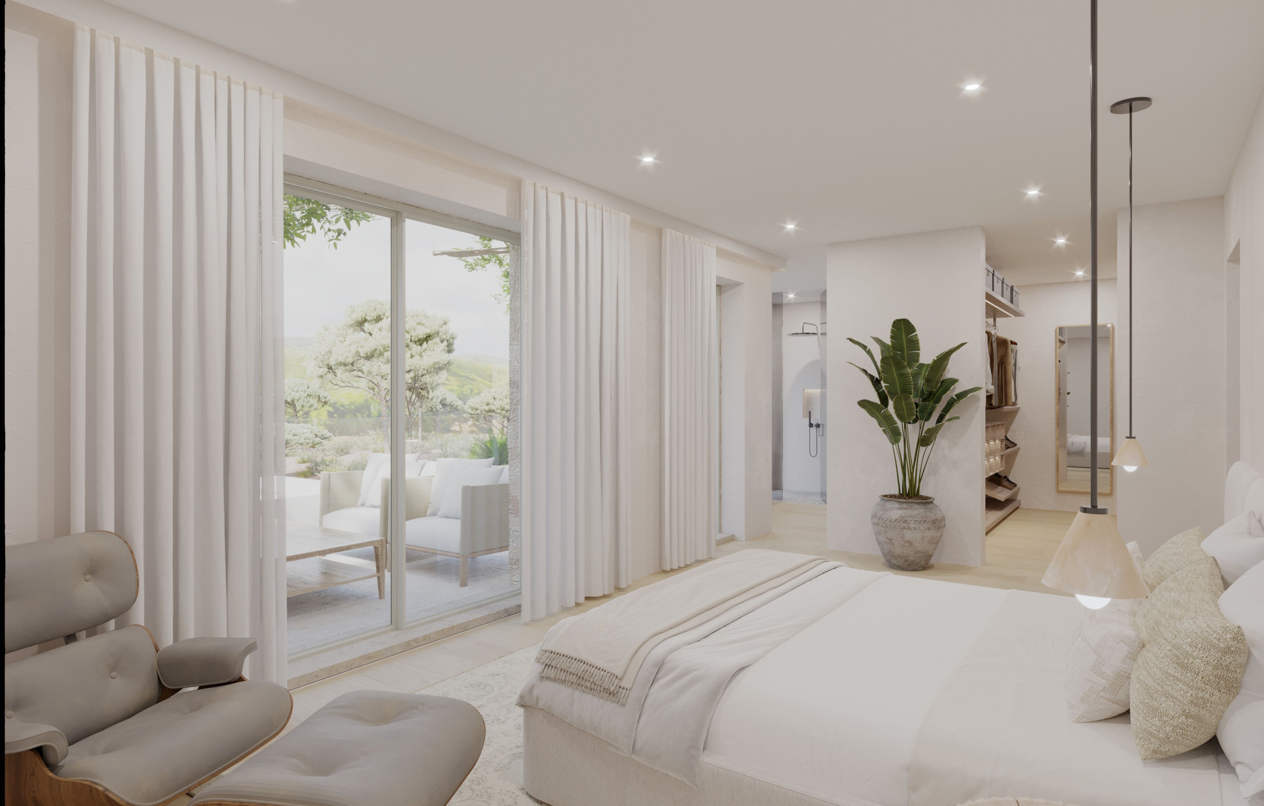 I et eftertragtet bjergområde i Alqueria Blanca opføres der i øjeblikket fire rækkehuse af høj kvalitet, som ikke kun vil imponere med deres fremragende byggekvalitet, men også med deres enestående udsigt. De forventes at stå færdige om ca. 12-15 måneder. Ejendommen strækker sig over i alt tre niveauer, som er bekvemt forbundet med en elevator. Indgangspartiet byder dig velkommen med en åben, lys stue og spiseplads med tilstødende køkken - et rumkoncept, der stilfuldt kombinerer boligkultur og selskabelighed. På øverste etage er der et master bedroom med en betagende udsigt, walk-in-garderobe og et rummeligt, fuldt udstyret badeværelse. Yderligere to soveværelser, hver med deres eget badeværelse, understreger den sofistikerede komfort. Et ægte højdepunkt er tagterrassen, som også er tilgængelig med elevator og har en privat jacuzzi. Herfra kan man nyde en fantastisk udsigt over havet og kirken Alqueria Blanca. Husets nederste niveau imponerer med et spa- og fitnessområde med sauna, privat brusebad og en yderligere, rummelig stue og spisestue med direkte adgang til den kærligt anlagte have med poolområde. Et praktisk bryggers afrunder pladsen på dette niveau. Garagen er integreret direkte i huset og har plads til et køretøj. Den charmerende landsby Alqueria Blanca med sit ugentlige marked ligger kun få minutters gang væk og byder på en autentisk mallorcinsk livsstil med små caféer, restauranter og butikker til de daglige behov. Forbindelsen til Porto Petro med sin maleriske havn og nærhed til drømmebugterne i naturparken Cala Mondragó er fremragende. Den populære by Santanyí ligger også kun få minutter væk. Denne ejendom kombinerer førsteklasses byggekvalitet, gennemtænkte rumkoncepter og en beliggenhed, der er uden sidestykke.