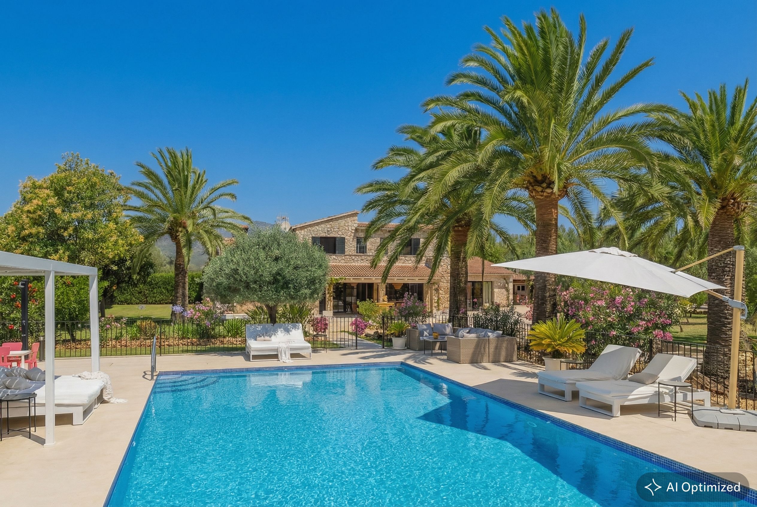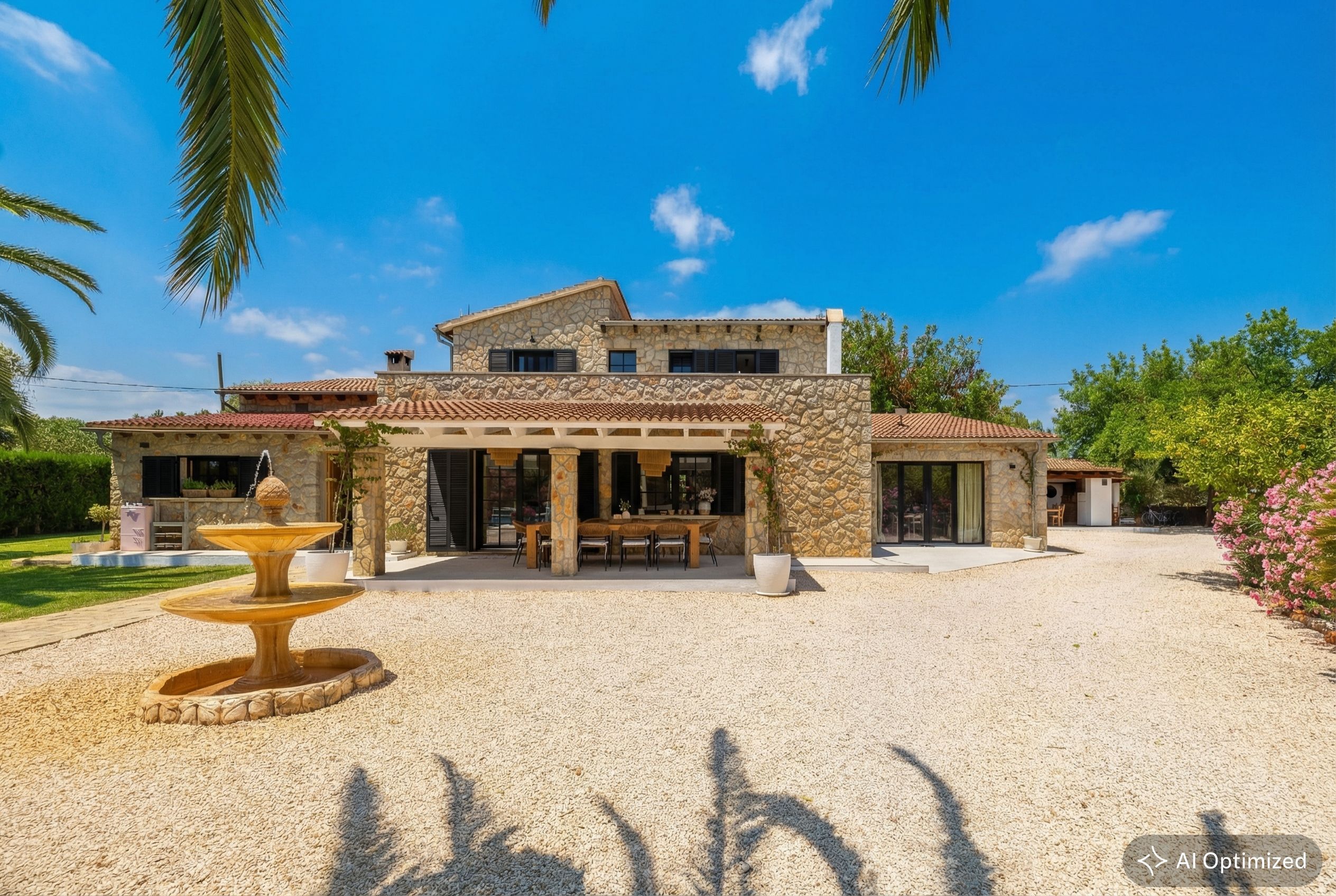 Denne enestående ejendom ligger i det fredelige landskab nær Binissalem på en generøs grund på ca. 8.000 m² med en fantastisk udsigt over Tramuntana-bjergene. Fincaen er nyrenoveret og har et boligareal på ca. 400 m², inklusive to separate gæstehuse - et alsidigt layout, der er ideelt til at bo, arbejde og tilbringe tid sammen med familie og venner.