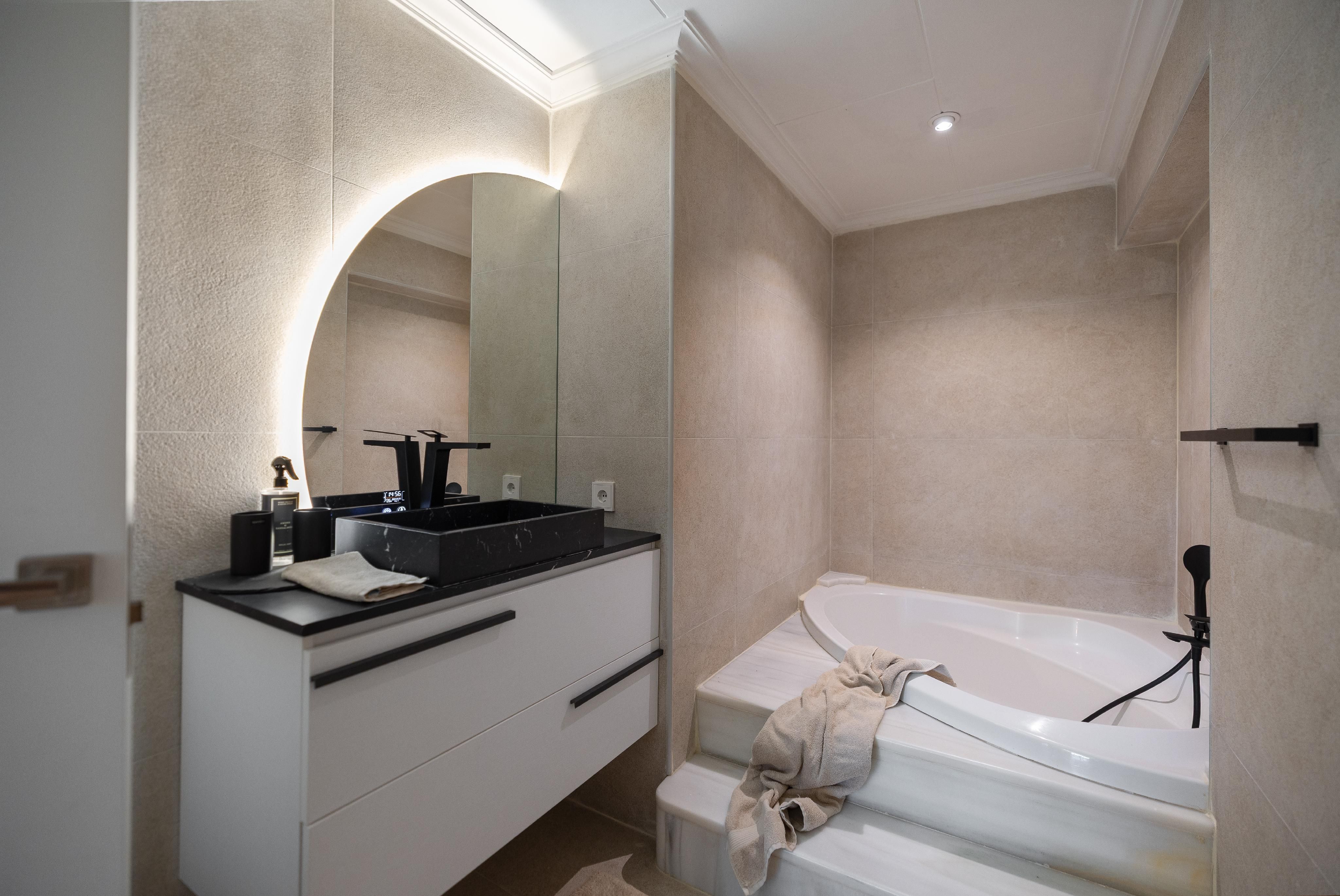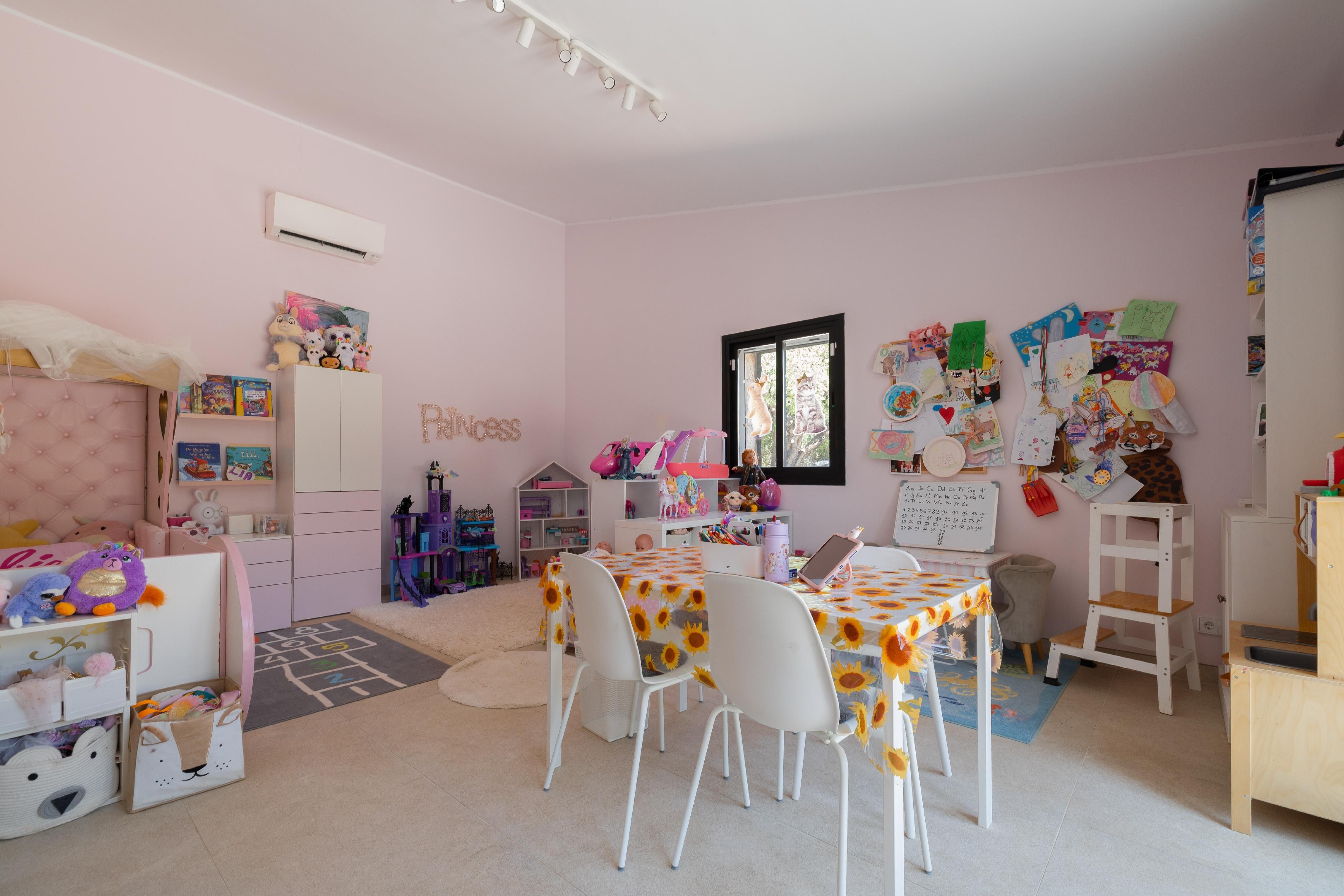 Interiøret afspejler tidløs enkelhed og naturlig elegance: åbne rum, omhyggeligt udvalgte materialer og masser af naturligt lys skaber en fredfyldt og indbydende atmosfære. Med i alt otte soveværelser og seks badeværelser er der god plads til større familier, flere generationer eller gæstfrihed med stil.