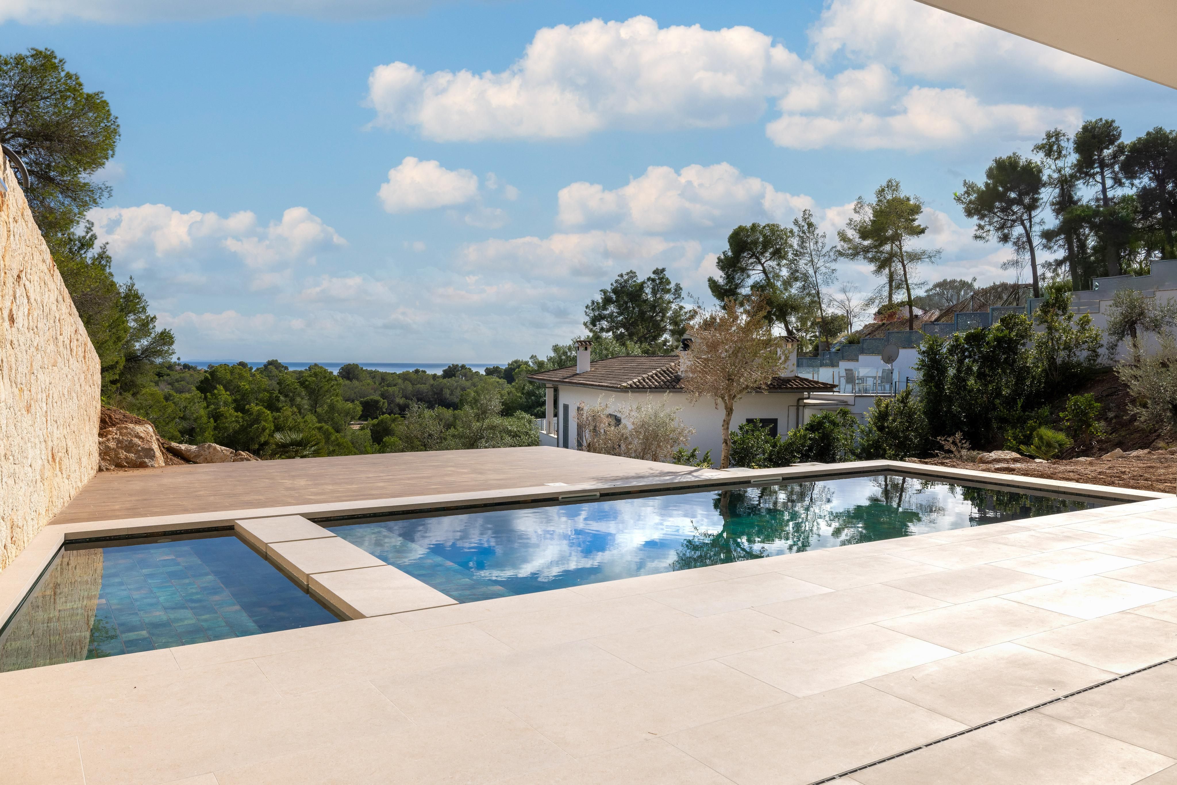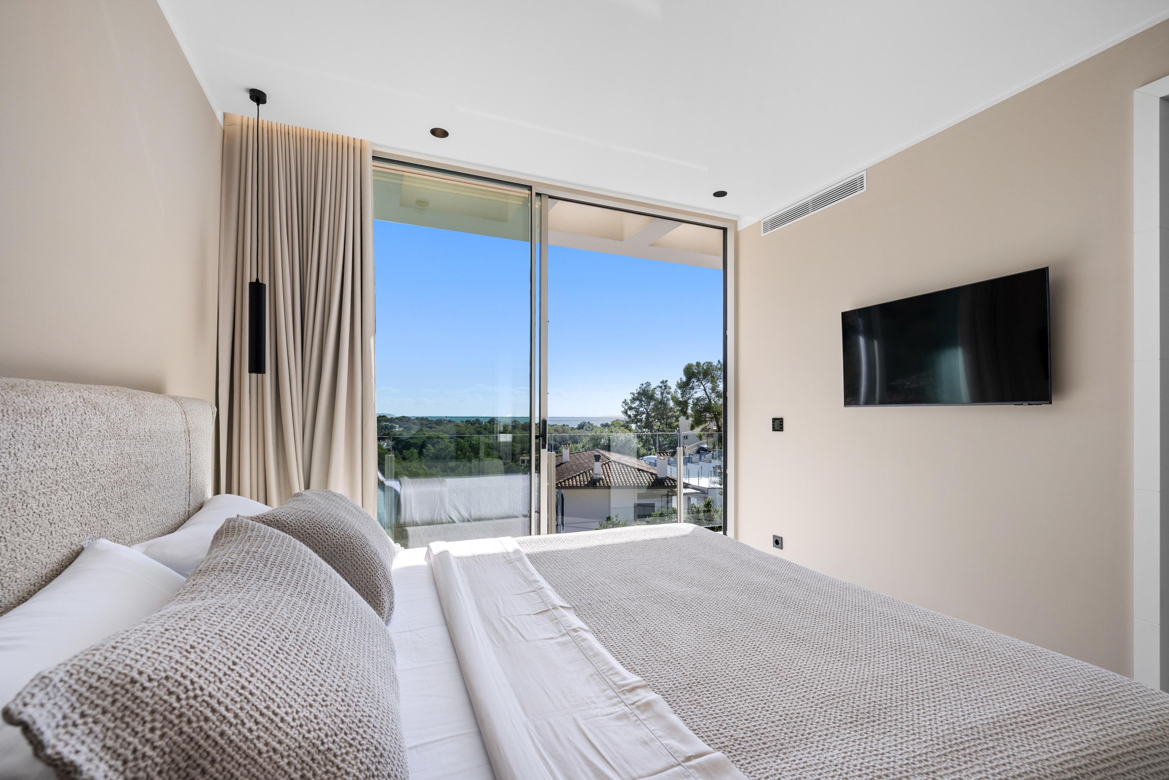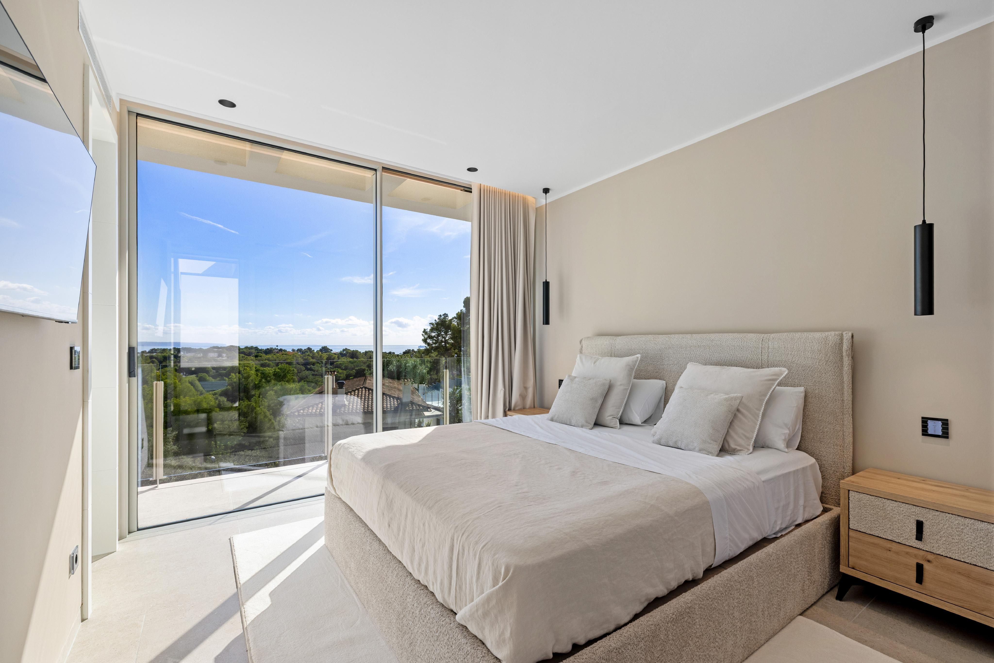 Denne luksuriøse moderne villa er klar til at flytte ind. Kun de bedste materialer er brugt, og den perfekte beliggenhed lige i Portals med gåafstand til de forskellige strande og butikker samt restauranter og den berømte Puerto Portals-havn gør den til noget helt særligt. Der er adgang til villaen i bil via bilelevatoren eller via hovedindgangen på samme niveau. På øverste etage ligger de fem soveværelser, alle med eget bad og fantastisk havudsigt, og i stueetagen, også med fantastisk havudsigt, finder man den store åbne stue/spisestue med panoramaudsigt over havet, det fuldt udstyrede åbne køkken med en ekstra kogeplads. Hele området har direkte adgang til terrassen, hvor du kan nyde en vidunderlig tid med den store pool og chill out-området, grillen og den udendørs spiseplads. På samme niveau er der også et andet soveværelse med eget bad samt et gæstetoilet. Denne vidunderlige villa har gulvvarme, aircondition varmt/koldt, parkeringsplads udenfor i garagen til i alt 6 biler samt i den store kælder et fitnesscenter, spa-område, medie- og spillerum samt et yderligere soveværelse en suite.