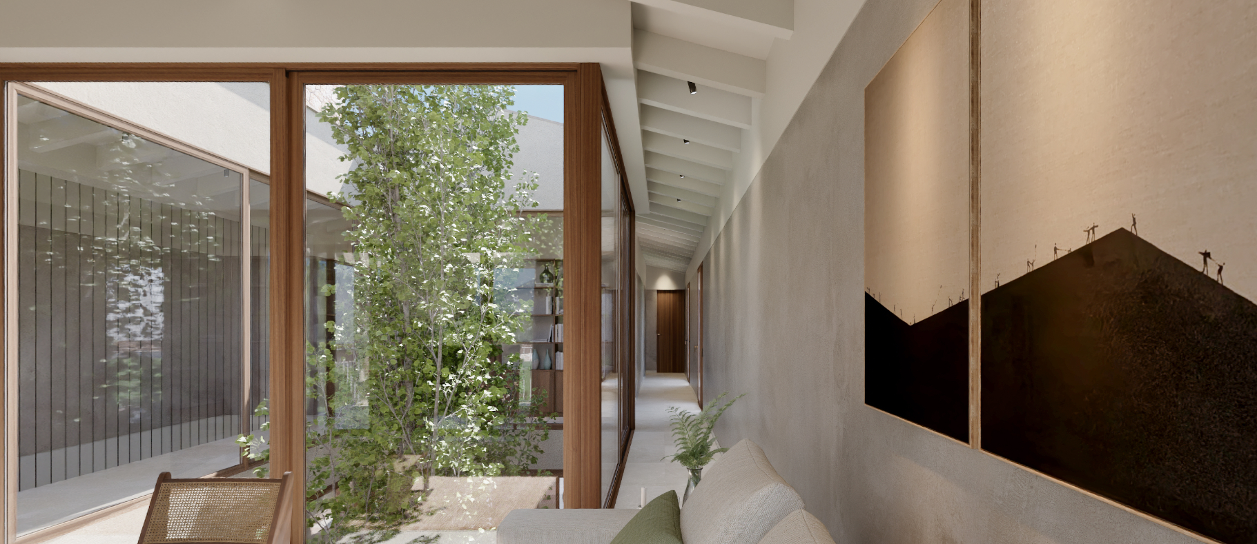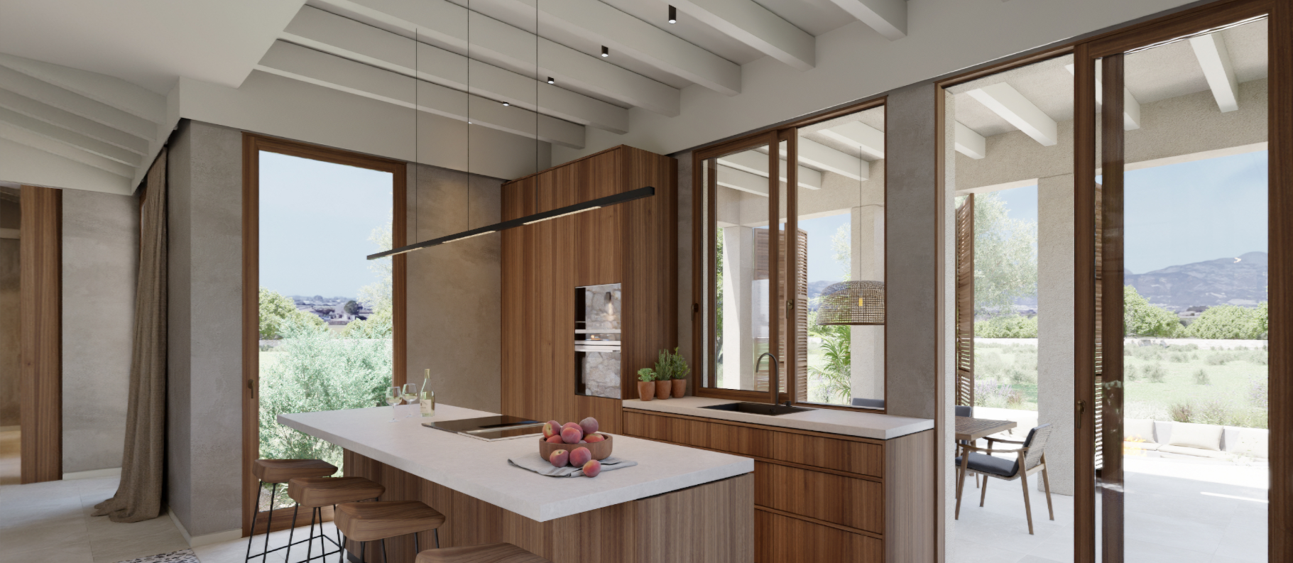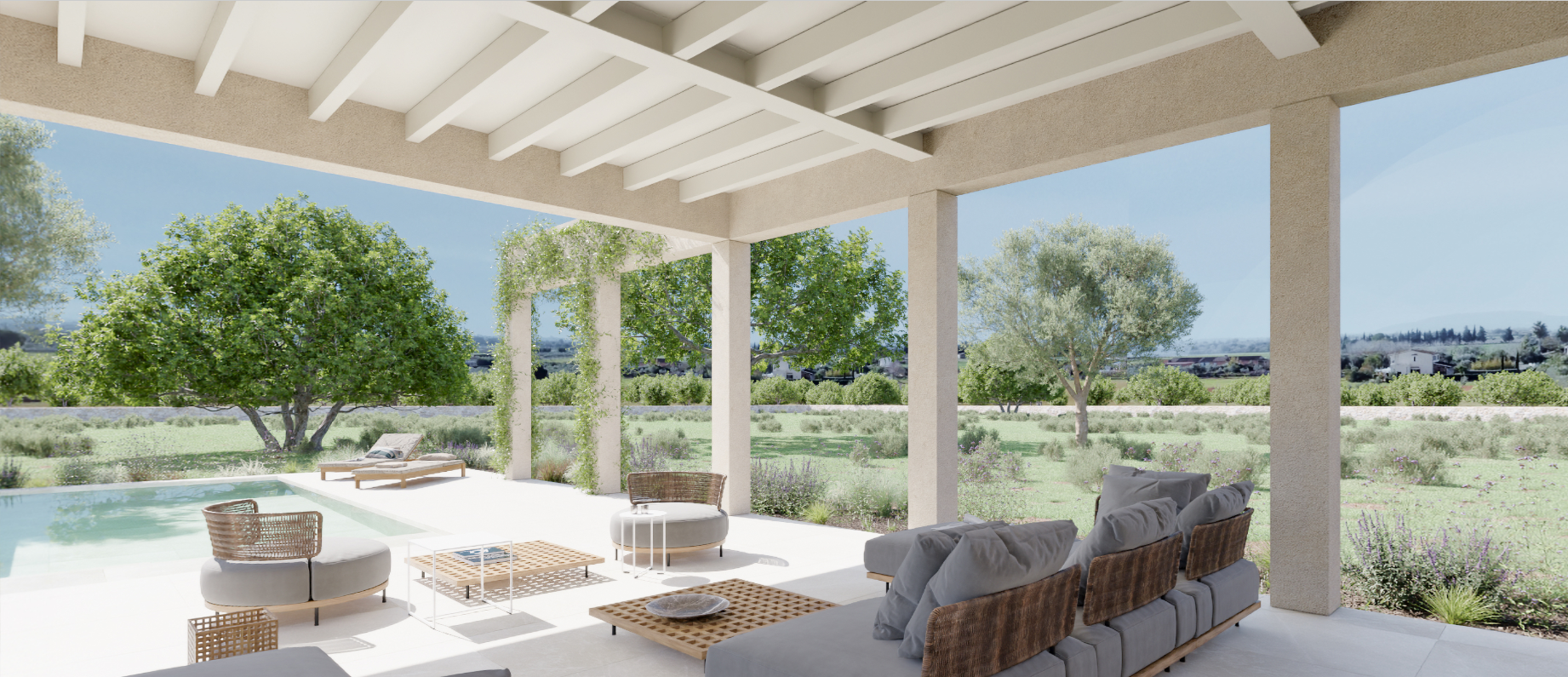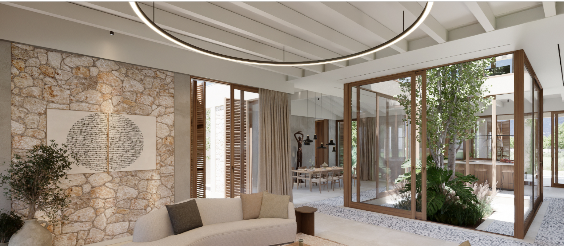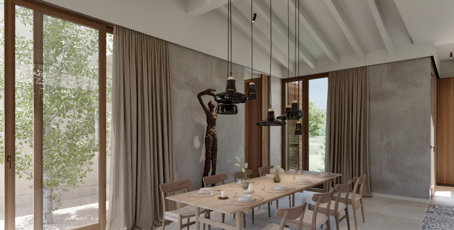 Det foreslåede arkitektoniske koncept skaber en delikat balance mellem tradition og modernitet. Huset er udformet med natursten og tidløse designelementer og er tænkt til at smelte harmonisk sammen med landskabet, samtidig med at der er moderne linjer, åben planløsning og raffinerede materialer overalt.