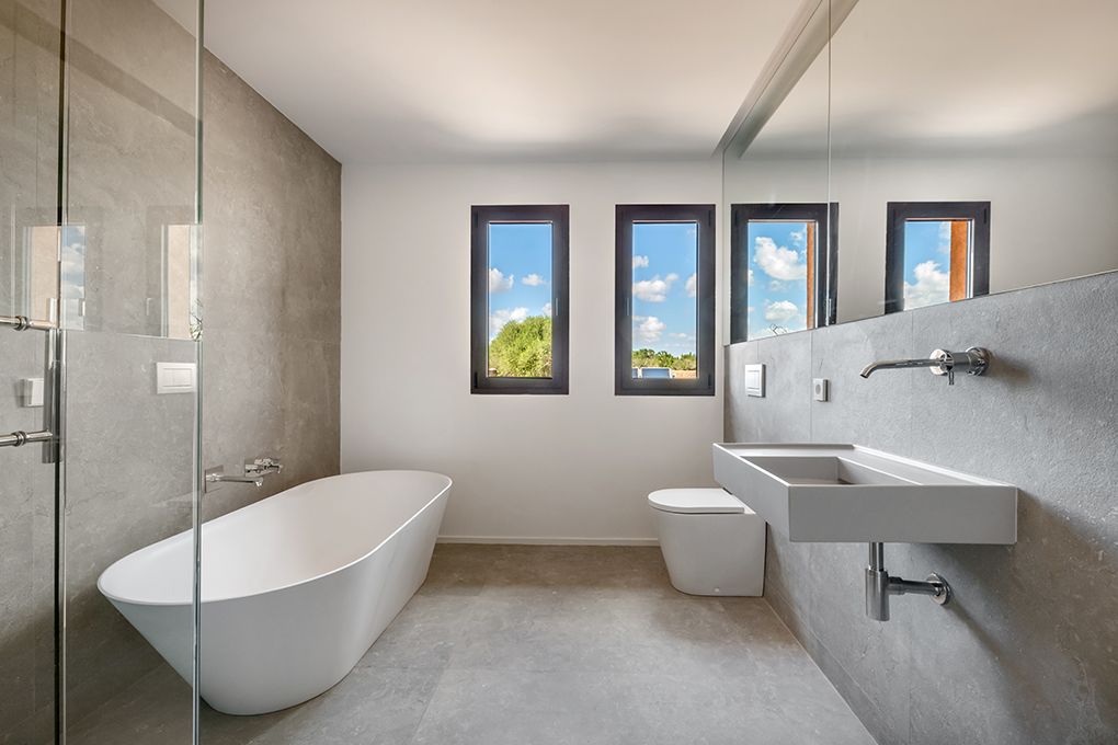 Du finder denne ejendom på en grund på ca. 19.500 m² i det umiddelbare område af Santanyí. Fincaen i stueetagen er opdelt i to fløje. I den ene fløj er der fire soveværelser, alle med badeværelse en suite og adgang til terrasse. To af soveværelserne har et ekstra påklædningsområde. I den anden fløj er der et stort åbent opholdsrum med adgang til en overdækket terrasse, en rummelig spisestue med veranda, et smukt køkken med opbevaringsrum og et gæstetoilet. Fincaens kerne er den store gårdhave i midten af huset, som er glaseret. Gulv-til-loft-vinduerne i næsten alle rum lukker meget lys ind og får huset til at fremstå åbent og lyst. Gulvvarme og aircondition i soveværelserne og køkkenet giver et behageligt klima året rundt. Haven er anlagt i middelhavsstil. Her finder du en pool, et grillområde og rummelige, delvist overdækkede terrasser, som indbyder til ophold og nydelse. En garage med plads til to biler fuldender denne ejendom. Den charmerende landsby Santanyí med sit ugentlige marked, mange restauranter og butikker kan nås på ca. fem minutter i bil.