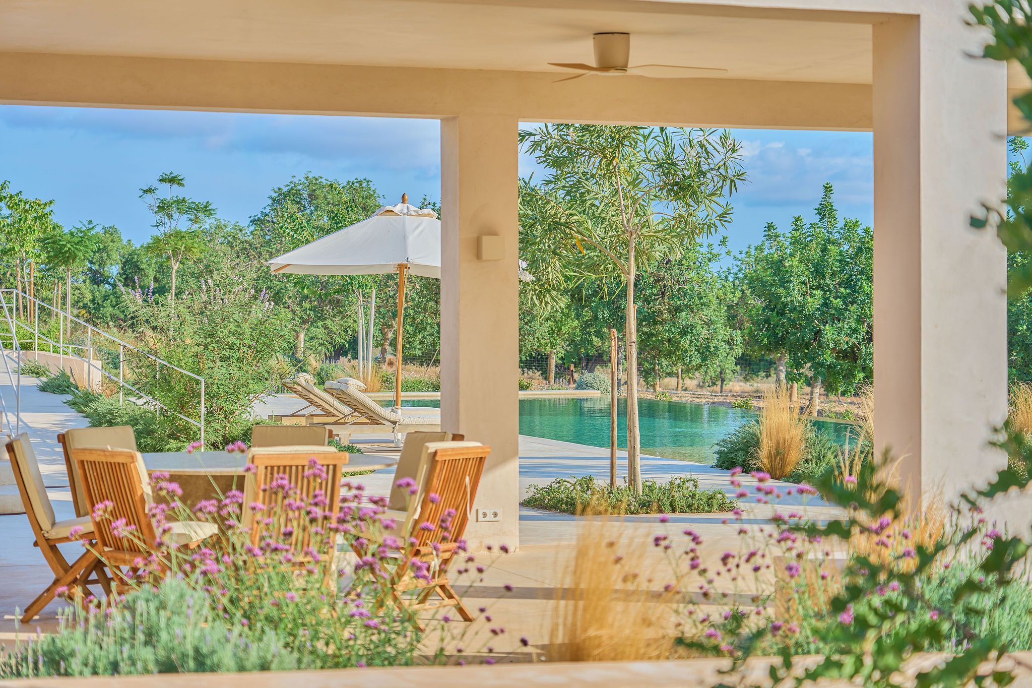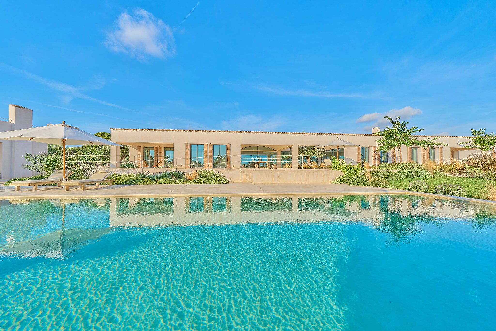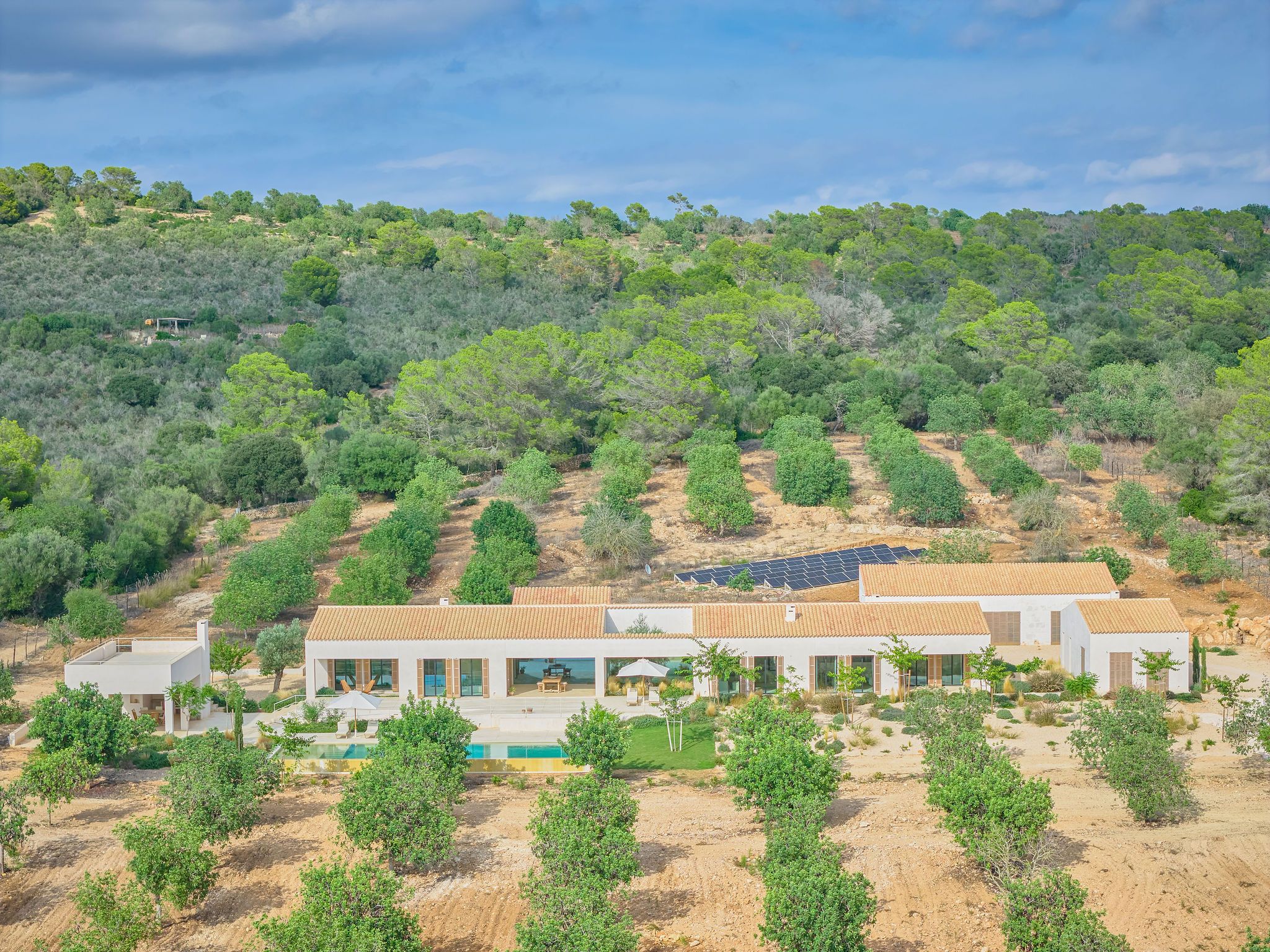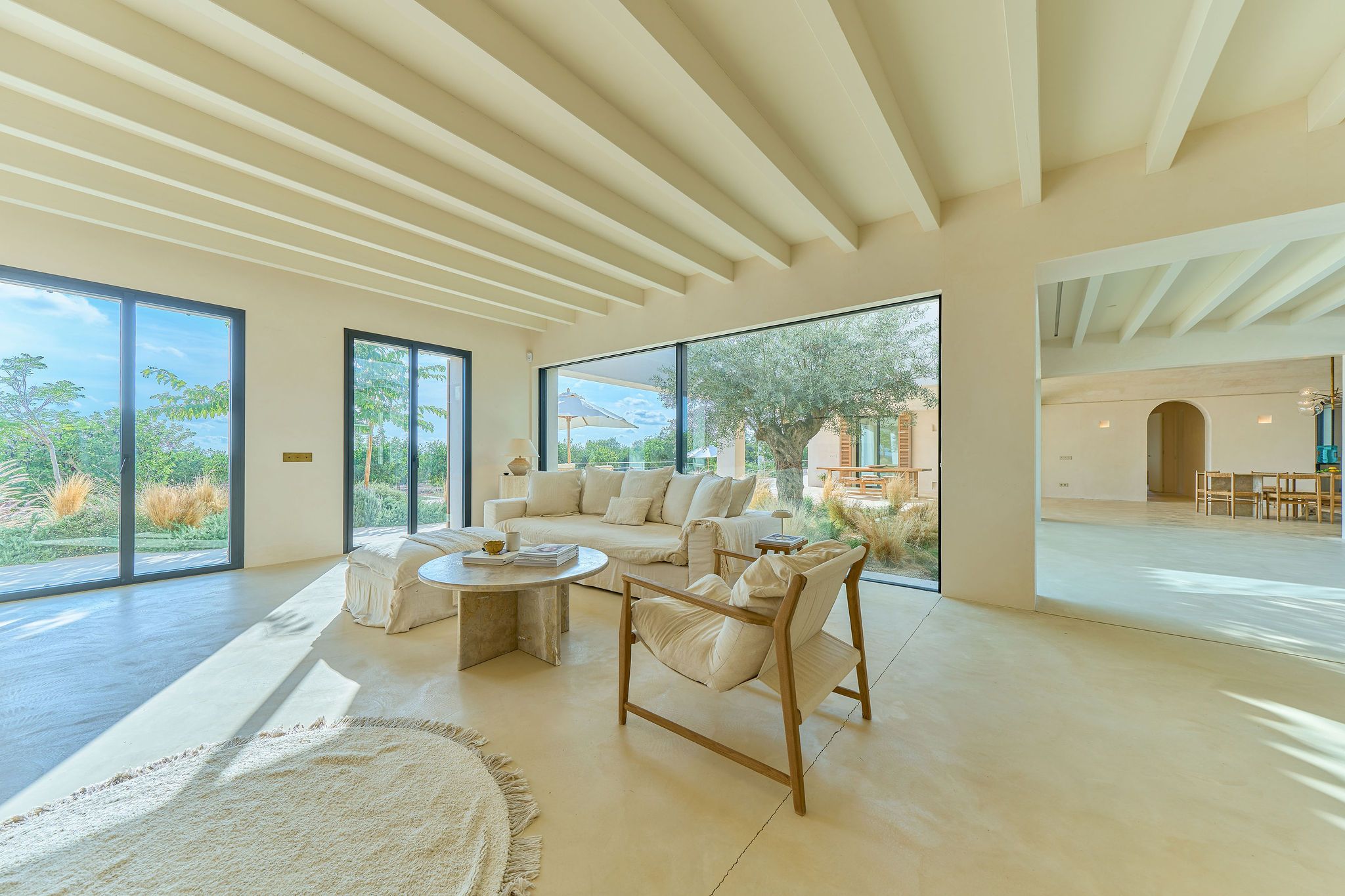 Denne moderne nybyggede finca ligger i det idylliske landskab nær Campos og kombinerer middelhavselementer med moderne arkitektur. Her kan du nyde fuldstændig privatliv og alligevel være i centrum af Campos eller på sydkystens strande på bare få minutter. Det åbne opholdsrum forbinder sømløst køkken, spisestue og stue, mens store vinduer gennemstrømmer rummene med lys og åbner op for udsigten til de naturlige omgivelser. Fincaens midtpunkt er det elegant designede køkken med integreret bar og direkte adgang til spisepladsen. Der er i alt fire soveværelser, alle med en-suite badeværelser. To af dem er særligt rummelige, mens et andet værelse støder direkte op til det store soveværelse og er ideelt til brug som kontor. Udendørsområdet har en overdækket terrasse, der strækker sig rundt om poolen, forskellige sol- og skyggeområder og et charmerende poolhus med grillområde og tagterrasse - ideelt til at nyde udsigten over landskabet. Haven er nem at vedligeholde og er oversået med typiske mallorcinske mandeltræer. Et separat gæstehus med eget soveværelse udvider boligarealet og giver besøgende et privat område. Den store garage har plads til op til fire køretøjer og har et tilstødende rum til fleksibel brug, f.eks. som opbevaring eller hobbyrum. Der blev lagt særlig vægt på kvalitet og bæredygtighed under byggeriet. Naturstensgulve, individuelle træelementer og et tidløst design kendetegner det samlede udseende. Bygningsteknologien er topmoderne: gulvvarme, central aircondition, et smart home-system, solpaneler og en forbindelse til det offentlige elnet garanterer maksimal boligkomfort. En enestående ejendom for alle, der ønsker at kombinere livet på landet med moderne komfort, stil og privatliv.